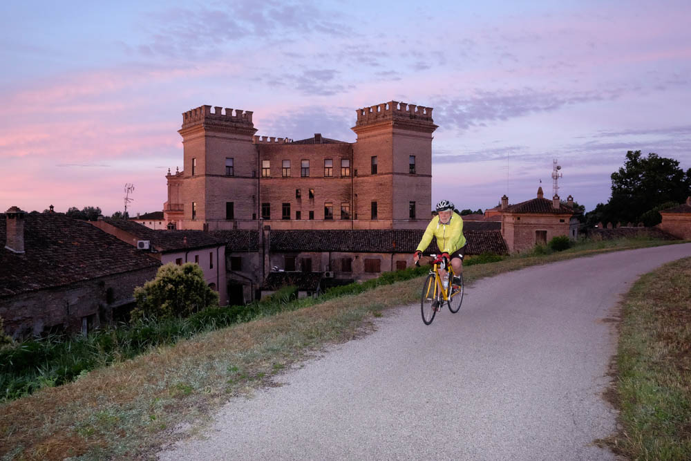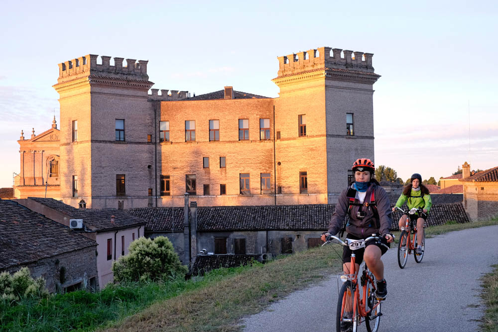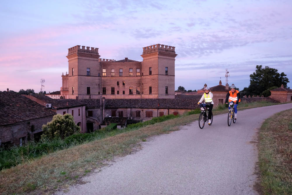 ciclabile sull’argine del Po, Ro Ferrarese (1° ristoro), Serravalle (2° ristoro), Castello di Mesola