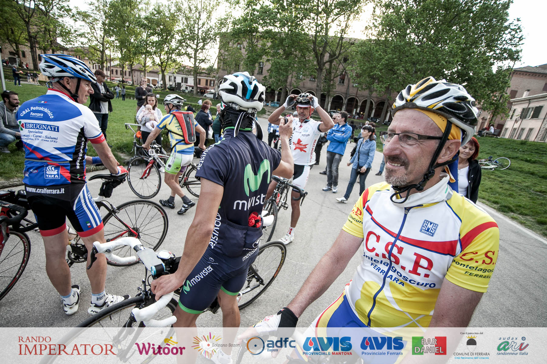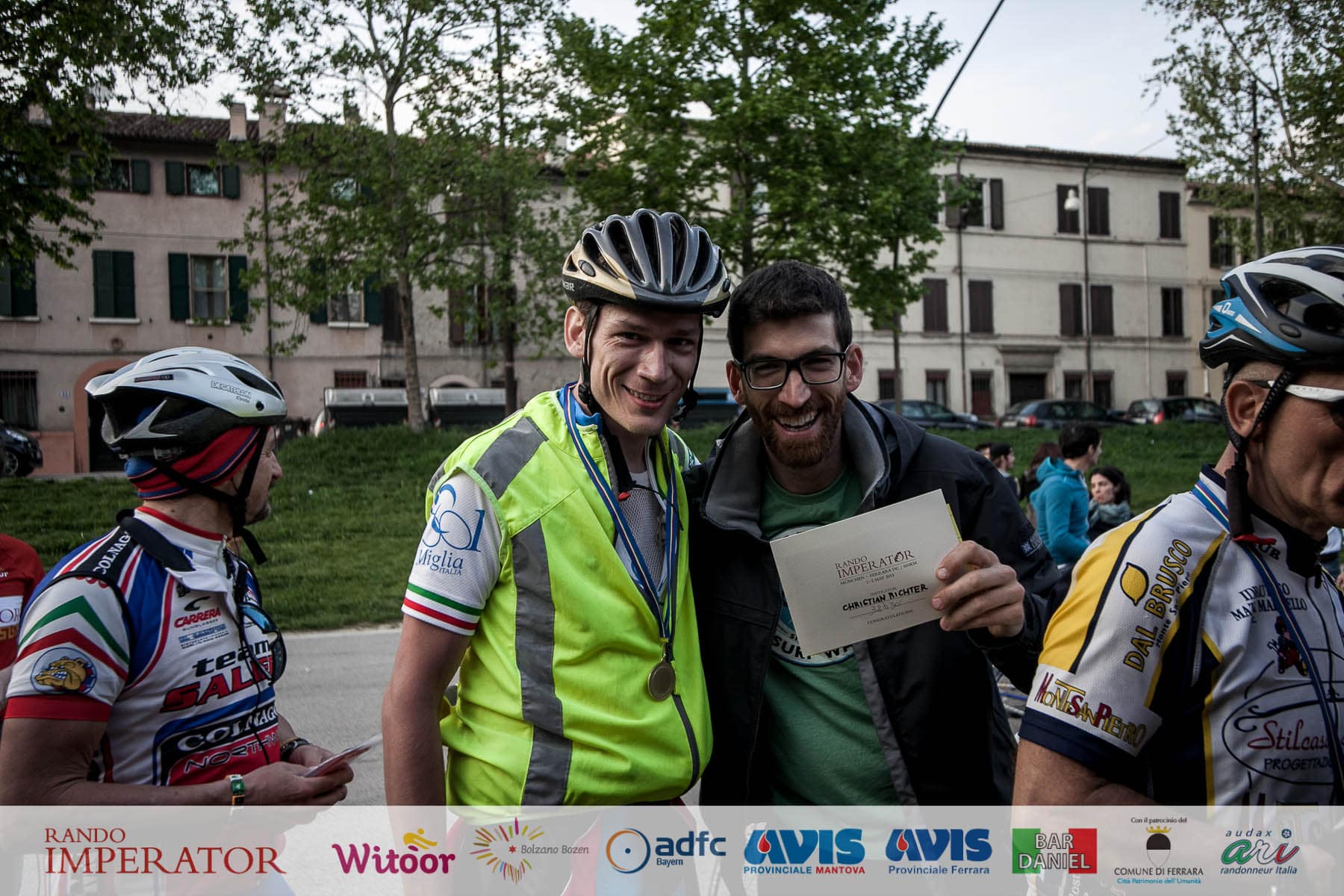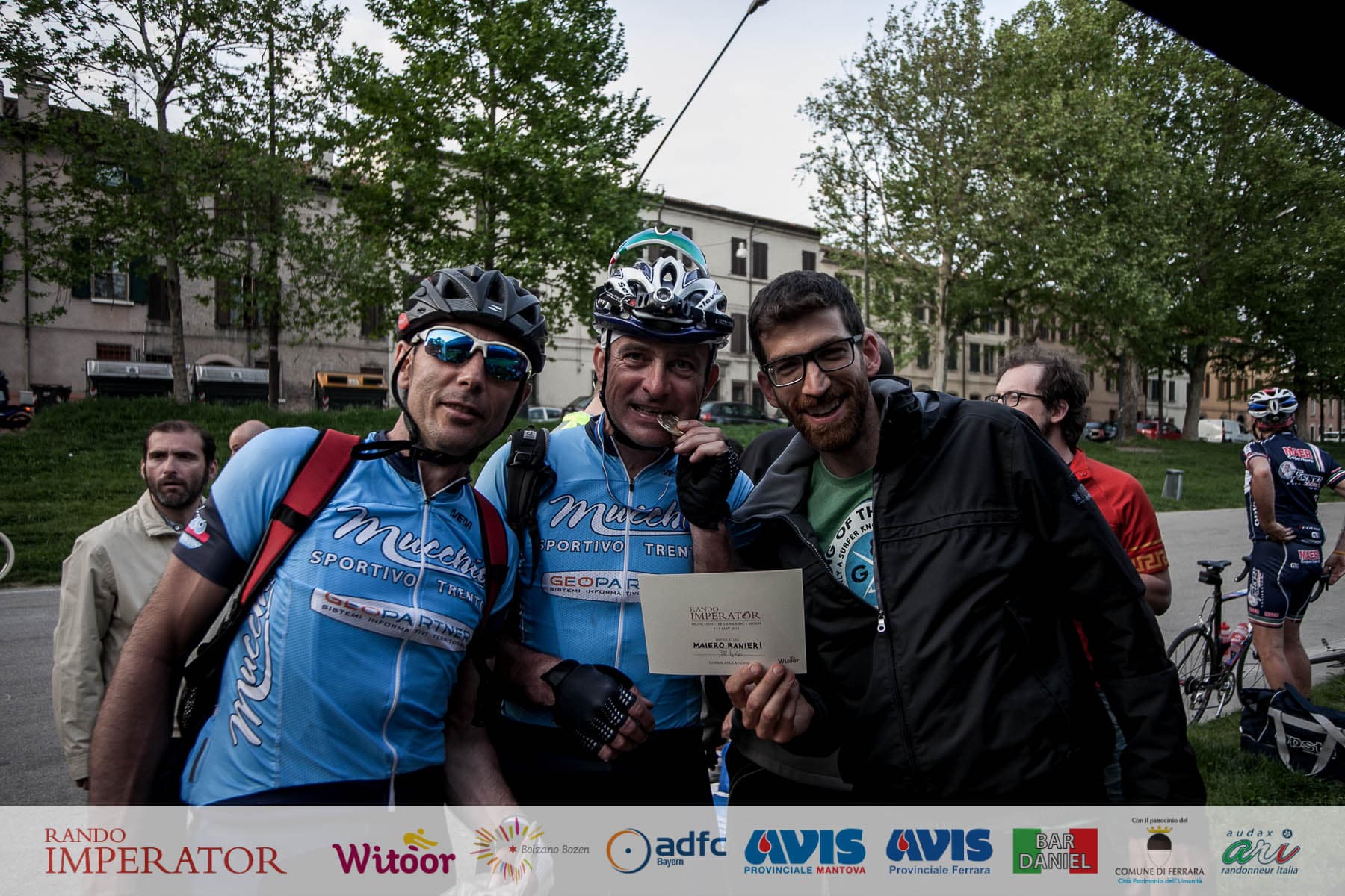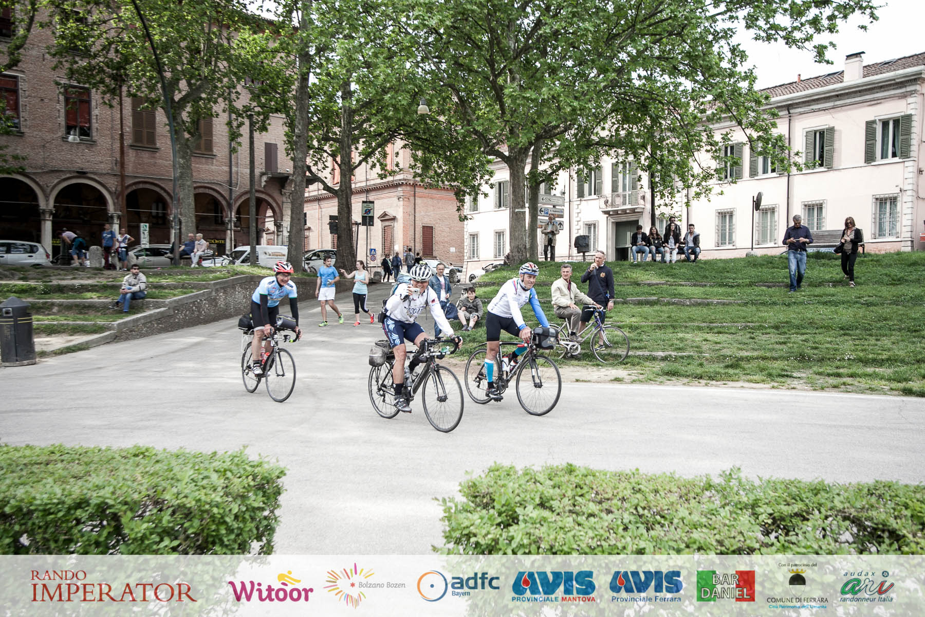 They started in the rain and cycled for hours , soaking wet, on mud. From Munich to Bolzano and further on to Ferrara. Rando Imperator crossed the Alps , four different countries ( Germany, Austria, Switzerland and Italy ) , taking over 100 cyclists along the route of Via Claudio Augusta and making them feel a bit like “emperors”. They started at dawn on May 1 and arrived in Ferrara the day after at Piazza Ariostea.