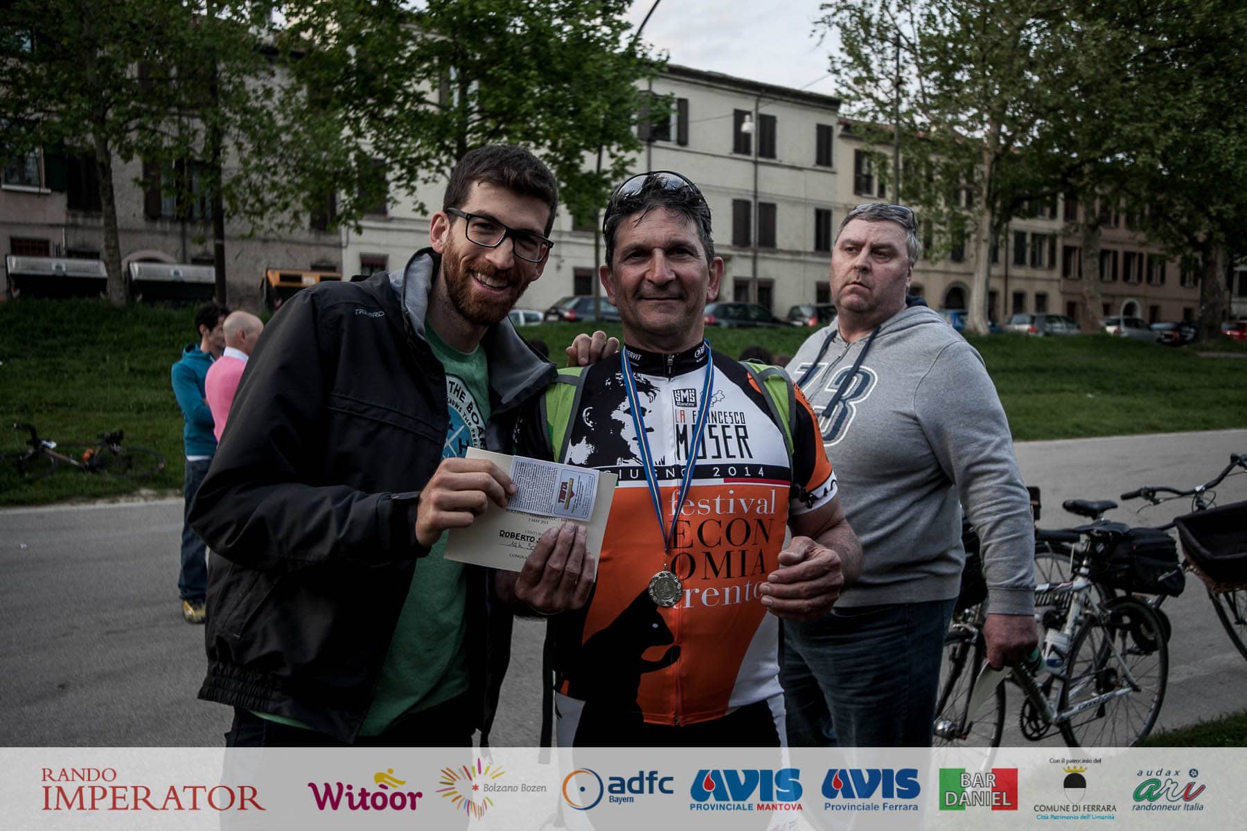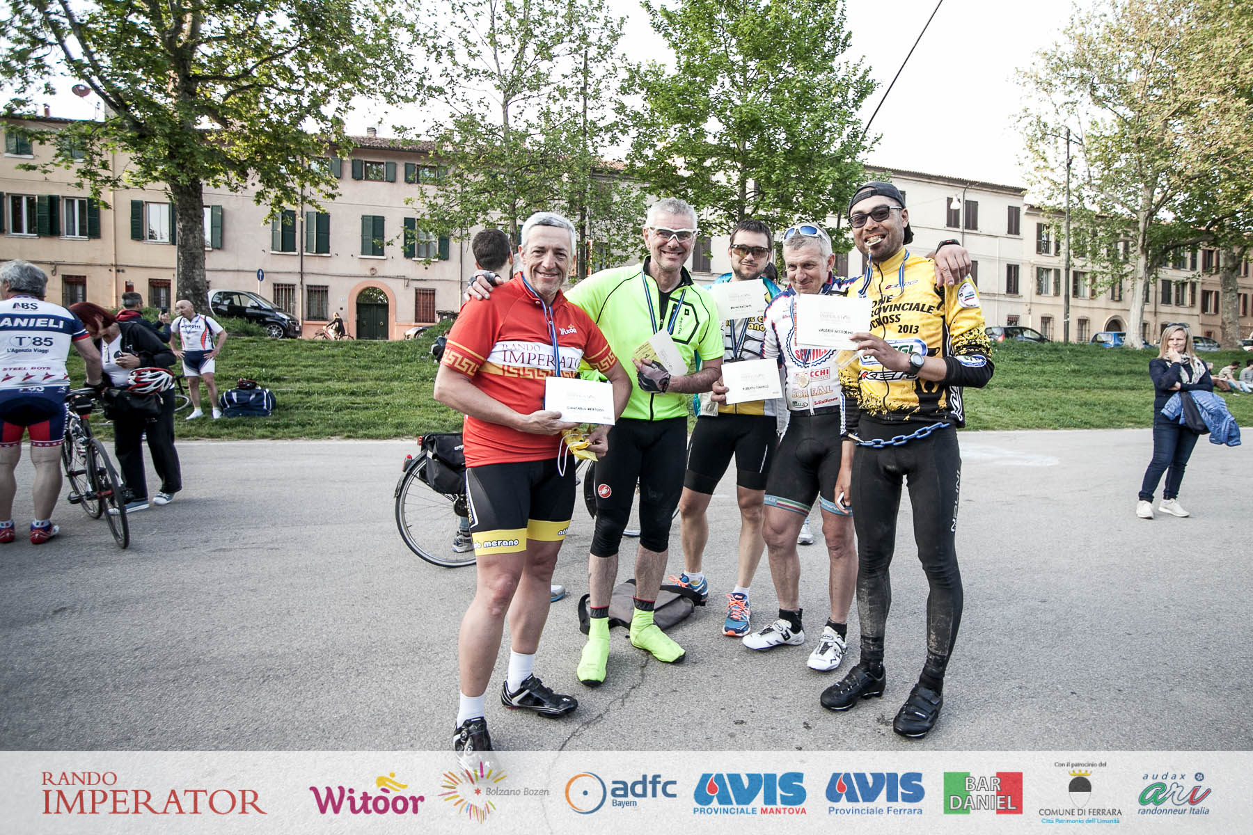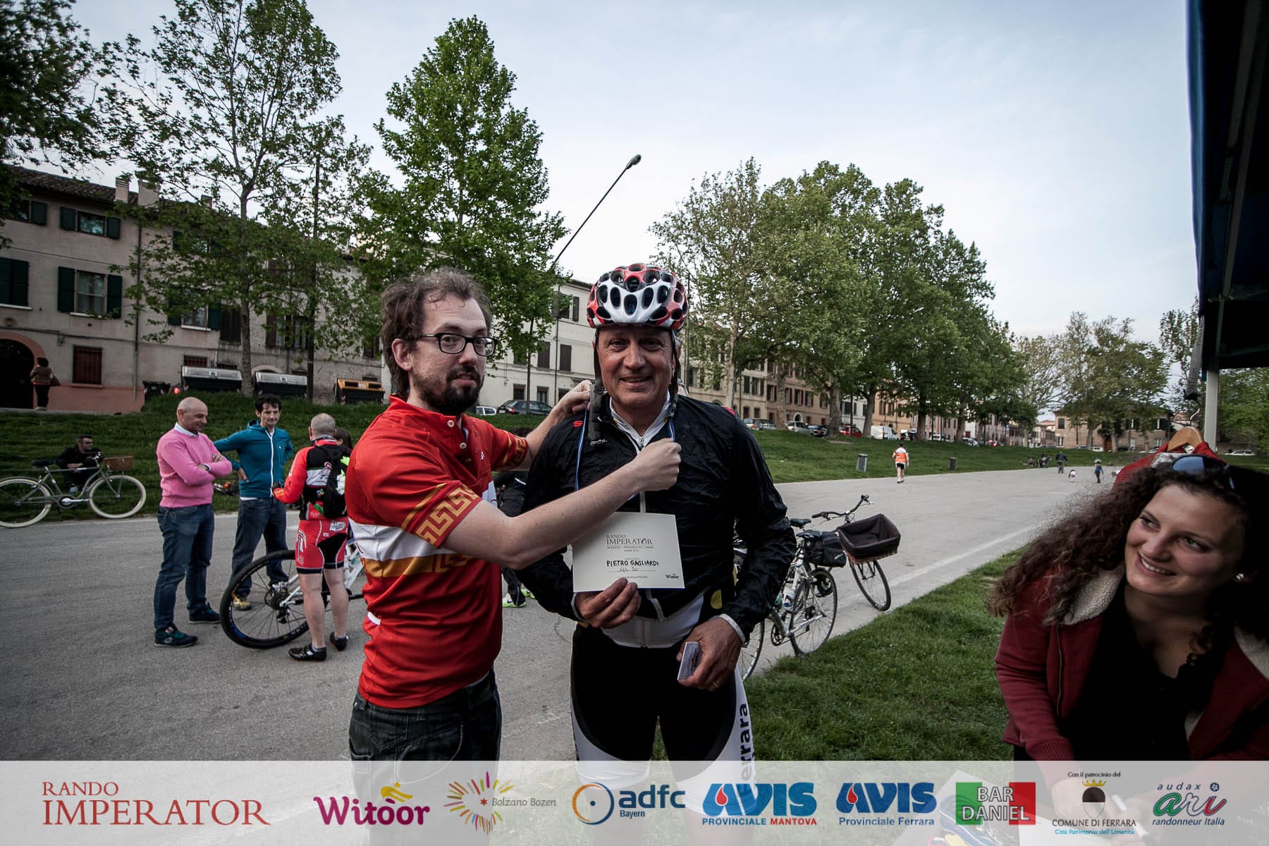 They started in the rain and cycled for hours , soaking wet, on mud. From Munich to Bolzano and further on to Ferrara. Rando Imperator crossed the Alps , four different countries ( Germany, Austria, Switzerland and Italy ) , taking over 100 cyclists along the route of Via Claudio Augusta and making them feel a bit like “emperors”. They started at dawn on May 1 and arrived in Ferrara the day after at Piazza Ariostea.