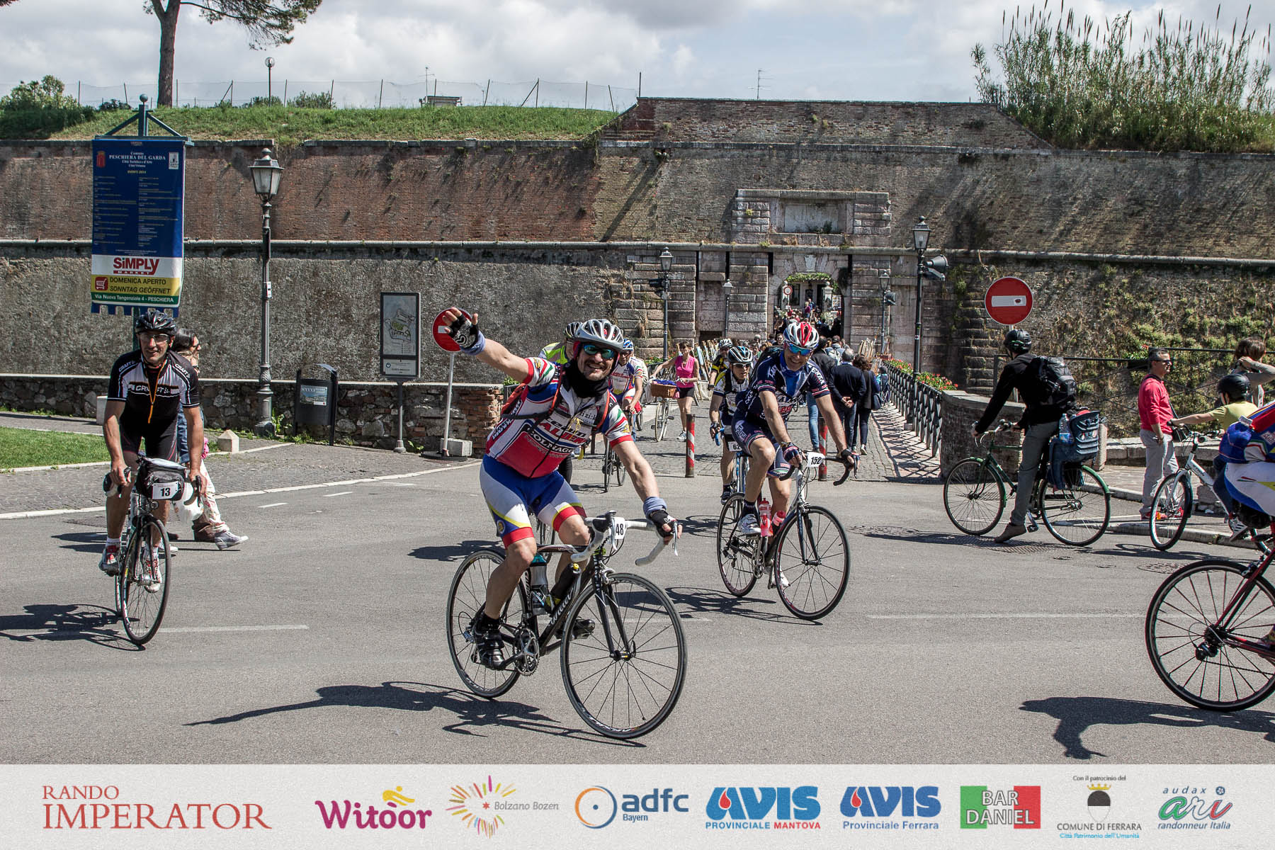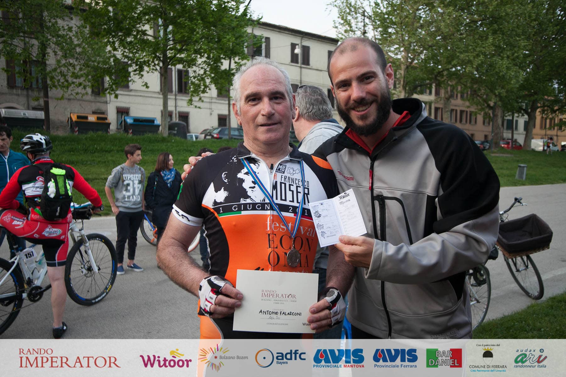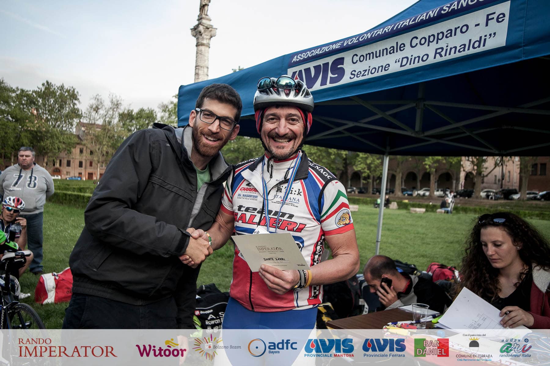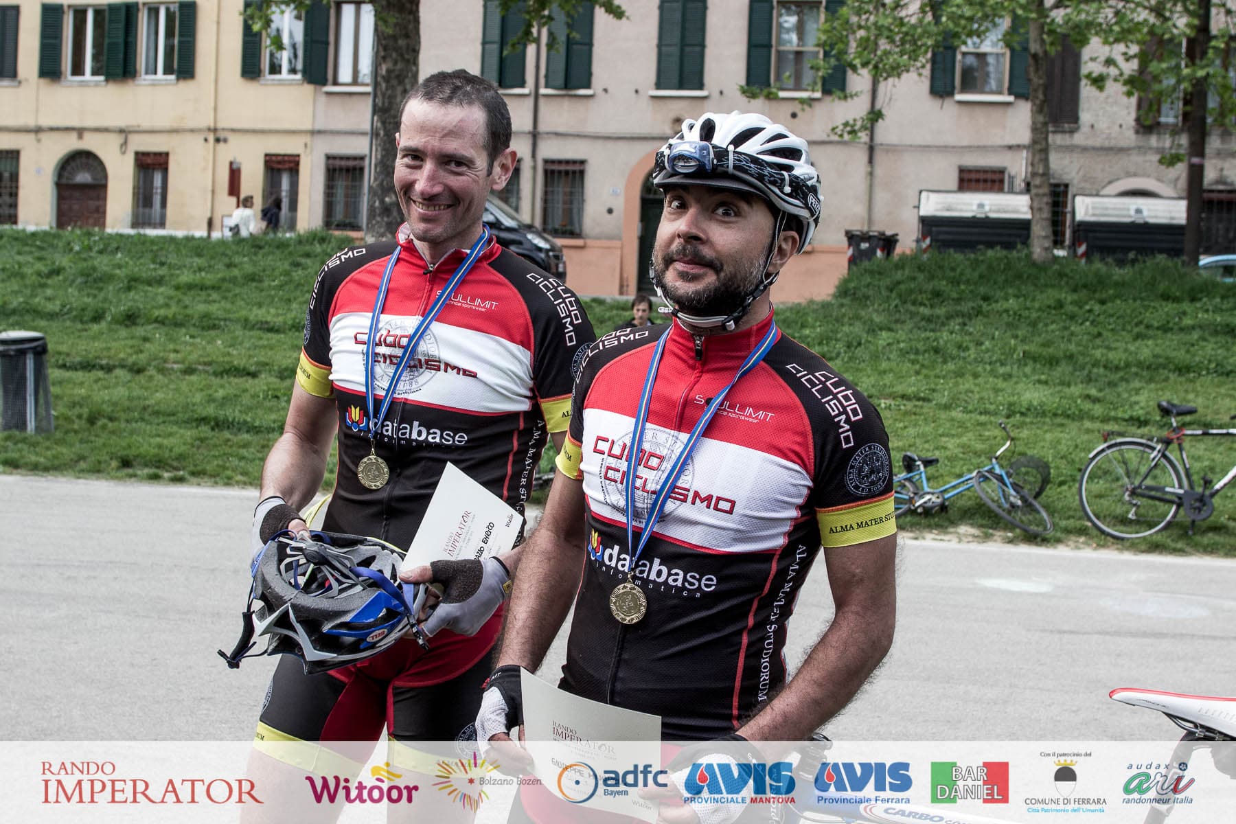 They started in the rain and cycled for hours , soaking wet, on mud. From Munich to Bolzano and further on to Ferrara. Rando Imperator crossed the Alps , four different countries ( Germany, Austria, Switzerland and Italy ) , taking over 100 cyclists along the route of Via Claudio Augusta and making them feel a bit like “emperors”. They started at dawn on May 1 and arrived in Ferrara the day after at Piazza Ariostea.