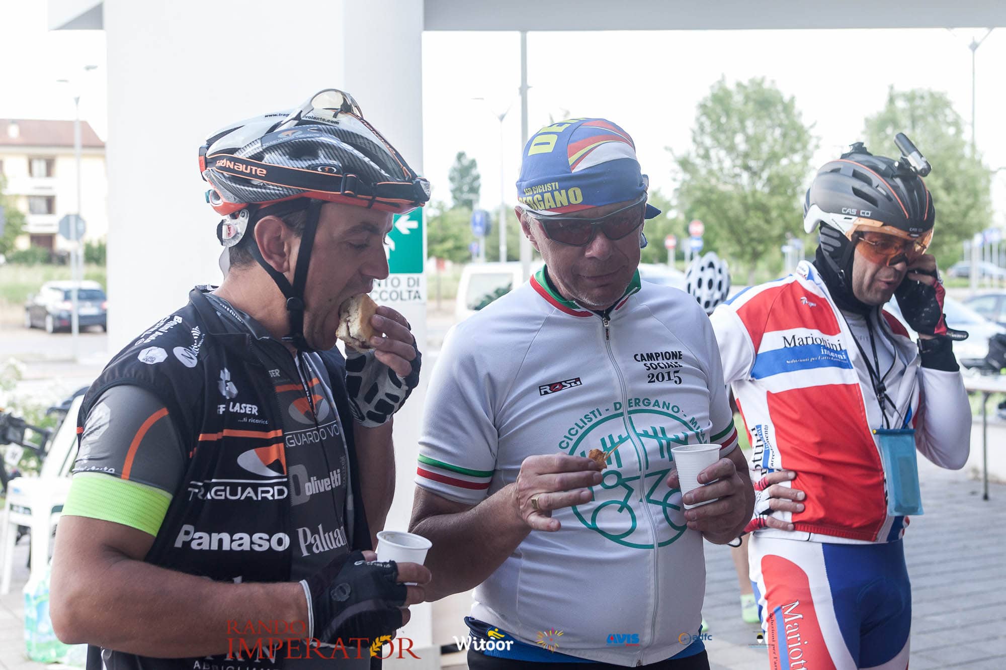 Ci siamo aiutati a infilarci i guanti gonfi di pioggia che proprio non ne volevano sapere di far passare le mani. Ce le siamo strette le mani, all’arrivo a Ferrara in piazza Castello, dopo un’infinità di strada percorsa. Ci siamo guardati negli occhi e ci siamo messi a ridere quando ci si incrociava in salita. Ci siamo abbracciati con chi ci ha aspettato per ore. Ci siamo detti “mai più”, “ci vediamo il prossimo anno”, “se bevo ancora un po’ di vino non riparto mica”. La bici è quella cosa che riesce a unire le persone, la Rando Imperator è quella randonnée che tiene stretti paesi e persone diverse, che ce la fanno o che non ce la fanno, questo poi è relativo. Conta dire grazie a tutti i partecipanti per l’impegno, la pazienza, per il modo che hanno di affrontare difficoltà e per insegnarci il vero spirito di randonneur.