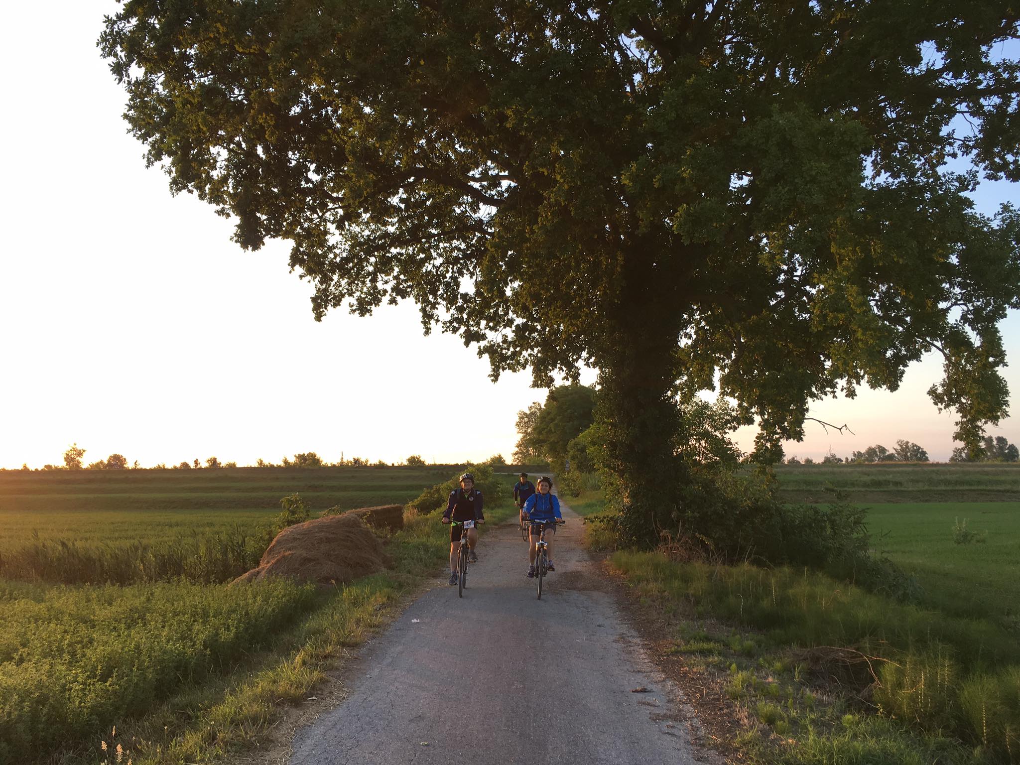 Terzo ristoro della Bike Night Ferrara-Mare, Santa Giustina. C’è il sole, finalmente.