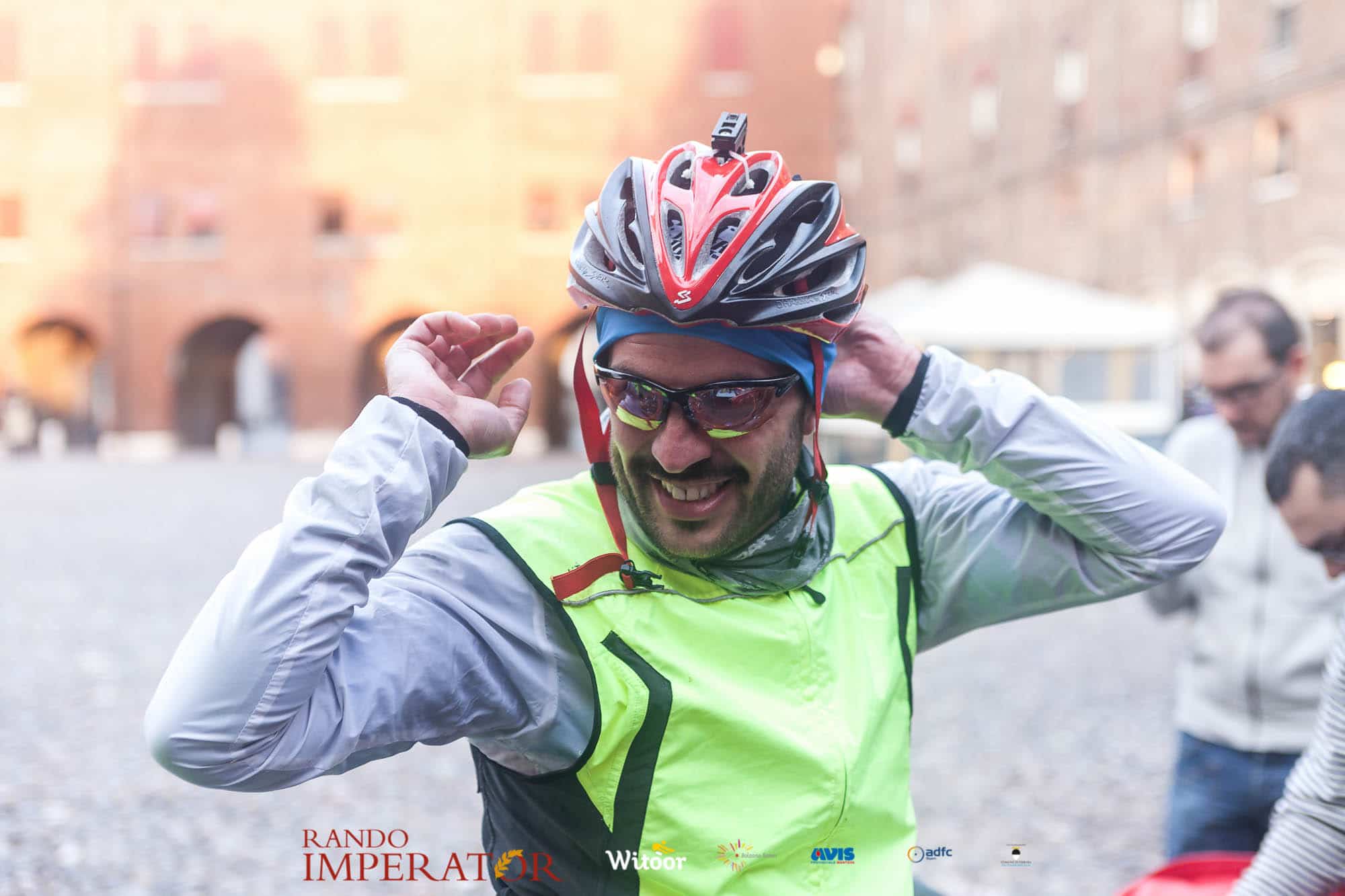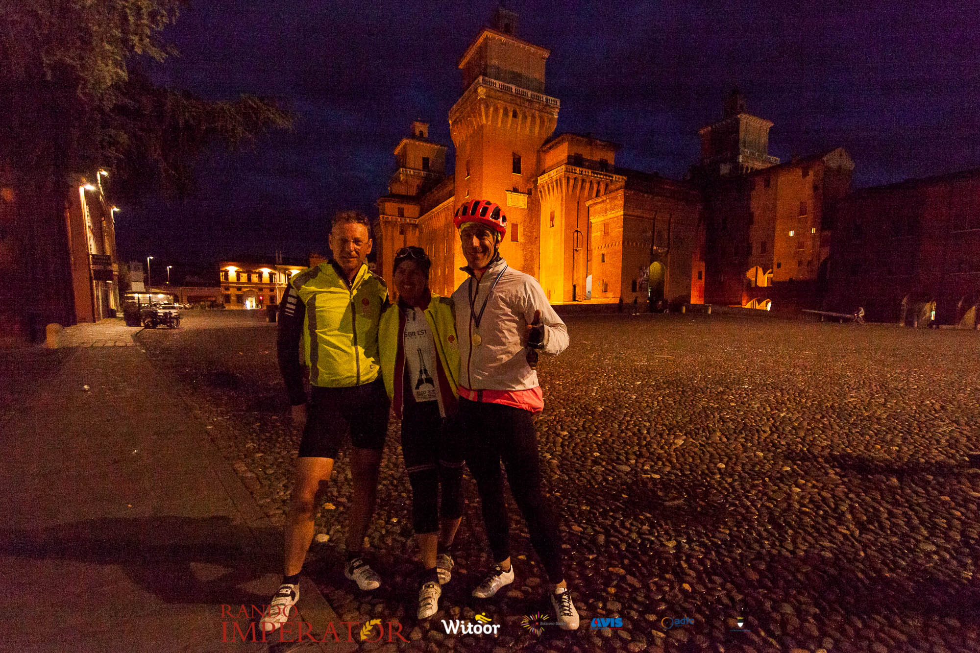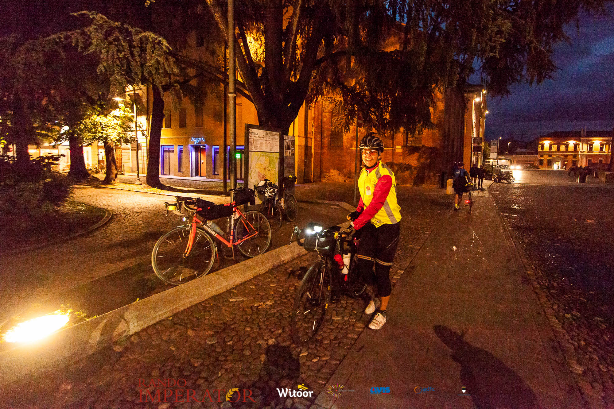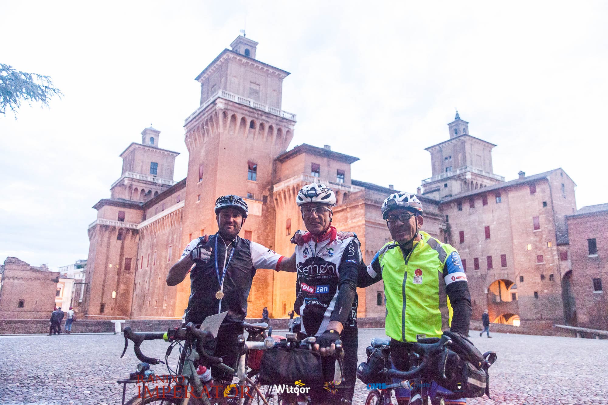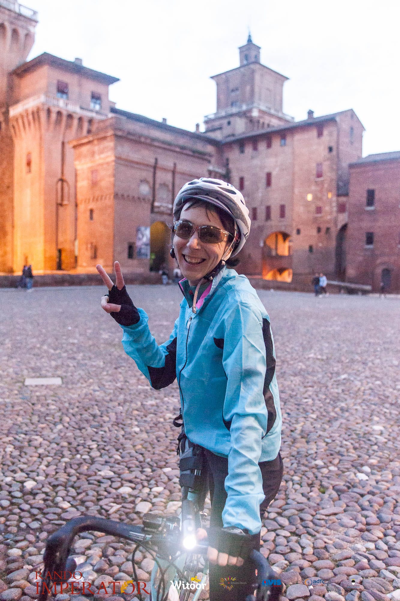 Ci siamo aiutati a infilarci i guanti gonfi di pioggia che proprio non ne volevano sapere di far passare le mani. Ce le siamo strette le mani, all’arrivo a Ferrara in piazza Castello, dopo un’infinità di strada percorsa. Ci siamo guardati negli occhi e ci siamo messi a ridere quando ci si incrociava in salita. Ci siamo abbracciati con chi ci ha aspettato per ore. Ci siamo detti “mai più”, “ci vediamo il prossimo anno”, “se bevo ancora un po’ di vino non riparto mica”. La bici è quella cosa che riesce a unire le persone, la Rando Imperator è quella randonnée che tiene stretti paesi e persone diverse, che ce la fanno o che non ce la fanno, questo poi è relativo. Conta dire grazie a tutti i partecipanti per l’impegno, la pazienza, per il modo che hanno di affrontare difficoltà e per insegnarci il vero spirito di randonneur.