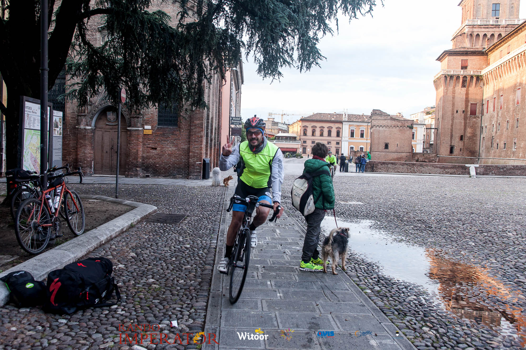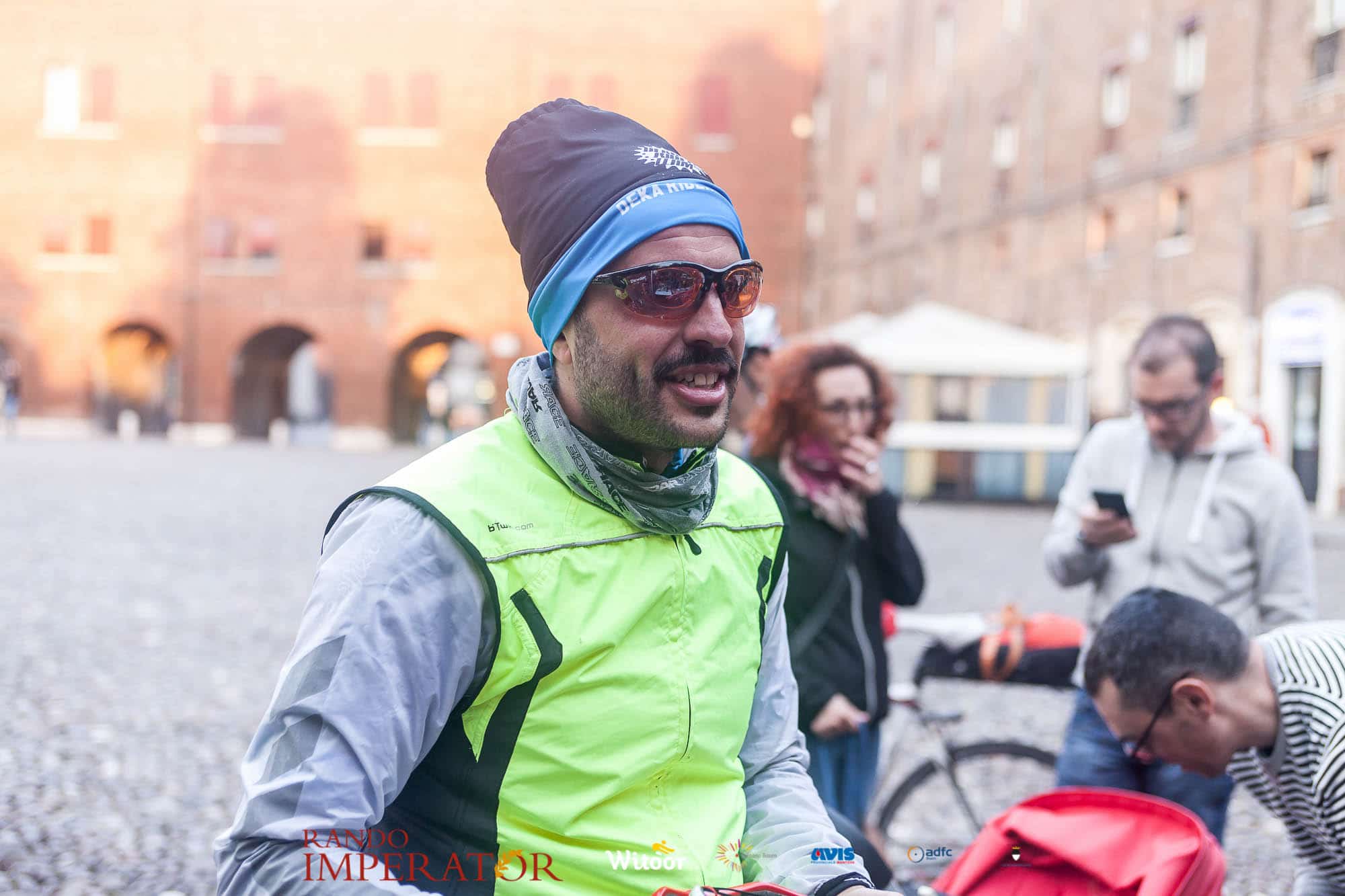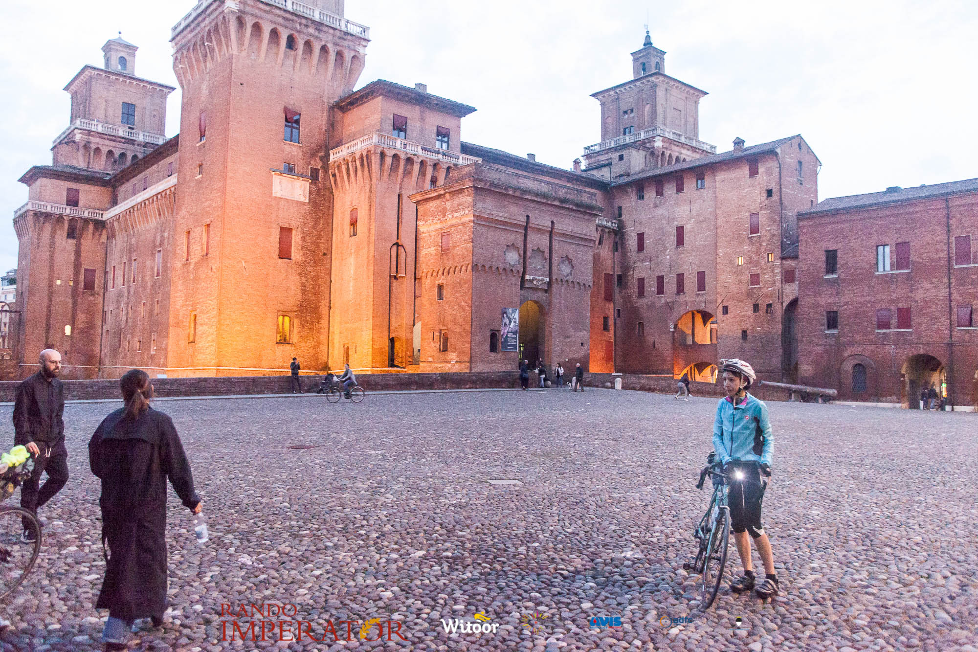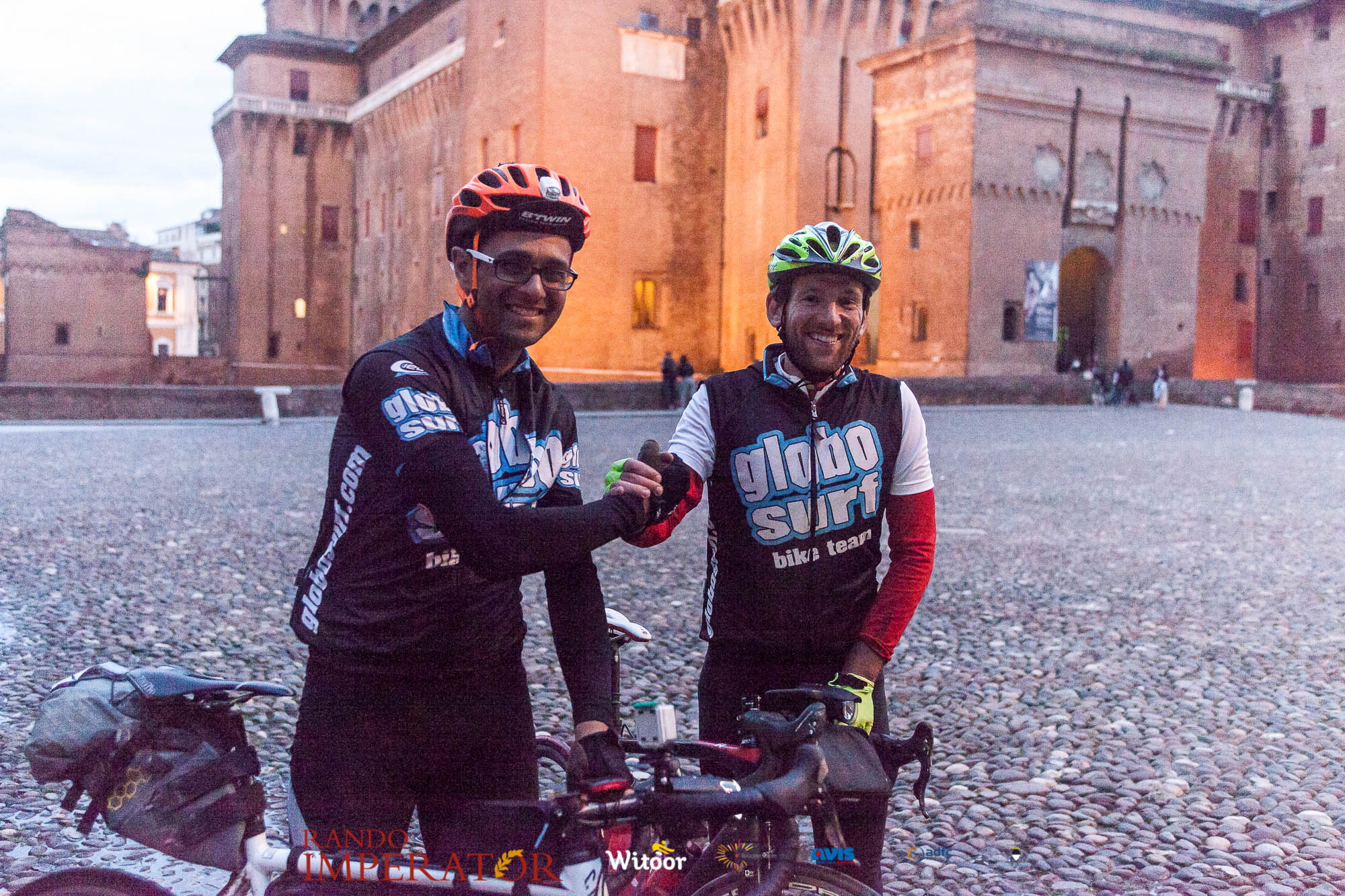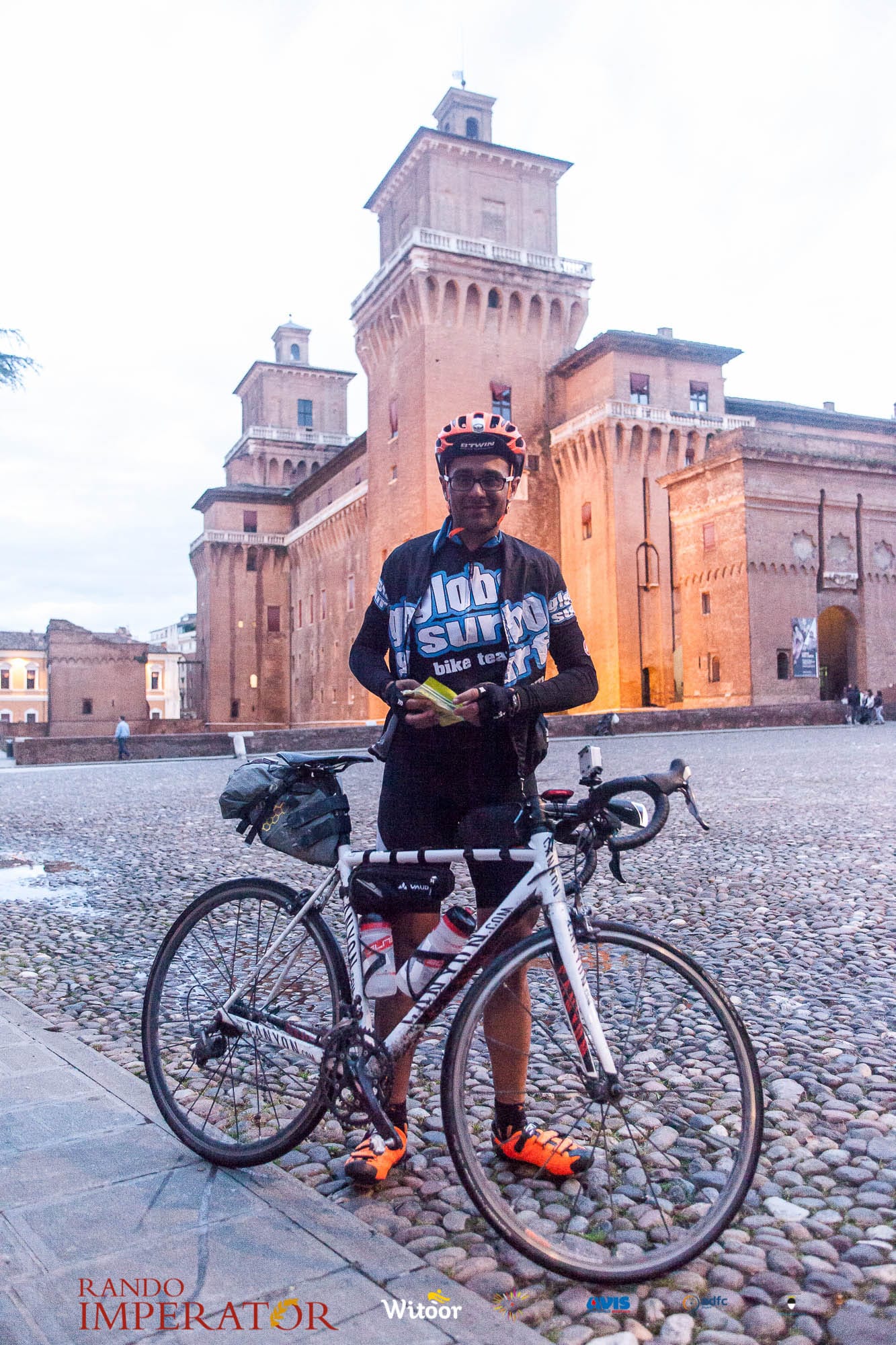 Ci siamo aiutati a infilarci i guanti gonfi di pioggia che proprio non ne volevano sapere di far passare le mani. Ce le siamo strette le mani, all’arrivo a Ferrara in piazza Castello, dopo un’infinità di strada percorsa. Ci siamo guardati negli occhi e ci siamo messi a ridere quando ci si incrociava in salita. Ci siamo abbracciati con chi ci ha aspettato per ore. Ci siamo detti “mai più”, “ci vediamo il prossimo anno”, “se bevo ancora un po’ di vino non riparto mica”. La bici è quella cosa che riesce a unire le persone, la Rando Imperator è quella randonnée che tiene stretti paesi e persone diverse, che ce la fanno o che non ce la fanno, questo poi è relativo. Conta dire grazie a tutti i partecipanti per l’impegno, la pazienza, per il modo che hanno di affrontare difficoltà e per insegnarci il vero spirito di randonneur.