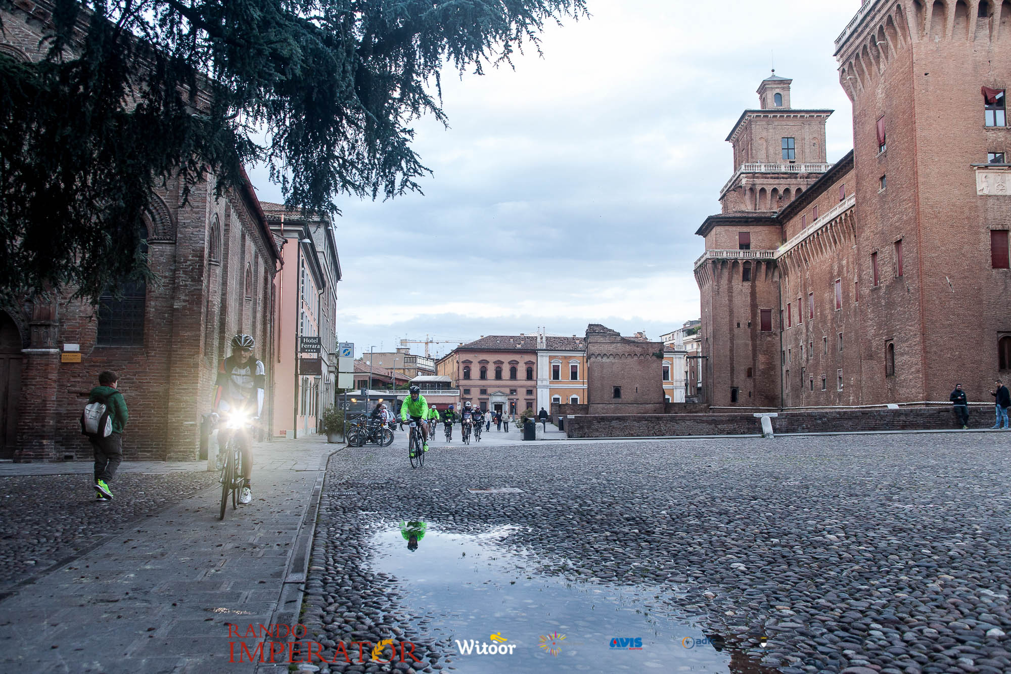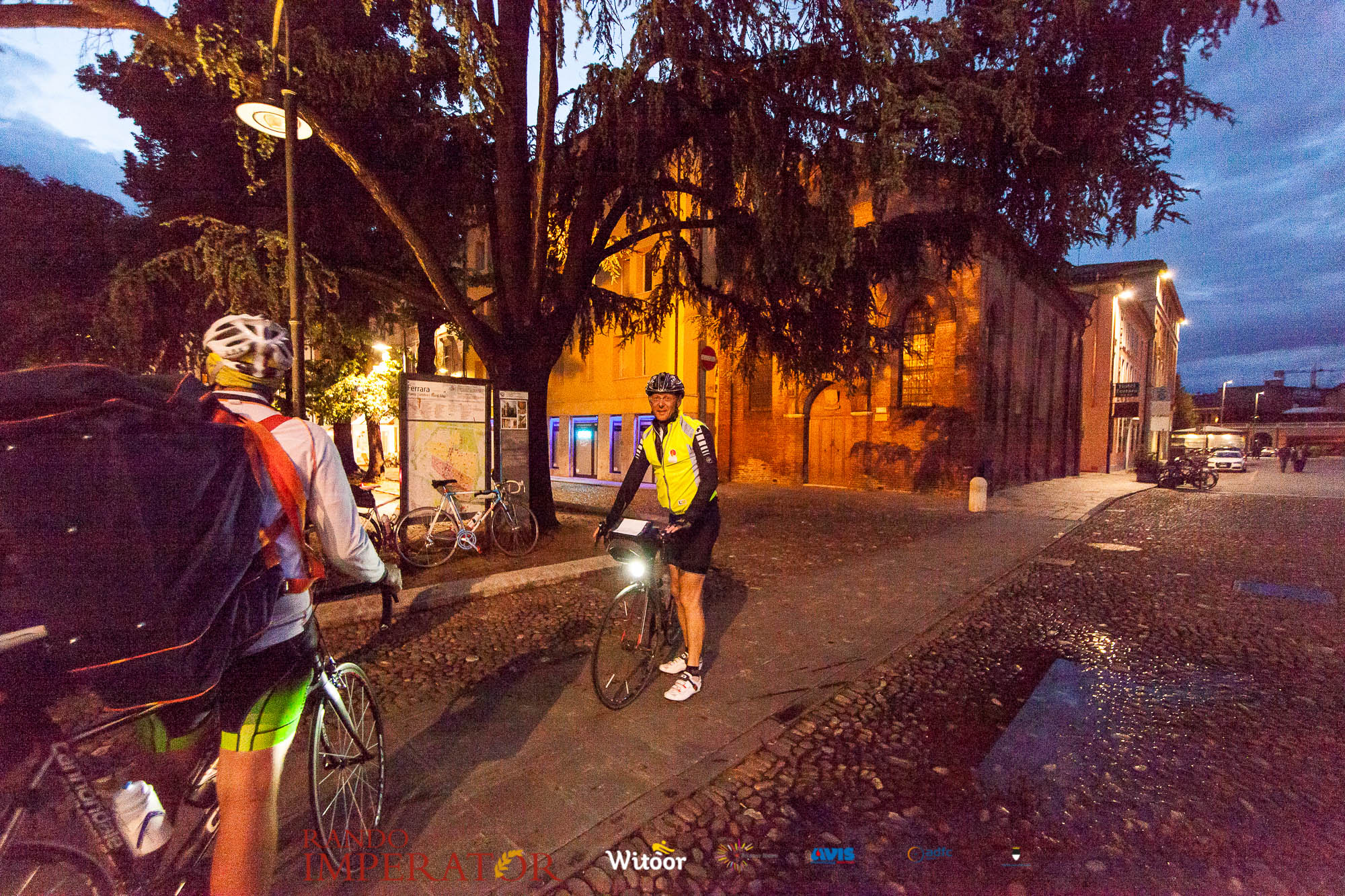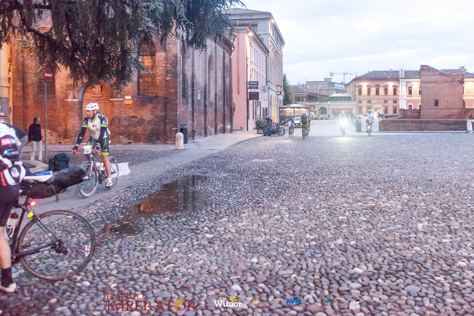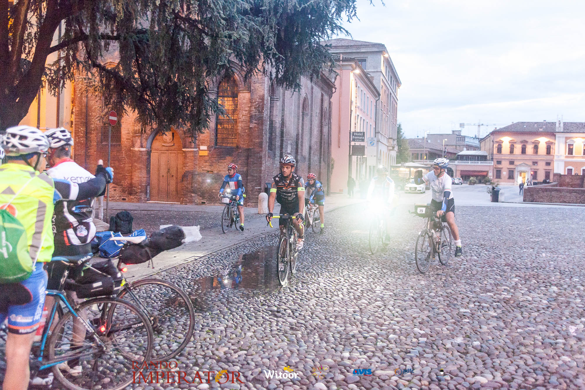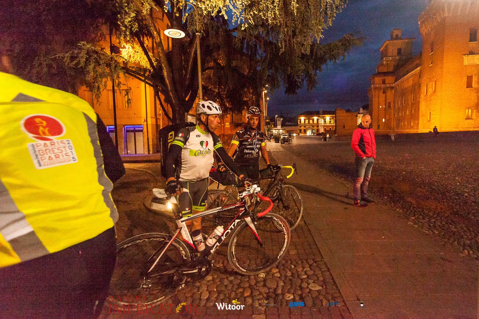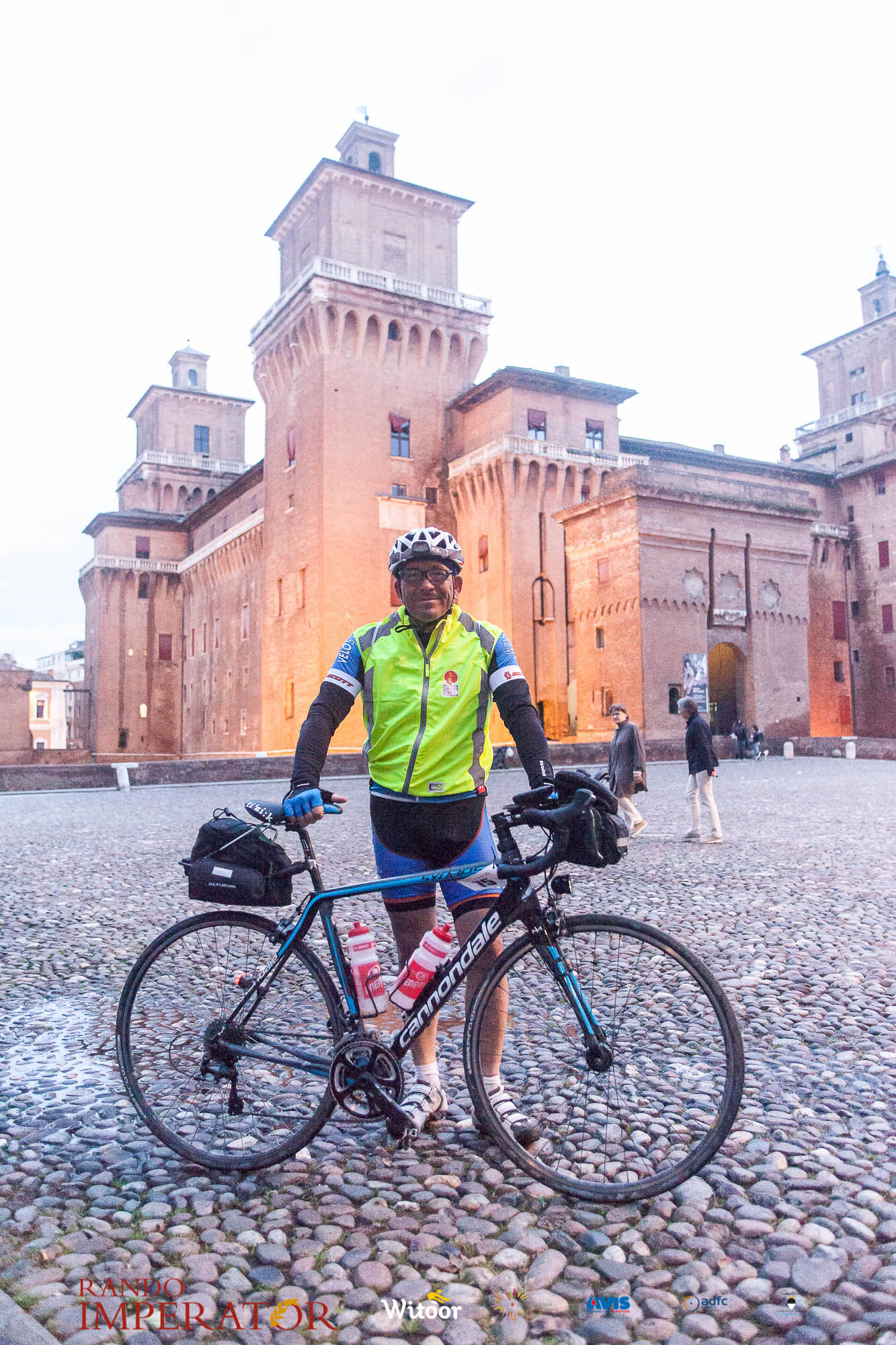 Ci siamo aiutati a infilarci i guanti gonfi di pioggia che proprio non ne volevano sapere di far passare le mani. Ce le siamo strette le mani, all’arrivo a Ferrara in piazza Castello, dopo un’infinità di strada percorsa. Ci siamo guardati negli occhi e ci siamo messi a ridere quando ci si incrociava in salita. Ci siamo abbracciati con chi ci ha aspettato per ore. Ci siamo detti “mai più”, “ci vediamo il prossimo anno”, “se bevo ancora un po’ di vino non riparto mica”. La bici è quella cosa che riesce a unire le persone, la Rando Imperator è quella randonnée che tiene stretti paesi e persone diverse, che ce la fanno o che non ce la fanno, questo poi è relativo. Conta dire grazie a tutti i partecipanti per l’impegno, la pazienza, per il modo che hanno di affrontare difficoltà e per insegnarci il vero spirito di randonneur.