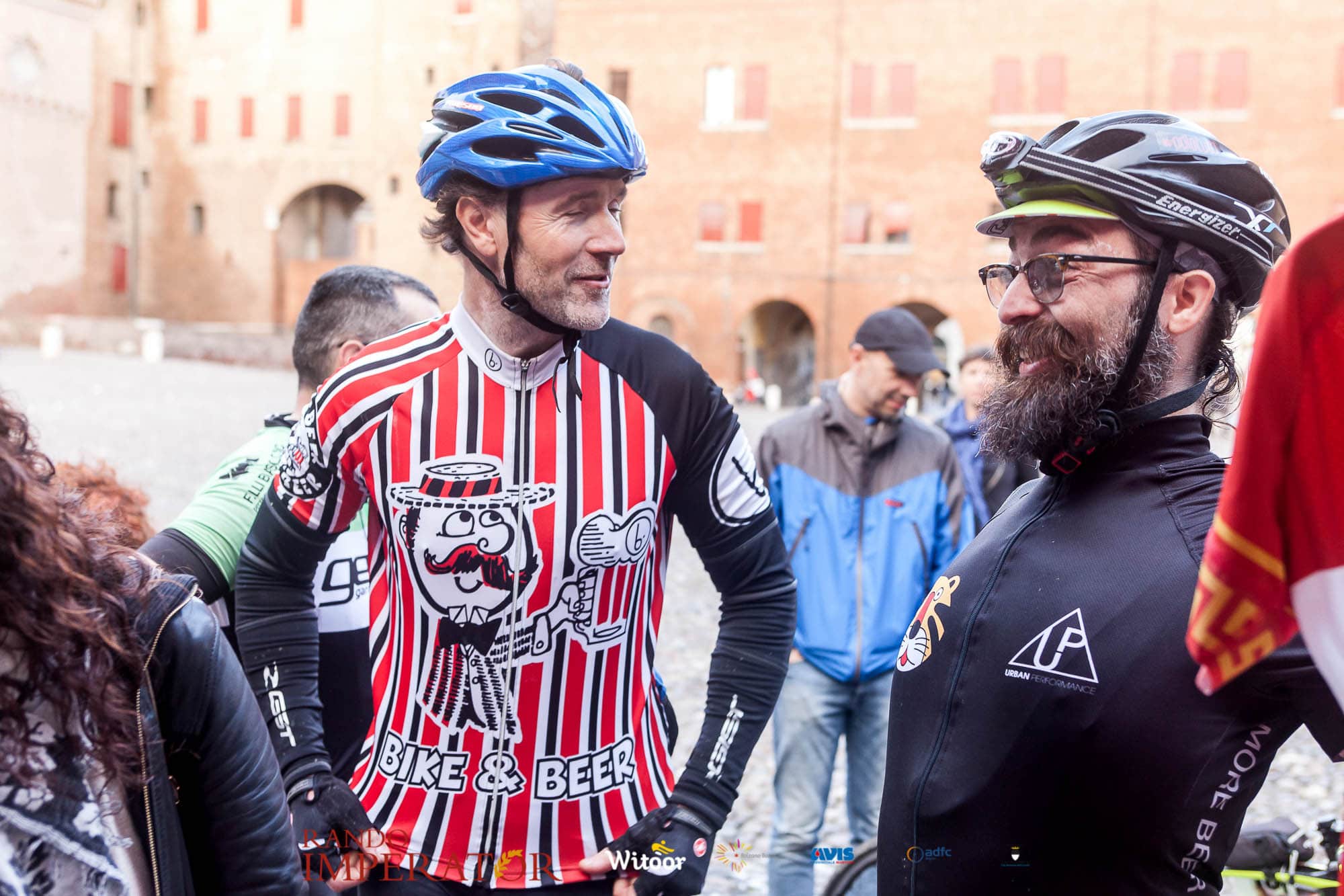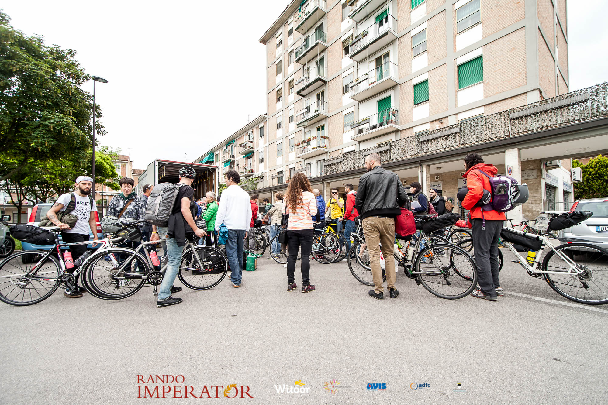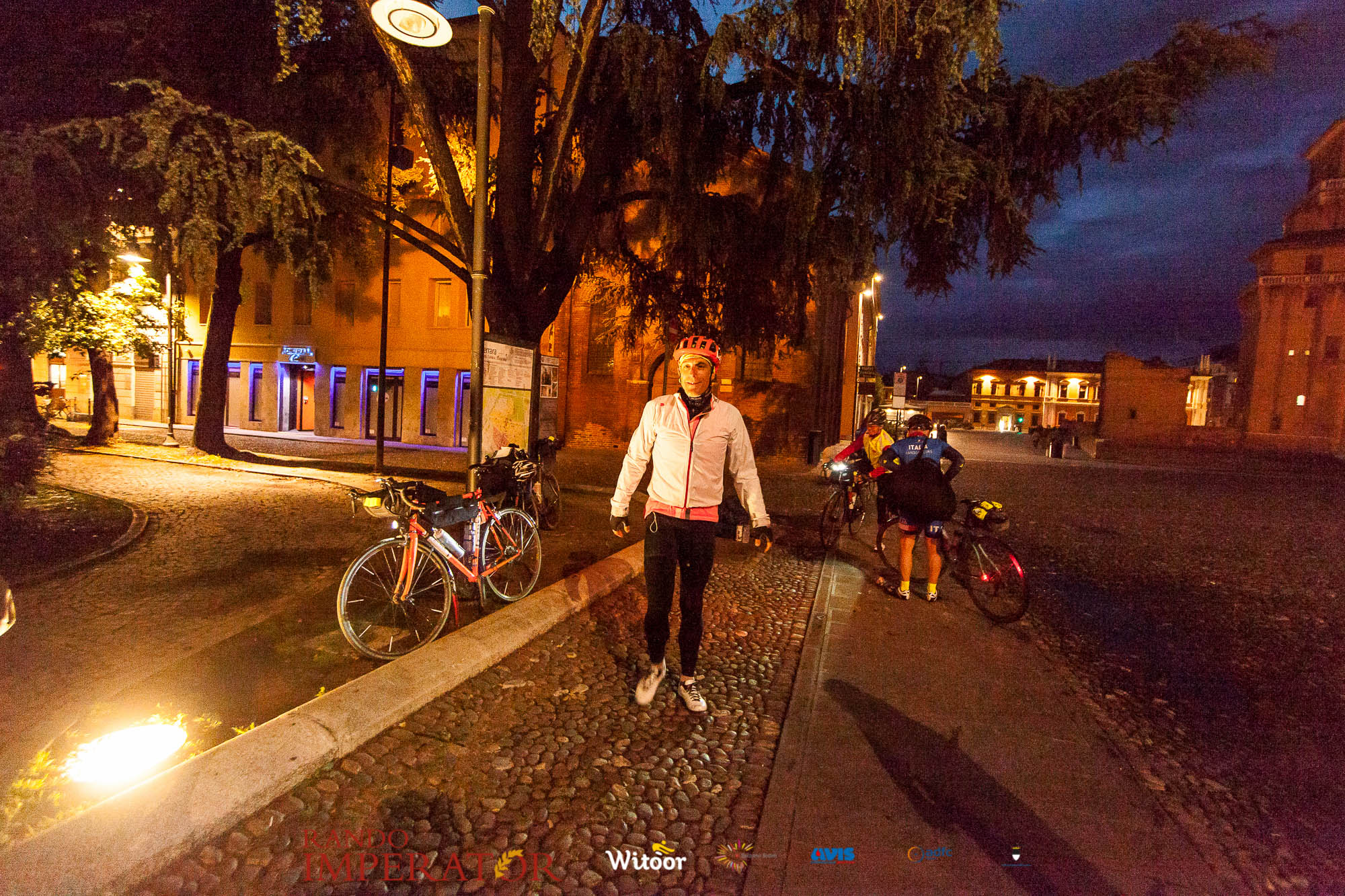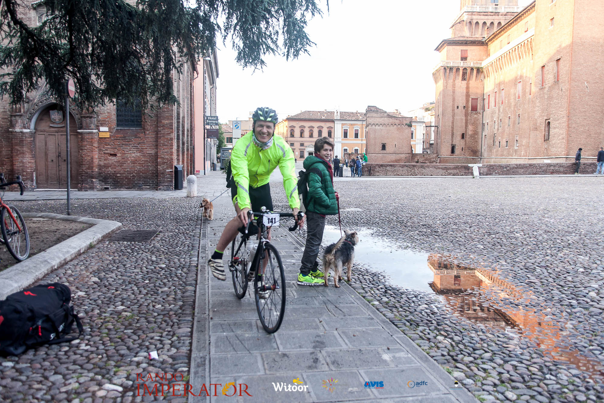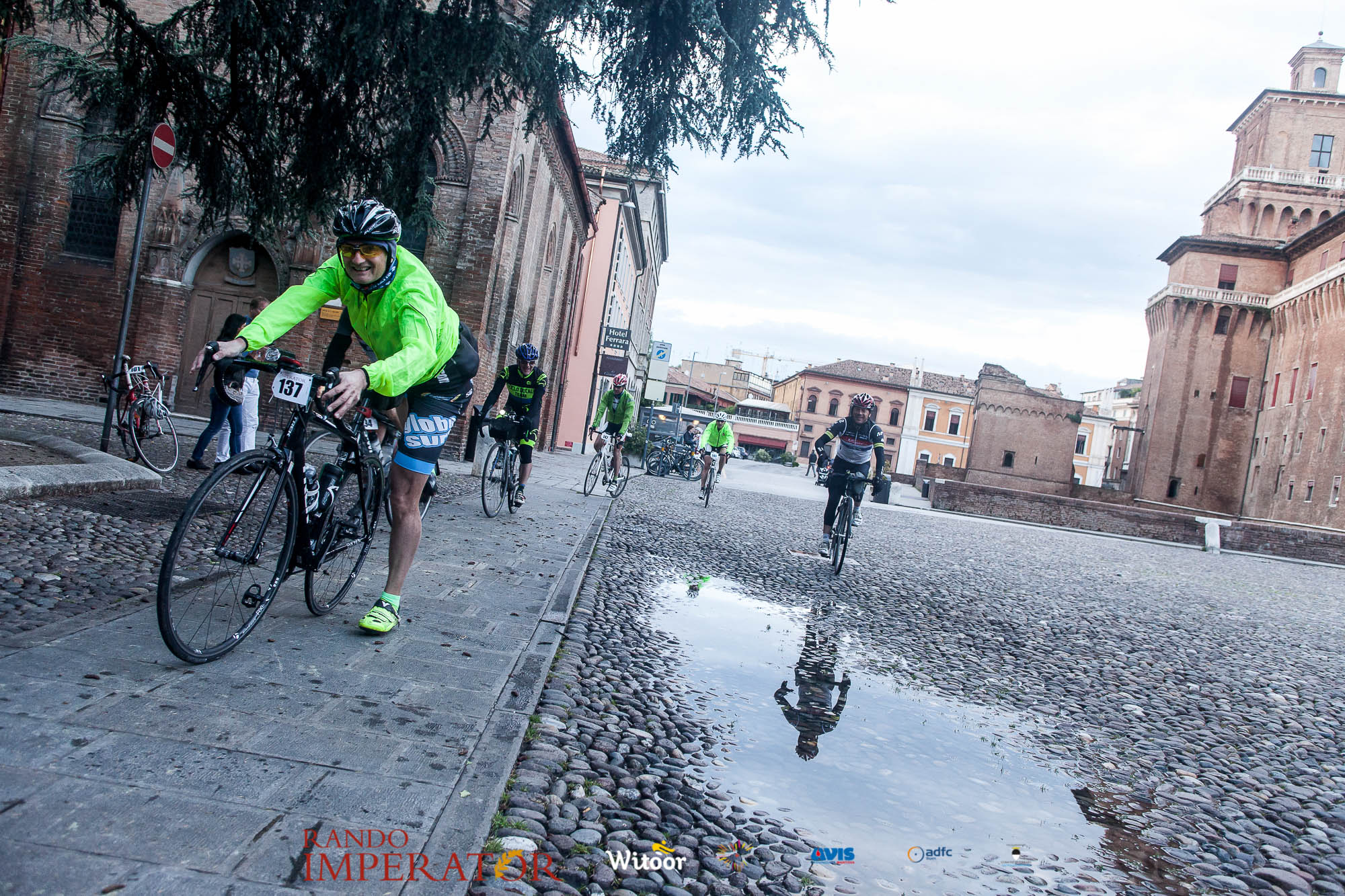 Ci siamo aiutati a infilarci i guanti gonfi di pioggia che proprio non ne volevano sapere di far passare le mani. Ce le siamo strette le mani, all’arrivo a Ferrara in piazza Castello, dopo un’infinità di strada percorsa. Ci siamo guardati negli occhi e ci siamo messi a ridere quando ci si incrociava in salita. Ci siamo abbracciati con chi ci ha aspettato per ore. Ci siamo detti “mai più”, “ci vediamo il prossimo anno”, “se bevo ancora un po’ di vino non riparto mica”. La bici è quella cosa che riesce a unire le persone, la Rando Imperator è quella randonnée che tiene stretti paesi e persone diverse, che ce la fanno o che non ce la fanno, questo poi è relativo. Conta dire grazie a tutti i partecipanti per l’impegno, la pazienza, per il modo che hanno di affrontare difficoltà e per insegnarci il vero spirito di randonneur.