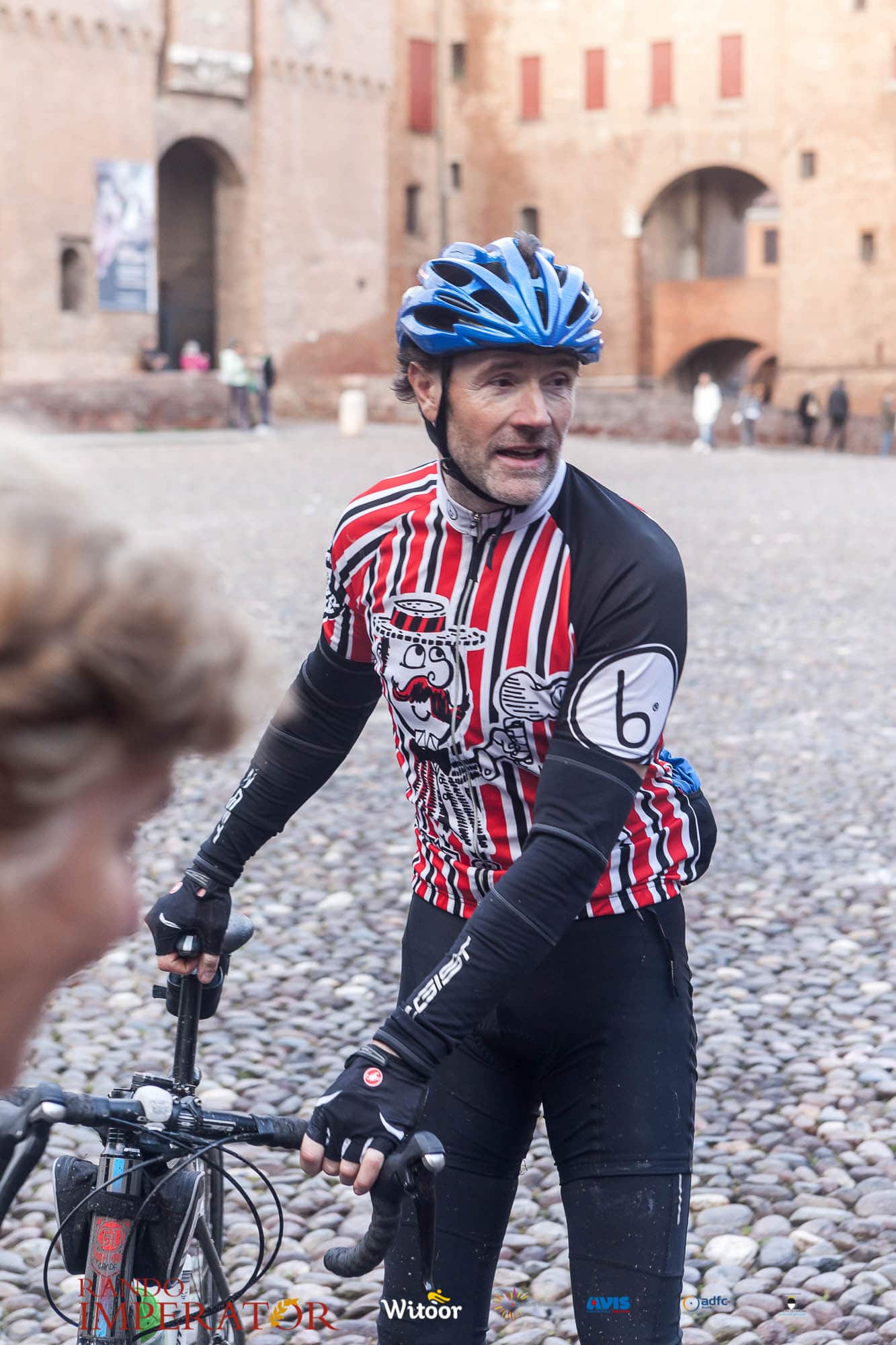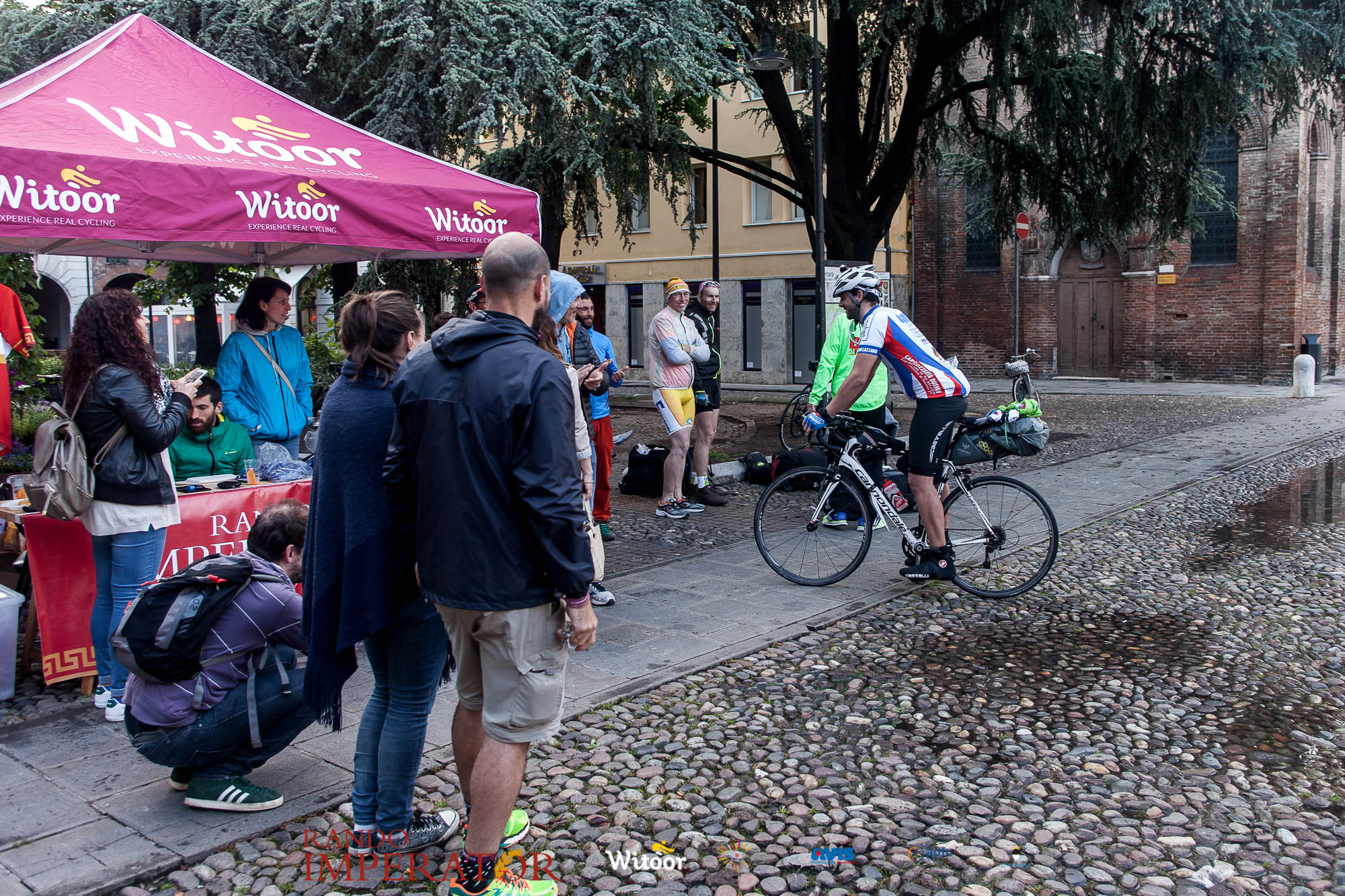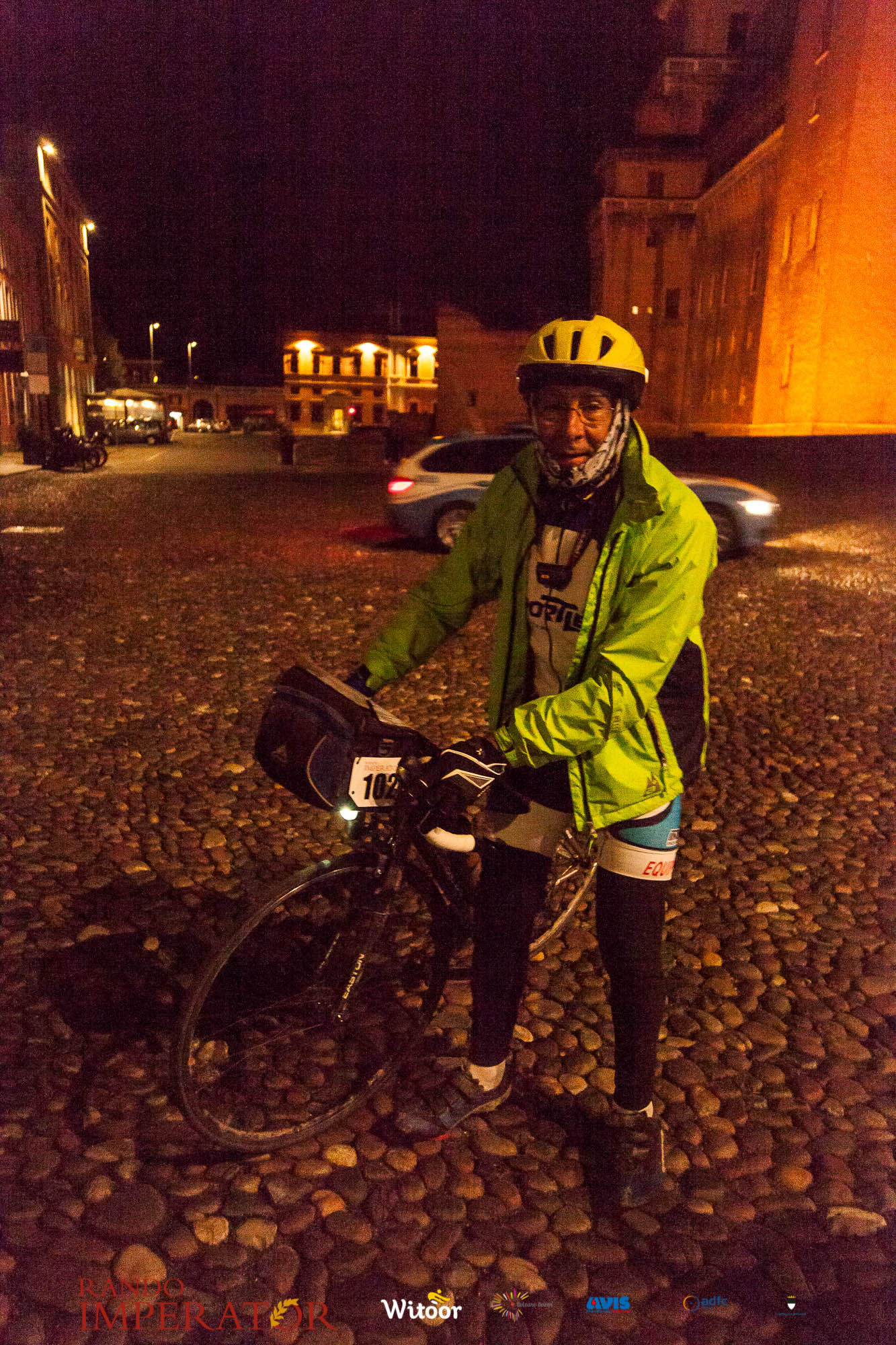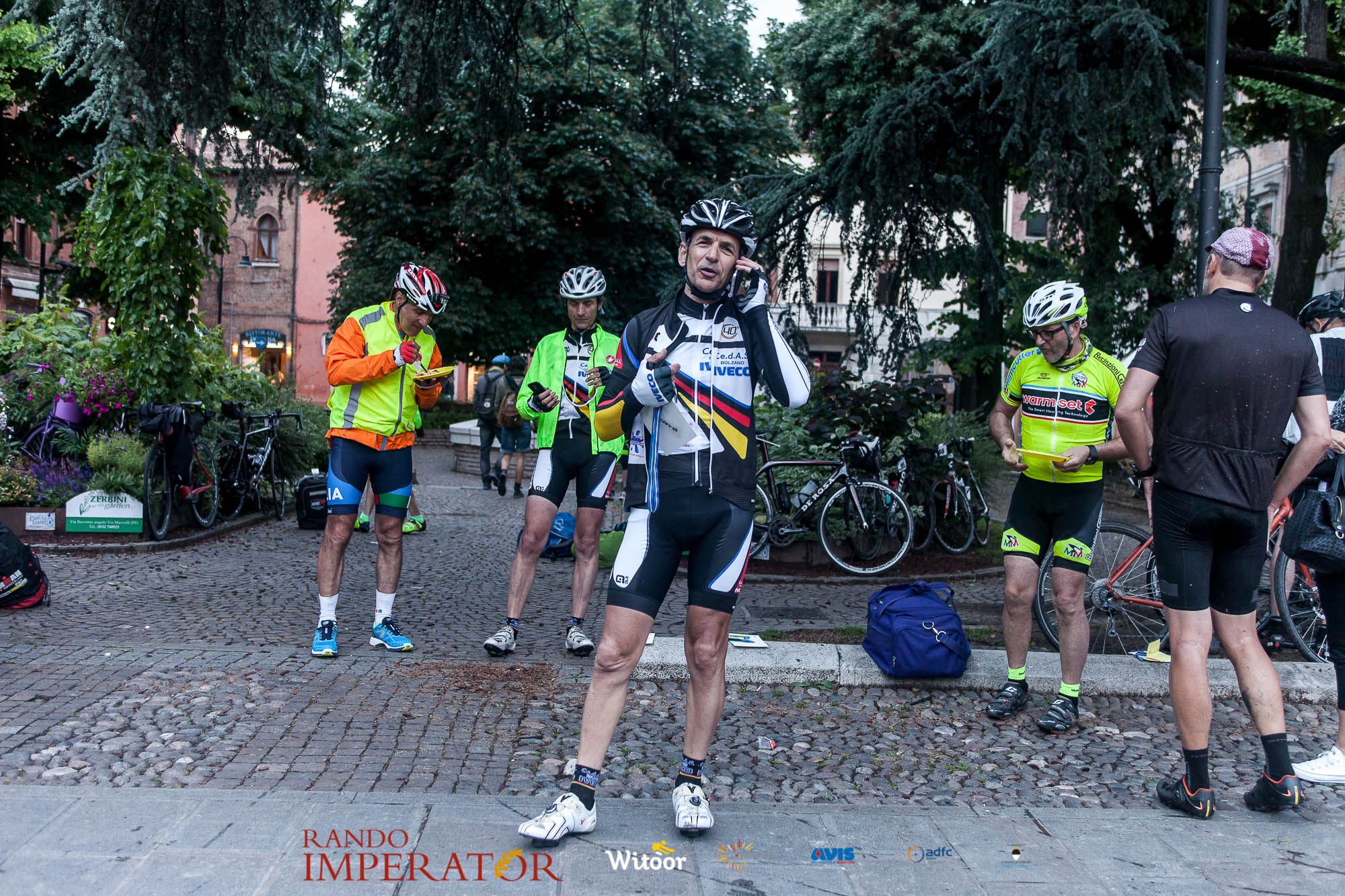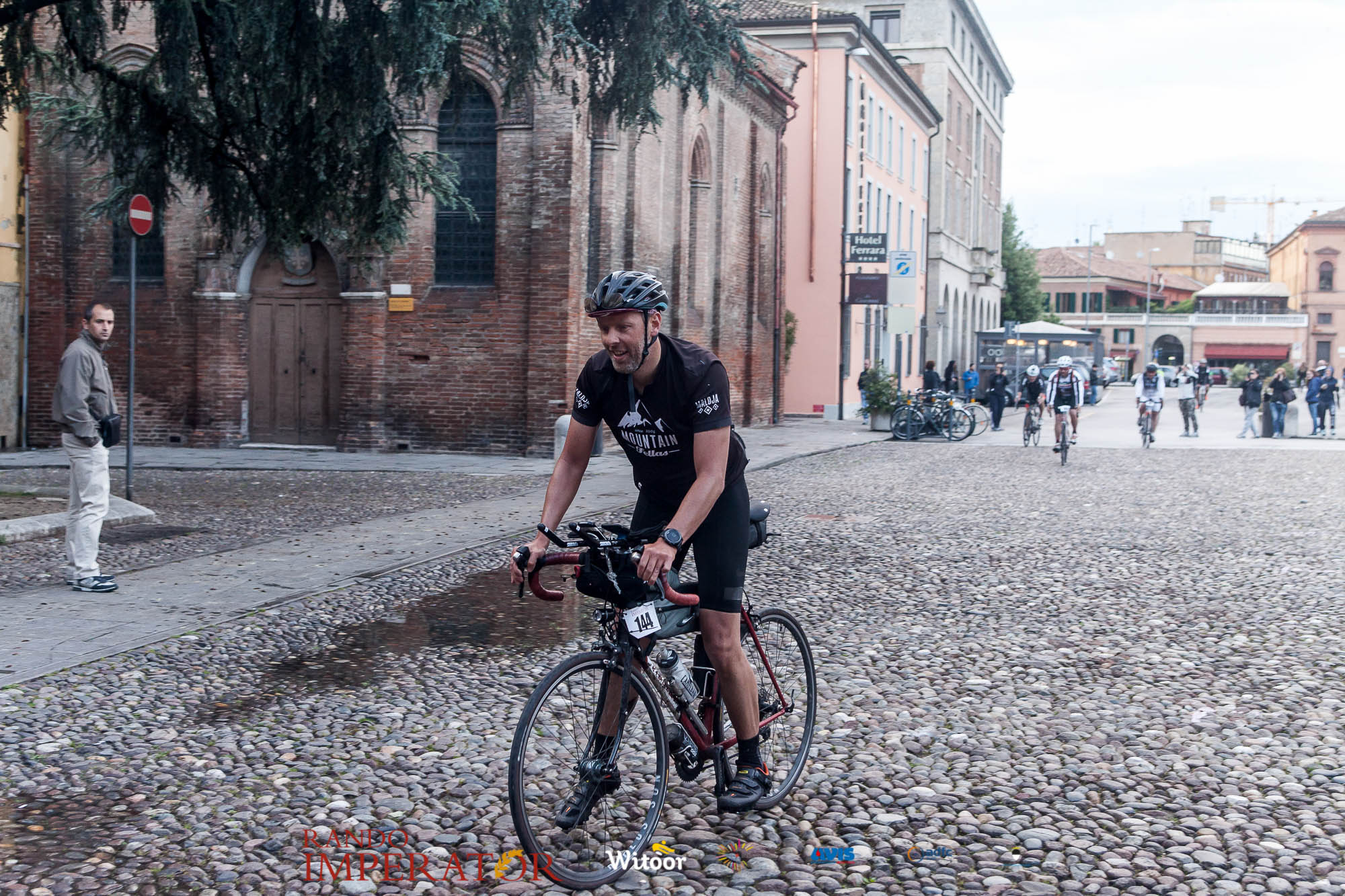 Ci siamo aiutati a infilarci i guanti gonfi di pioggia che proprio non ne volevano sapere di far passare le mani. Ce le siamo strette le mani, all’arrivo a Ferrara in piazza Castello, dopo un’infinità di strada percorsa. Ci siamo guardati negli occhi e ci siamo messi a ridere quando ci si incrociava in salita. Ci siamo abbracciati con chi ci ha aspettato per ore. Ci siamo detti “mai più”, “ci vediamo il prossimo anno”, “se bevo ancora un po’ di vino non riparto mica”. La bici è quella cosa che riesce a unire le persone, la Rando Imperator è quella randonnée che tiene stretti paesi e persone diverse, che ce la fanno o che non ce la fanno, questo poi è relativo. Conta dire grazie a tutti i partecipanti per l’impegno, la pazienza, per il modo che hanno di affrontare difficoltà e per insegnarci il vero spirito di randonneur.