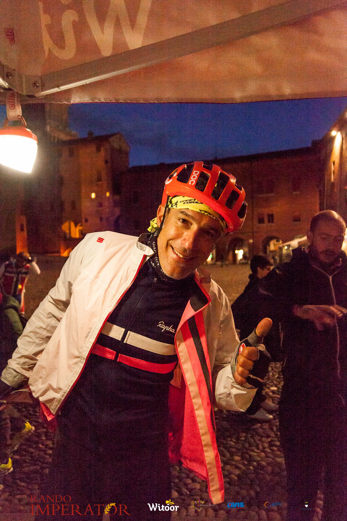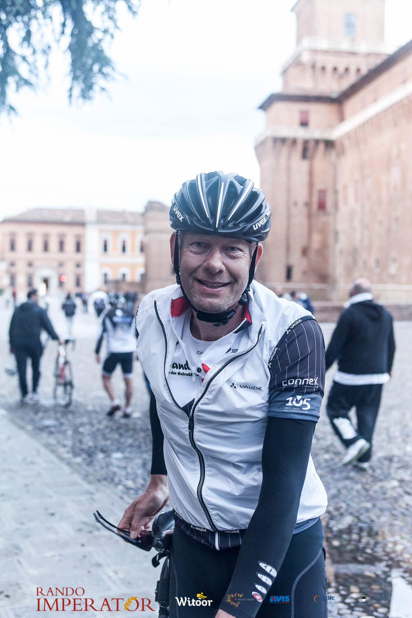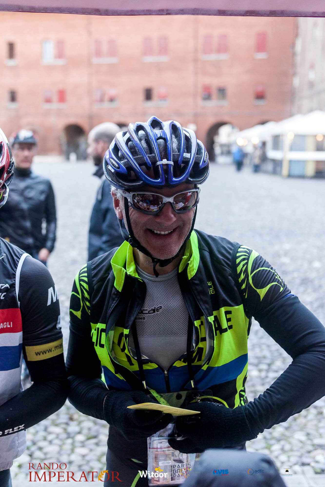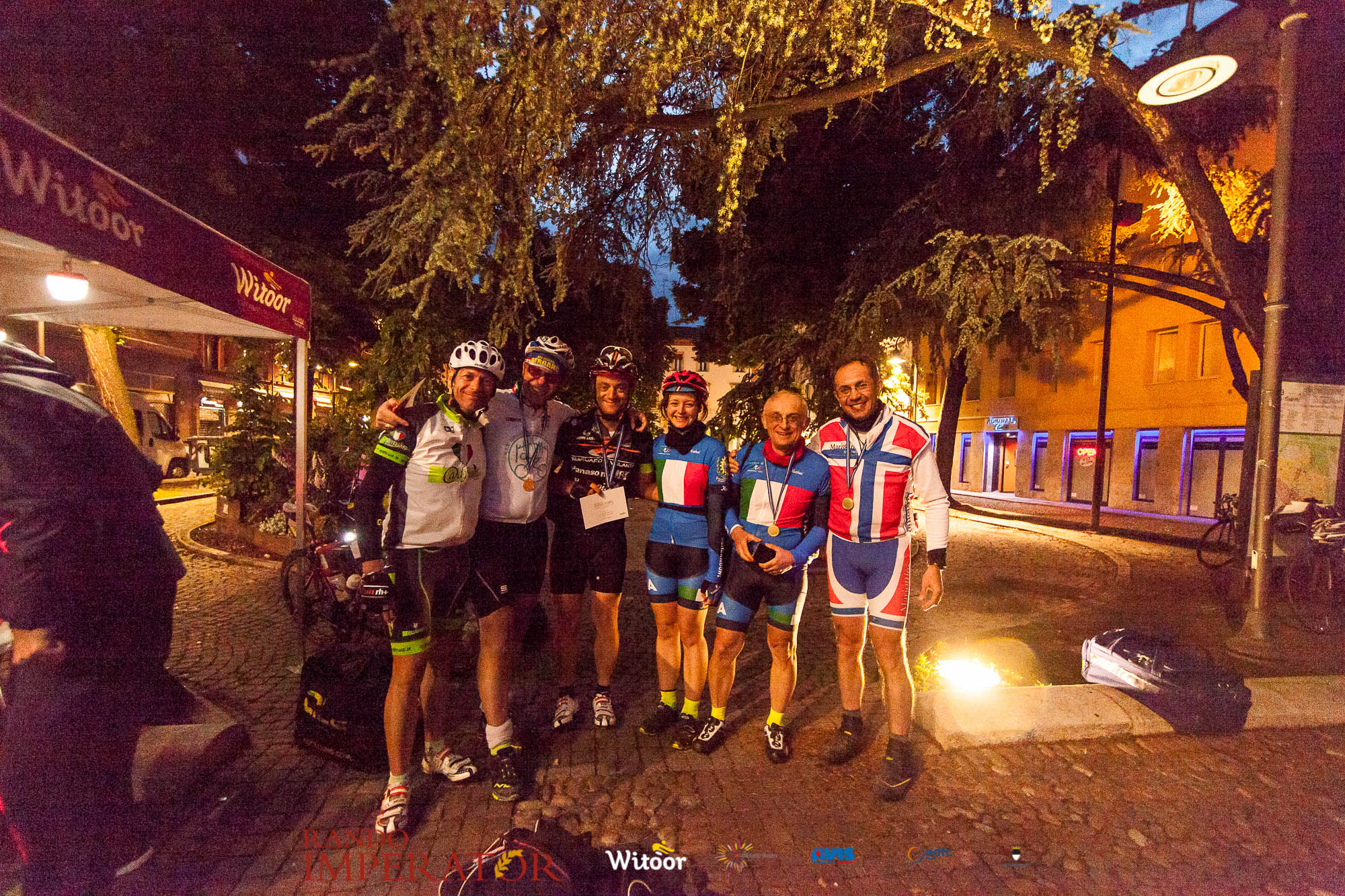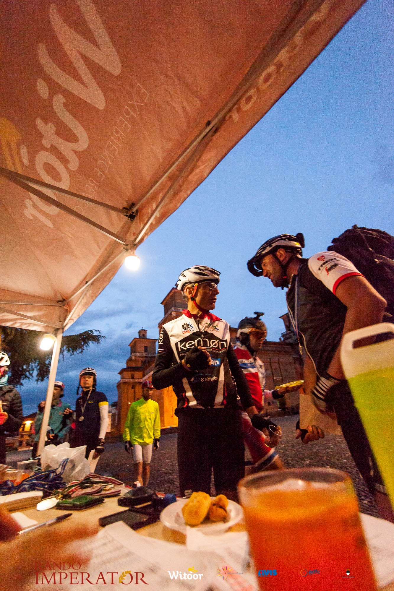 Ci siamo aiutati a infilarci i guanti gonfi di pioggia che proprio non ne volevano sapere di far passare le mani. Ce le siamo strette le mani, all’arrivo a Ferrara in piazza Castello, dopo un’infinità di strada percorsa. Ci siamo guardati negli occhi e ci siamo messi a ridere quando ci si incrociava in salita. Ci siamo abbracciati con chi ci ha aspettato per ore. Ci siamo detti “mai più”, “ci vediamo il prossimo anno”, “se bevo ancora un po’ di vino non riparto mica”. La bici è quella cosa che riesce a unire le persone, la Rando Imperator è quella randonnée che tiene stretti paesi e persone diverse, che ce la fanno o che non ce la fanno, questo poi è relativo. Conta dire grazie a tutti i partecipanti per l’impegno, la pazienza, per il modo che hanno di affrontare difficoltà e per insegnarci il vero spirito di randonneur.