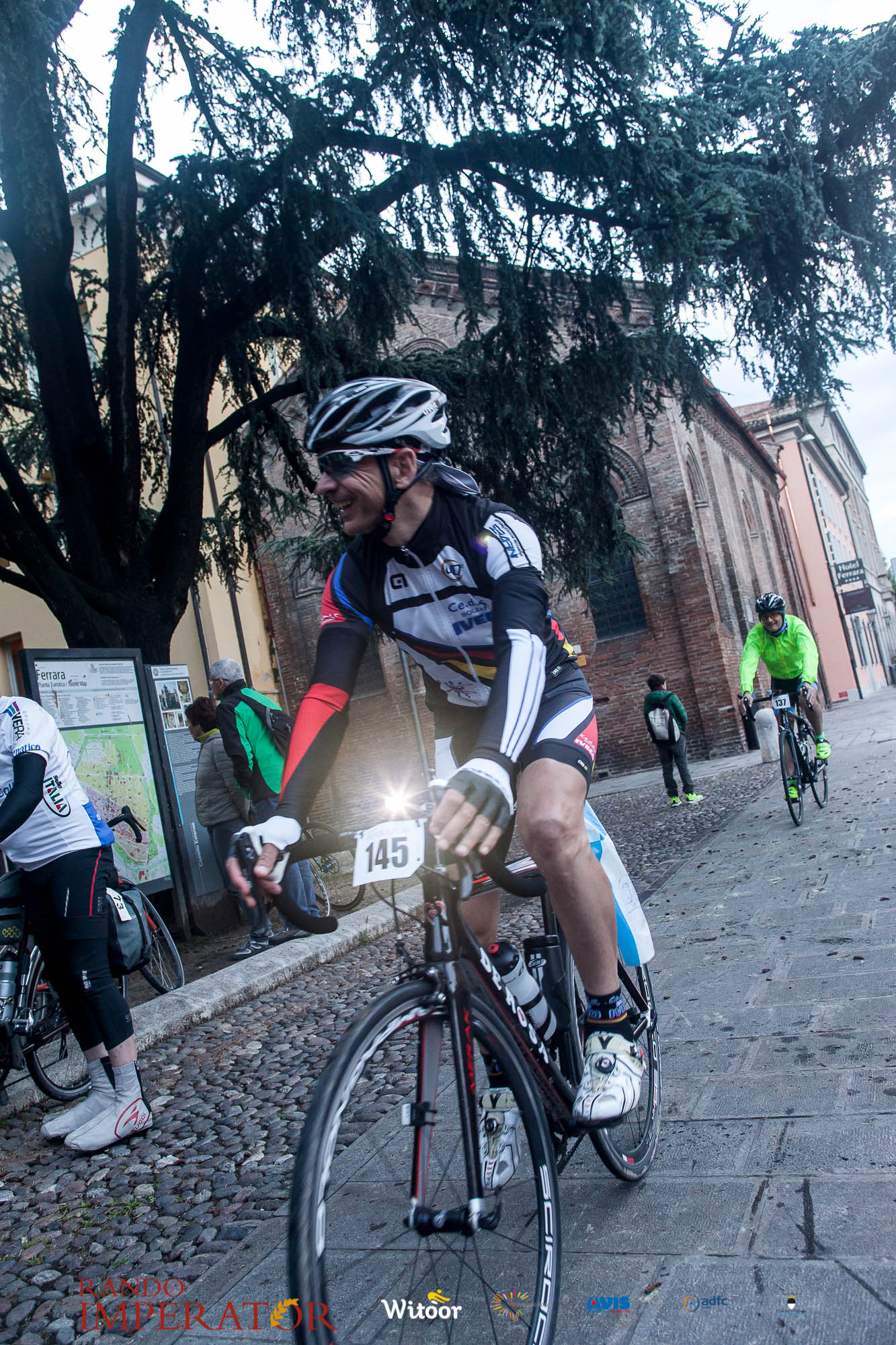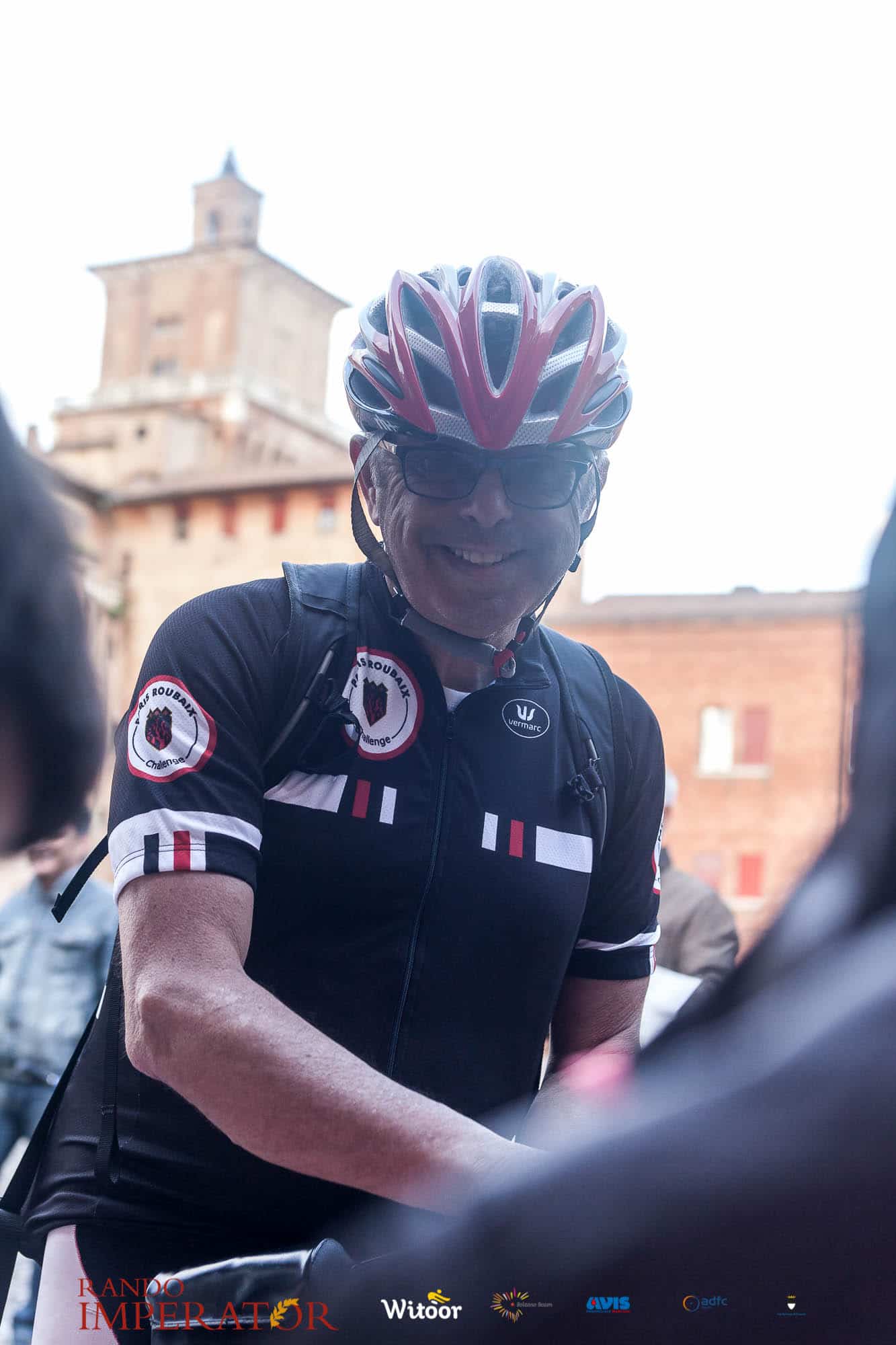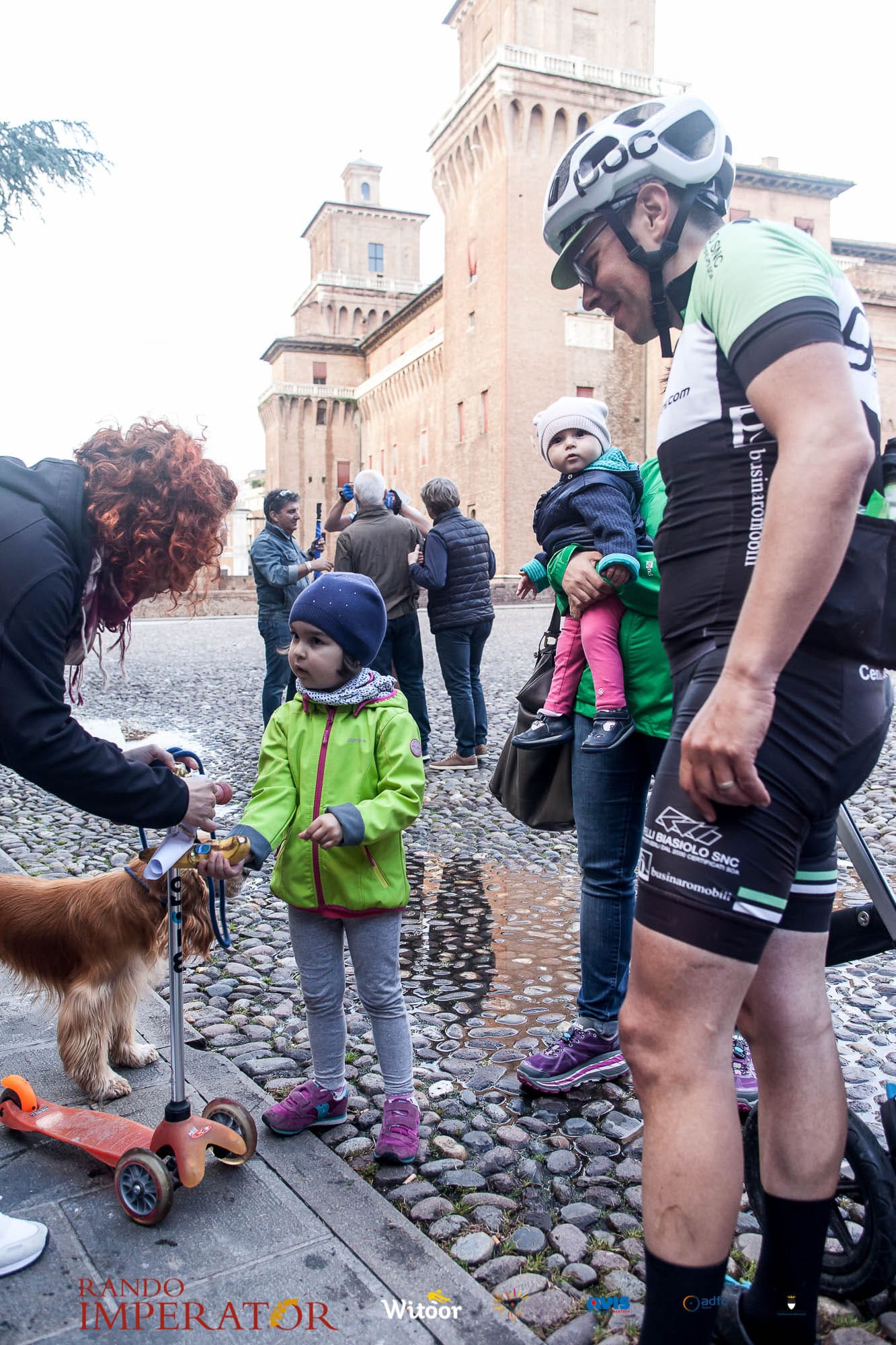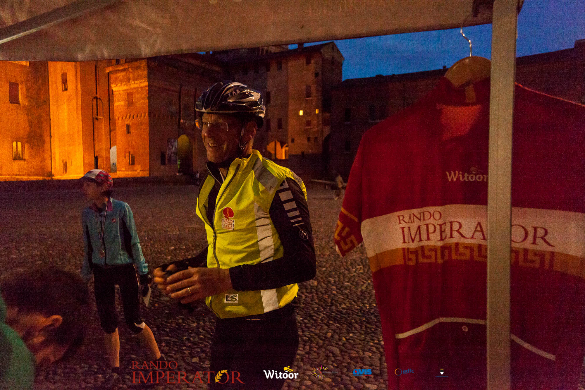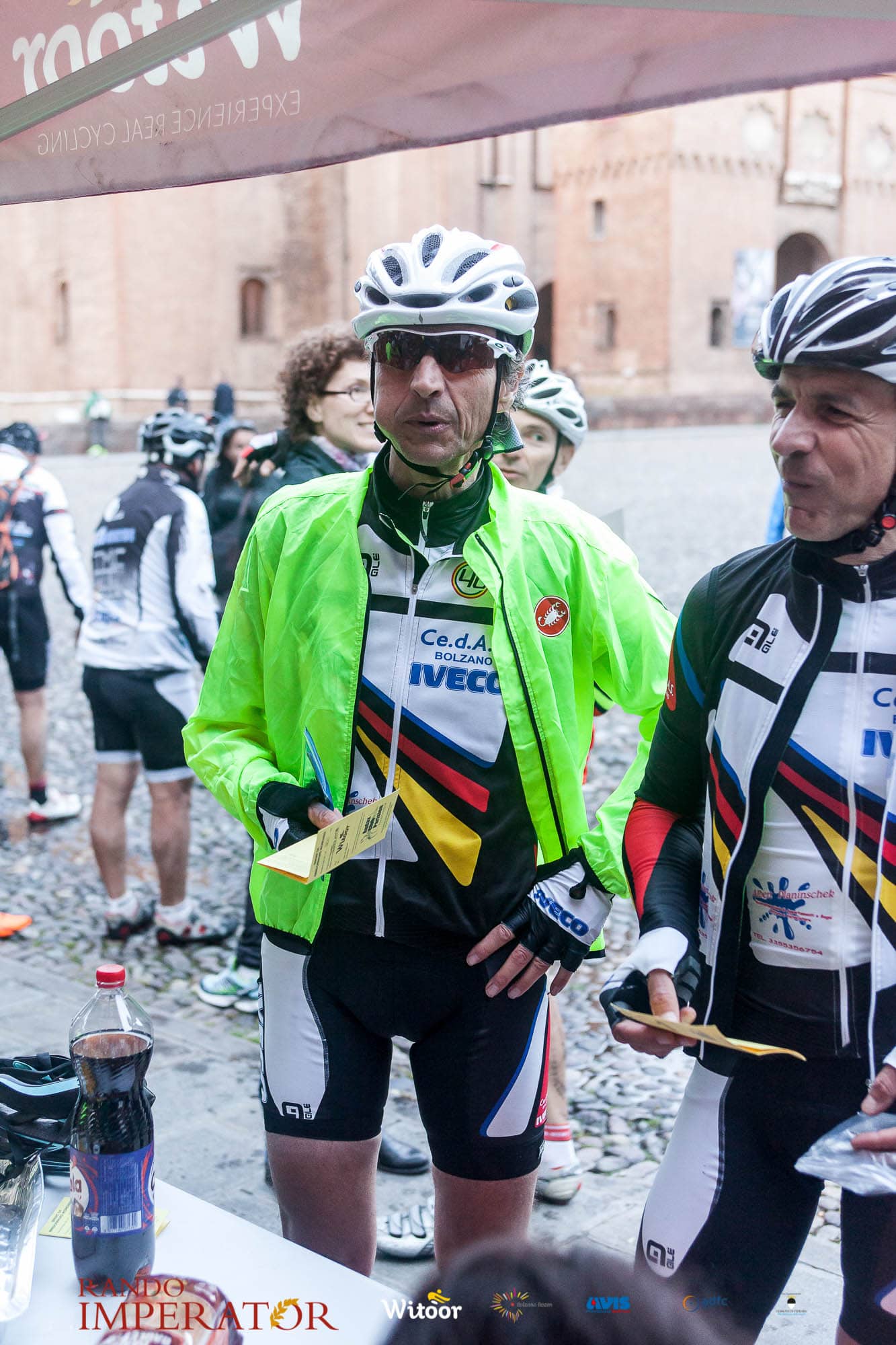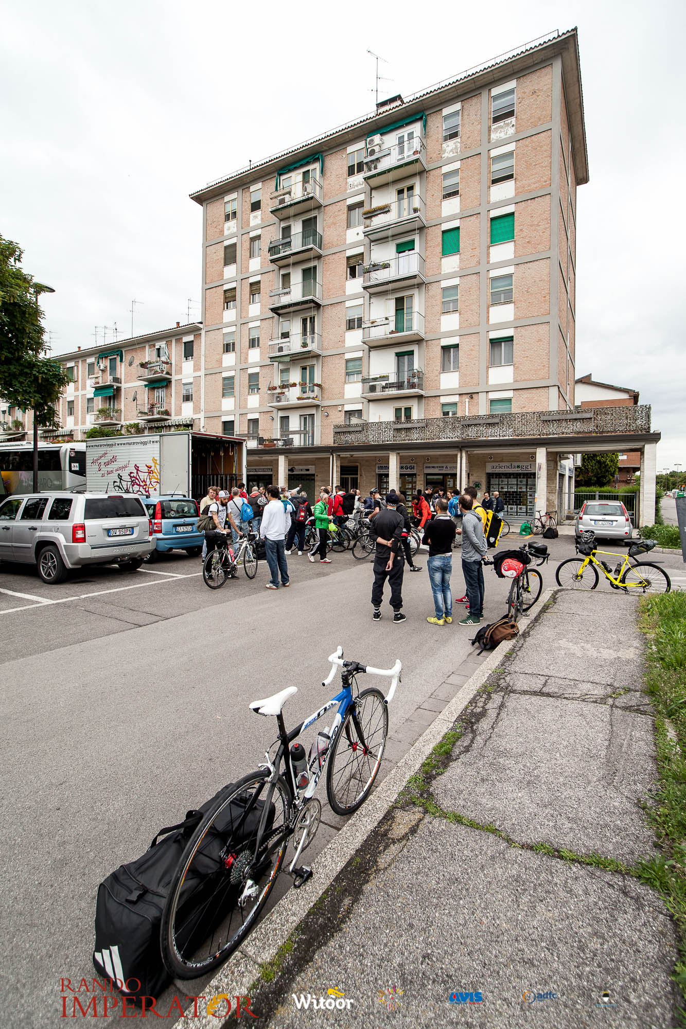 Ci siamo aiutati a infilarci i guanti gonfi di pioggia che proprio non ne volevano sapere di far passare le mani. Ce le siamo strette le mani, all’arrivo a Ferrara in piazza Castello, dopo un’infinità di strada percorsa. Ci siamo guardati negli occhi e ci siamo messi a ridere quando ci si incrociava in salita. Ci siamo abbracciati con chi ci ha aspettato per ore. Ci siamo detti “mai più”, “ci vediamo il prossimo anno”, “se bevo ancora un po’ di vino non riparto mica”. La bici è quella cosa che riesce a unire le persone, la Rando Imperator è quella randonnée che tiene stretti paesi e persone diverse, che ce la fanno o che non ce la fanno, questo poi è relativo. Conta dire grazie a tutti i partecipanti per l’impegno, la pazienza, per il modo che hanno di affrontare difficoltà e per insegnarci il vero spirito di randonneur.