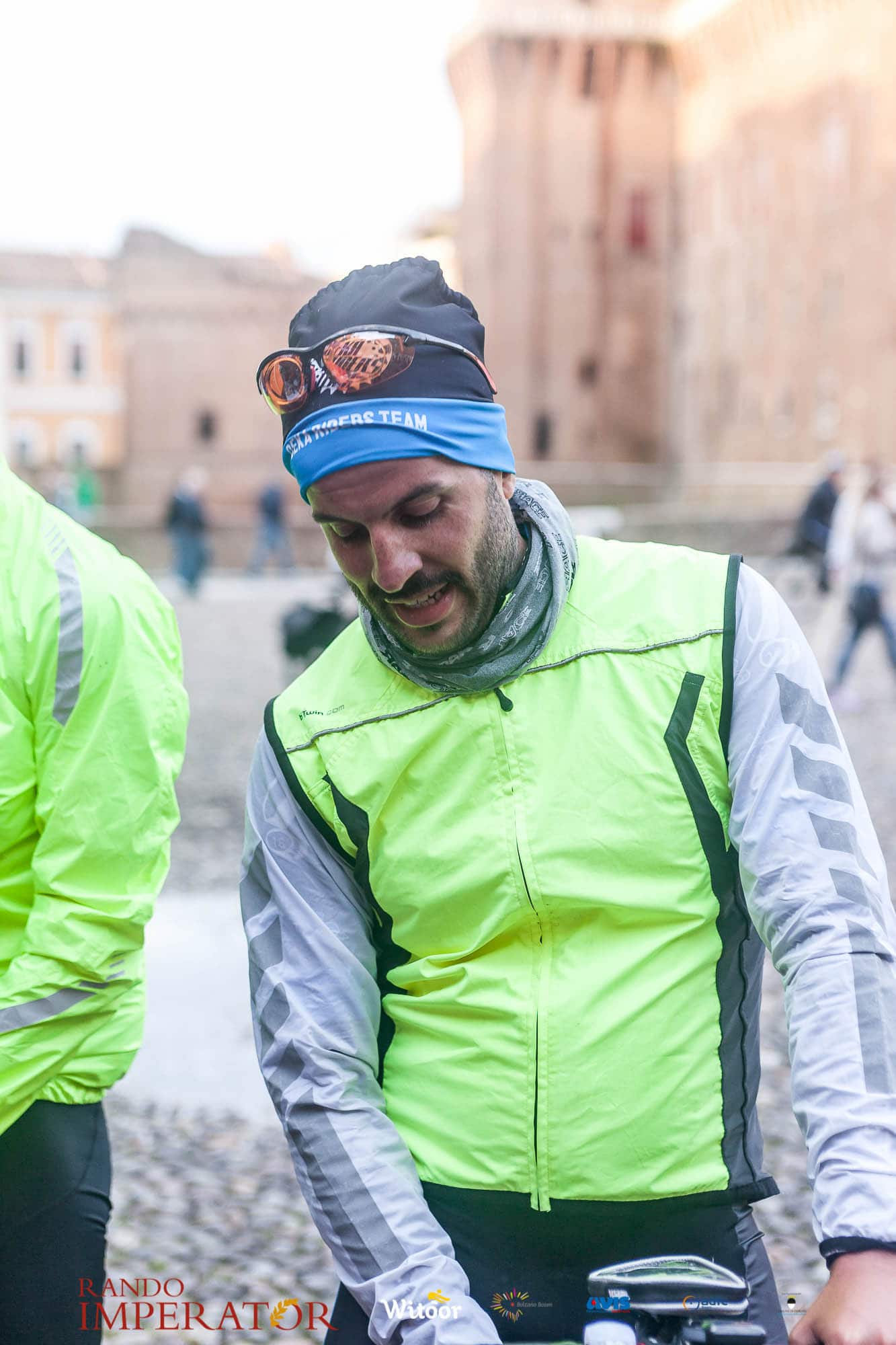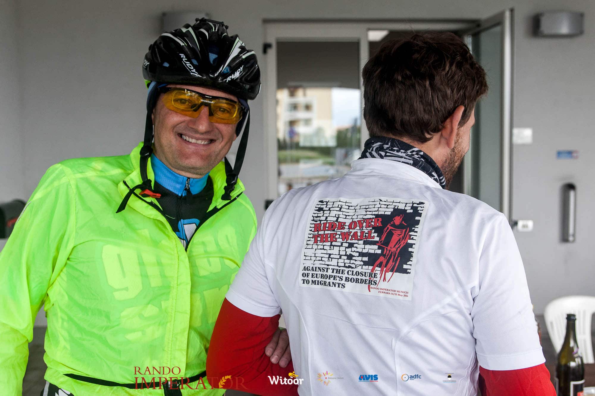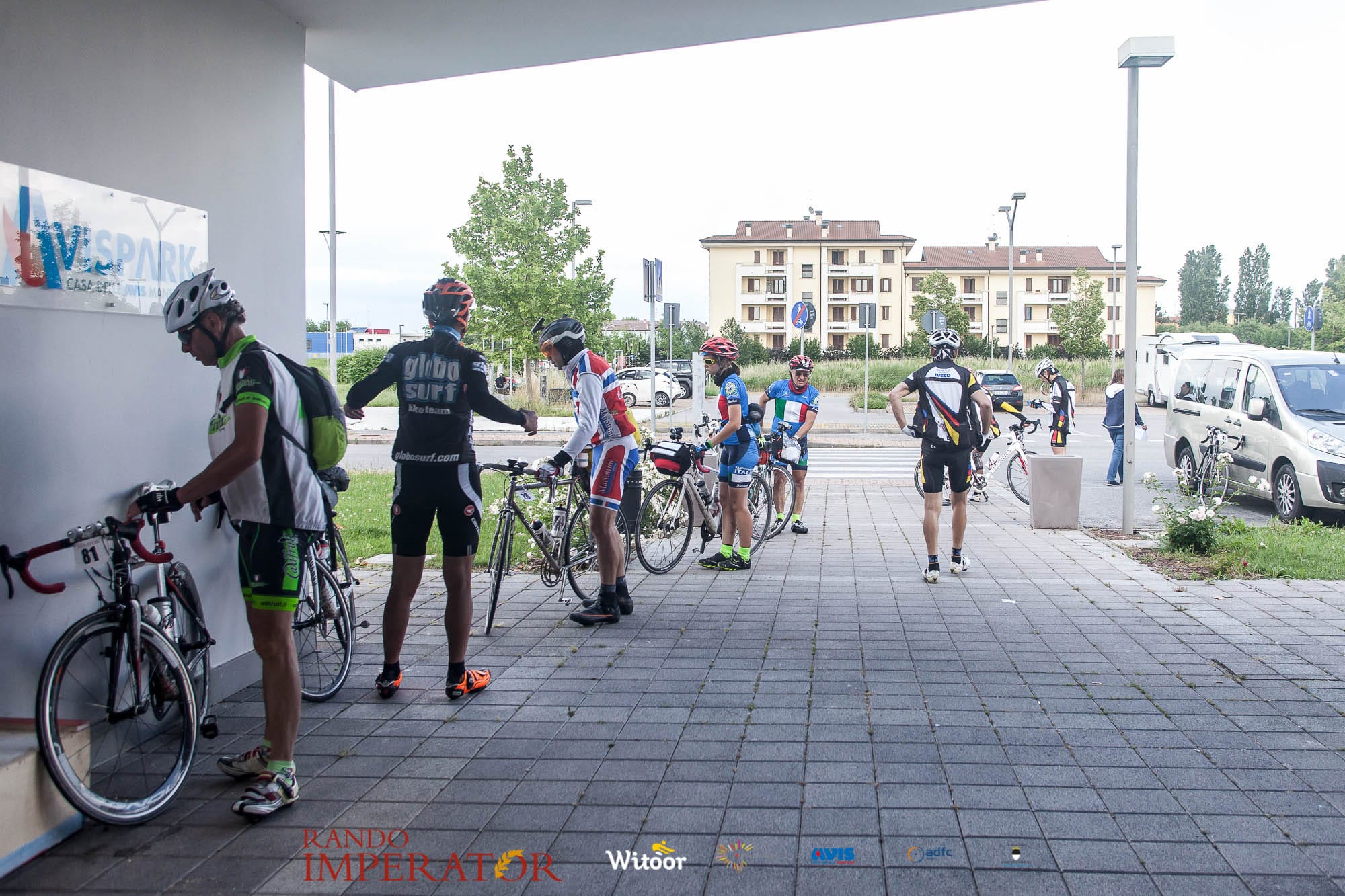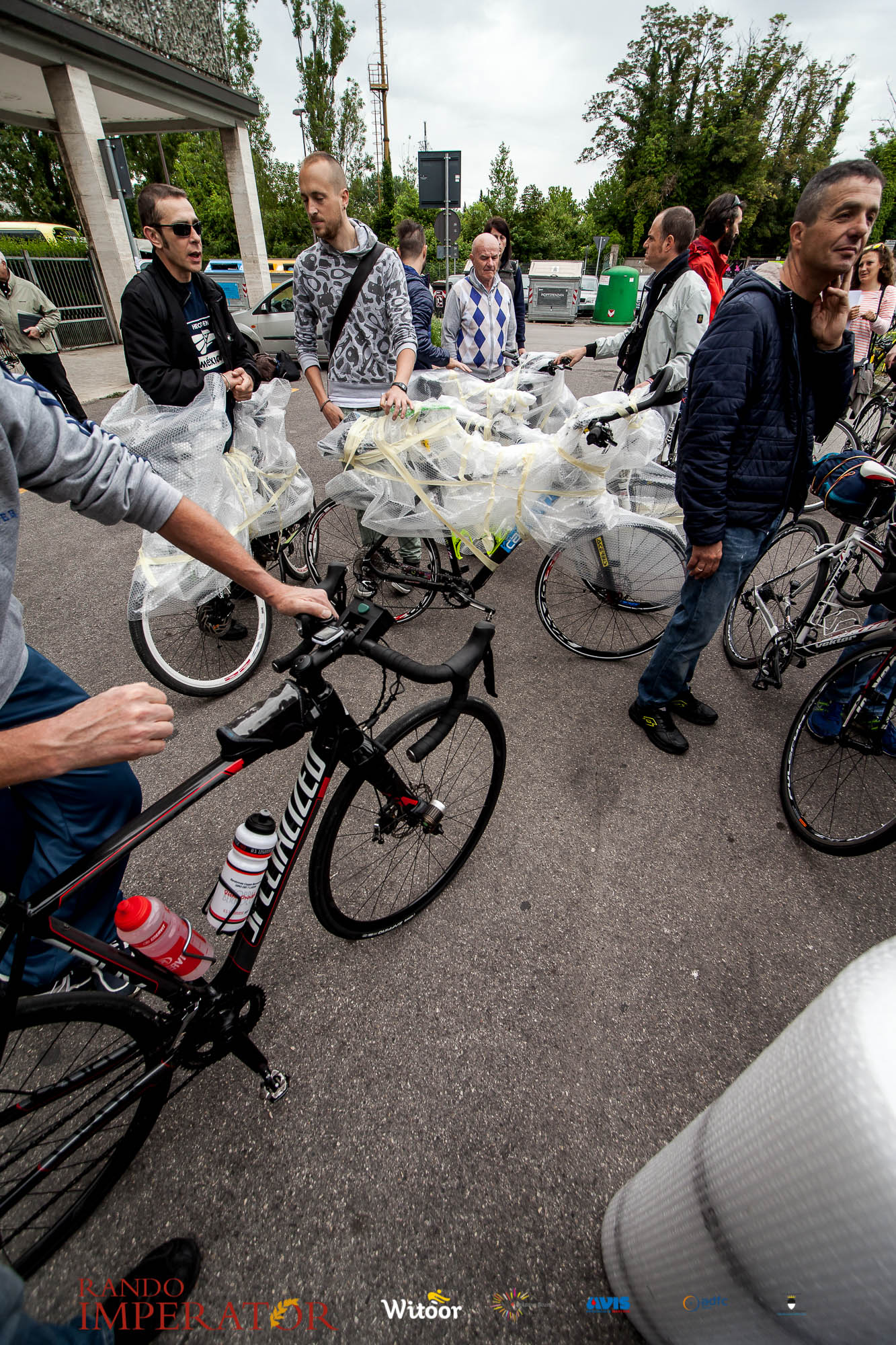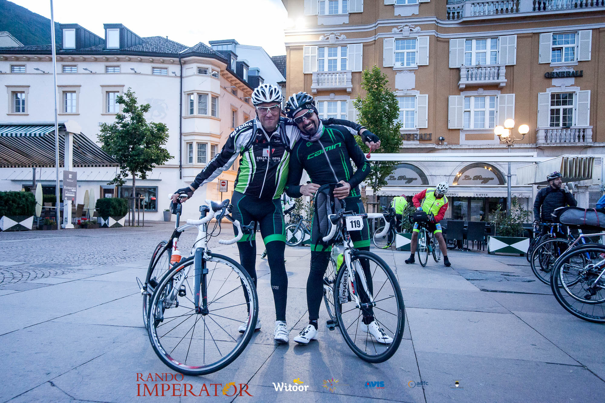 Ci siamo aiutati a infilarci i guanti gonfi di pioggia che proprio non ne volevano sapere di far passare le mani. Ce le siamo strette le mani, all’arrivo a Ferrara in piazza Castello, dopo un’infinità di strada percorsa. Ci siamo guardati negli occhi e ci siamo messi a ridere quando ci si incrociava in salita. Ci siamo abbracciati con chi ci ha aspettato per ore. Ci siamo detti “mai più”, “ci vediamo il prossimo anno”, “se bevo ancora un po’ di vino non riparto mica”. La bici è quella cosa che riesce a unire le persone, la Rando Imperator è quella randonnée che tiene stretti paesi e persone diverse, che ce la fanno o che non ce la fanno, questo poi è relativo. Conta dire grazie a tutti i partecipanti per l’impegno, la pazienza, per il modo che hanno di affrontare difficoltà e per insegnarci il vero spirito di randonneur.