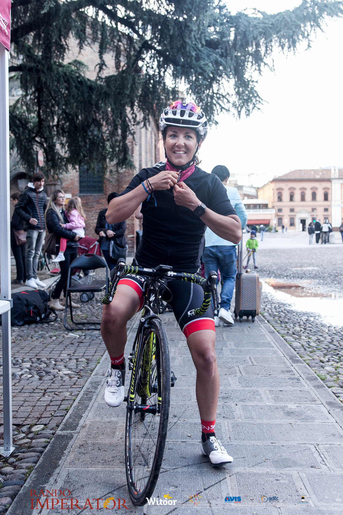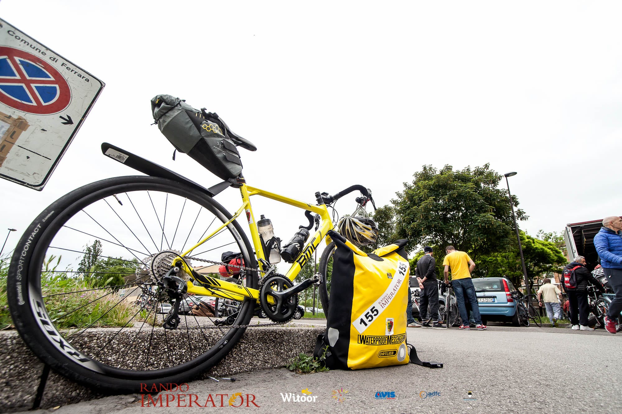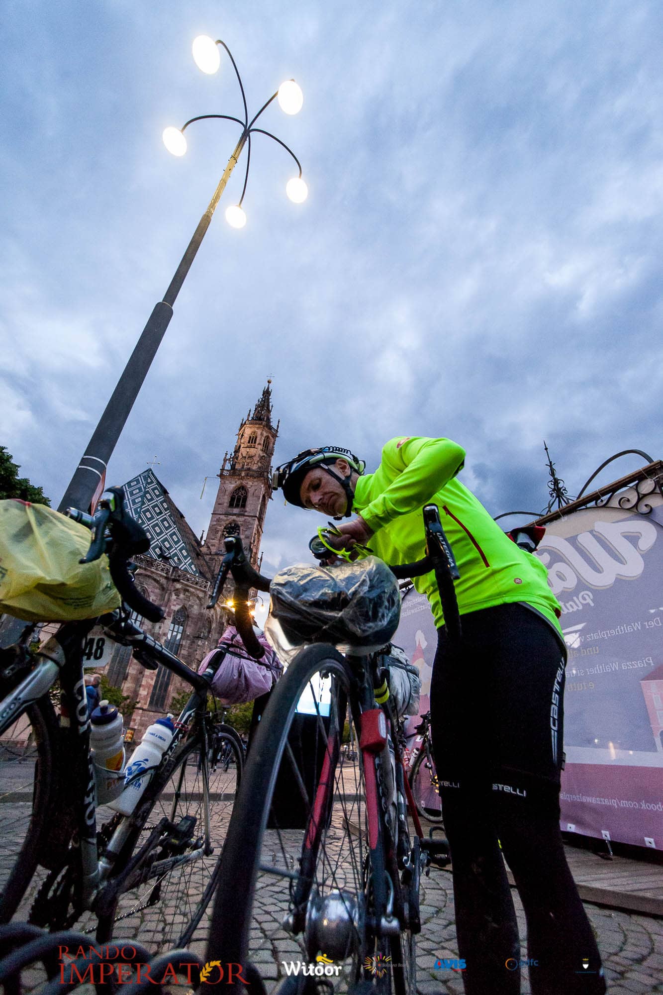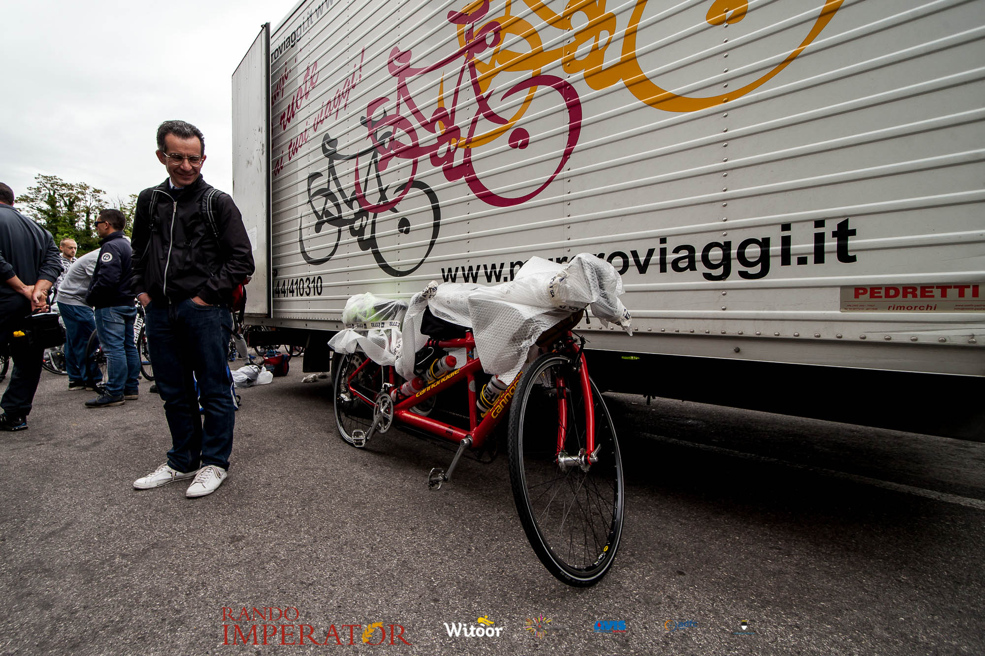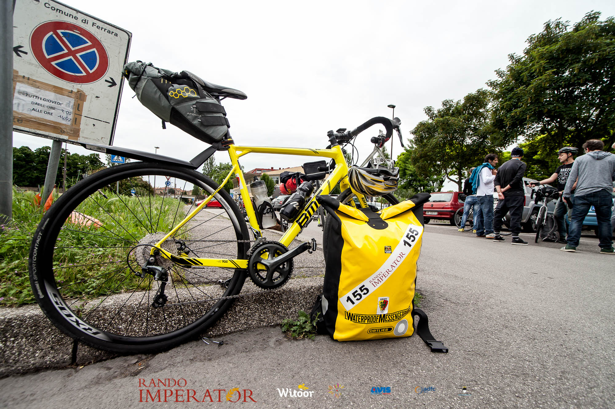Ci siamo aiutati a infilarci i guanti gonfi di pioggia che proprio non ne volevano sapere di far passare le mani. Ce le siamo strette le mani, all’arrivo a Ferrara in piazza Castello, dopo un’infinità di strada percorsa. Ci siamo guardati negli occhi e ci siamo messi a ridere quando ci si incrociava in salita. Ci siamo abbracciati con chi ci ha aspettato per ore. Ci siamo detti “mai più”, “ci vediamo il prossimo anno”, “se bevo ancora un po’ di vino non riparto mica”. La bici è quella cosa che riesce a unire le persone, la Rando Imperator è quella randonnée che tiene stretti paesi e persone diverse, che ce la fanno o che non ce la fanno, questo poi è relativo. Conta dire grazie a tutti i partecipanti per l’impegno, la pazienza, per il modo che hanno di affrontare difficoltà e per insegnarci il vero spirito di randonneur.