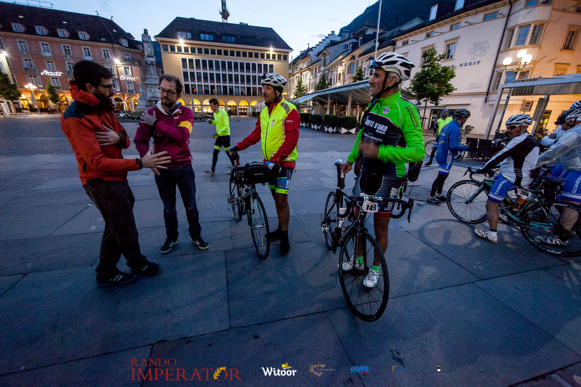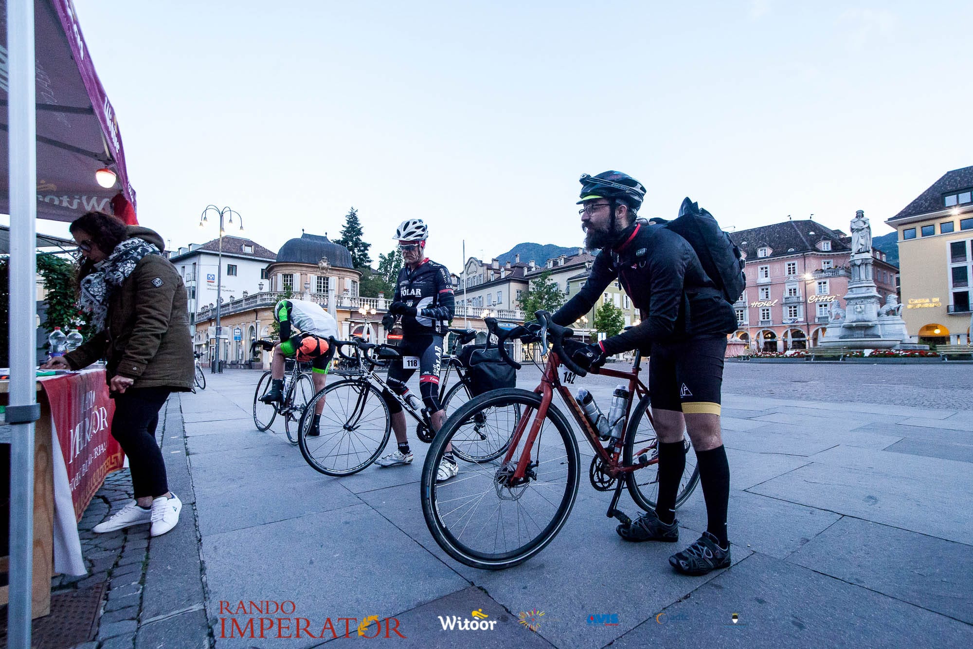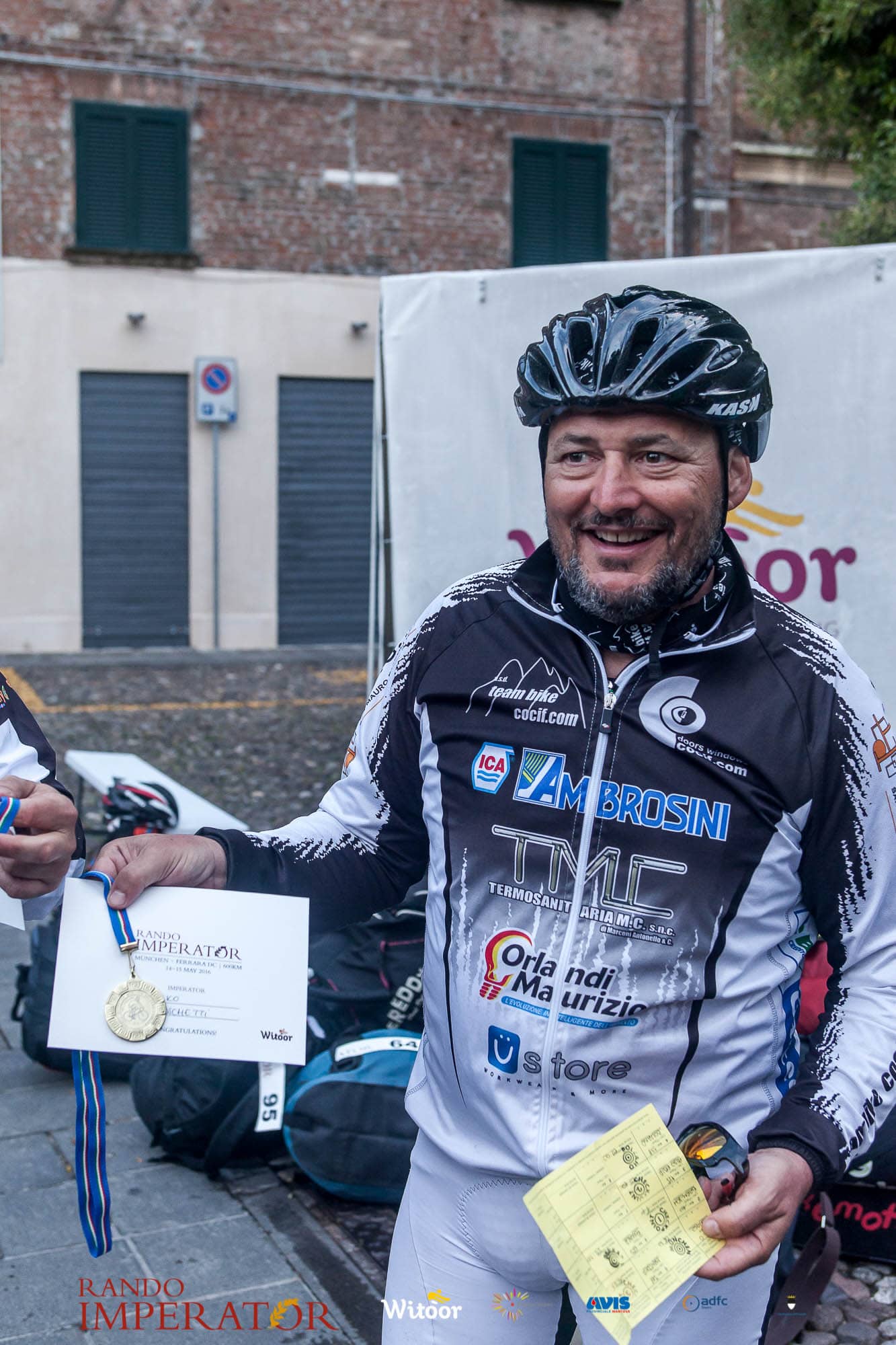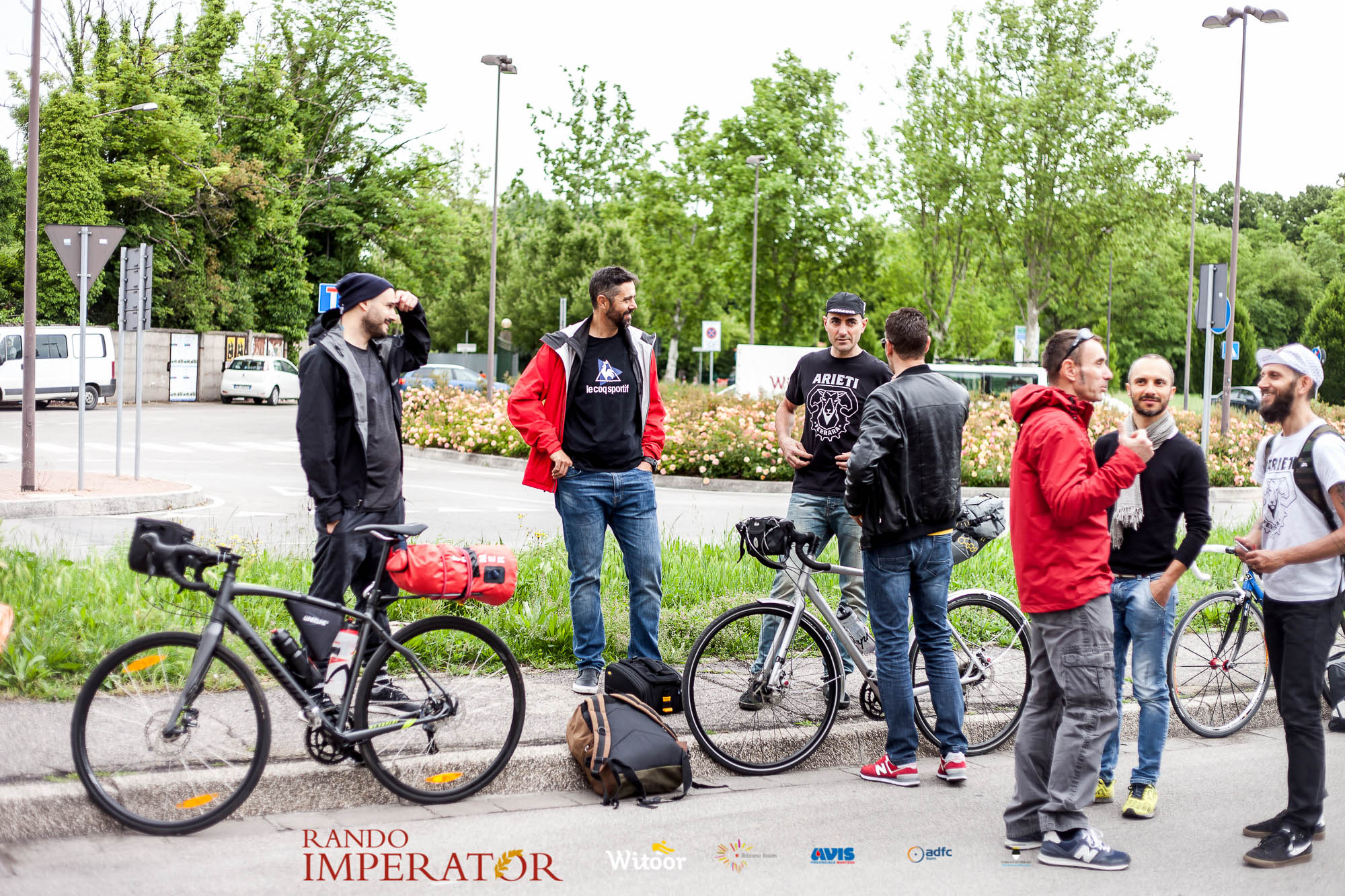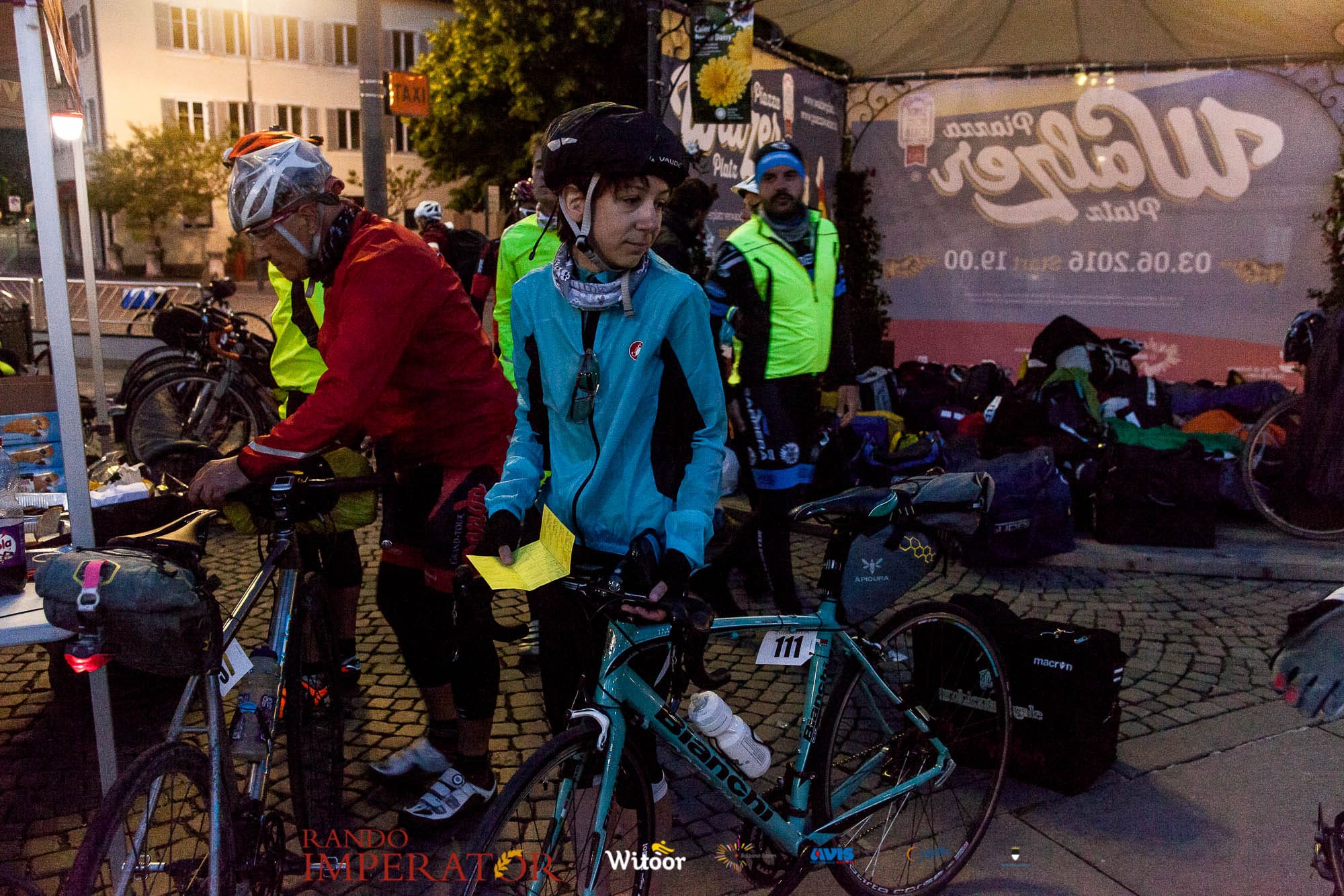 Ci siamo aiutati a infilarci i guanti gonfi di pioggia che proprio non ne volevano sapere di far passare le mani. Ce le siamo strette le mani, all’arrivo a Ferrara in piazza Castello, dopo un’infinità di strada percorsa. Ci siamo guardati negli occhi e ci siamo messi a ridere quando ci si incrociava in salita. Ci siamo abbracciati con chi ci ha aspettato per ore. Ci siamo detti “mai più”, “ci vediamo il prossimo anno”, “se bevo ancora un po’ di vino non riparto mica”. La bici è quella cosa che riesce a unire le persone, la Rando Imperator è quella randonnée che tiene stretti paesi e persone diverse, che ce la fanno o che non ce la fanno, questo poi è relativo. Conta dire grazie a tutti i partecipanti per l’impegno, la pazienza, per il modo che hanno di affrontare difficoltà e per insegnarci il vero spirito di randonneur.