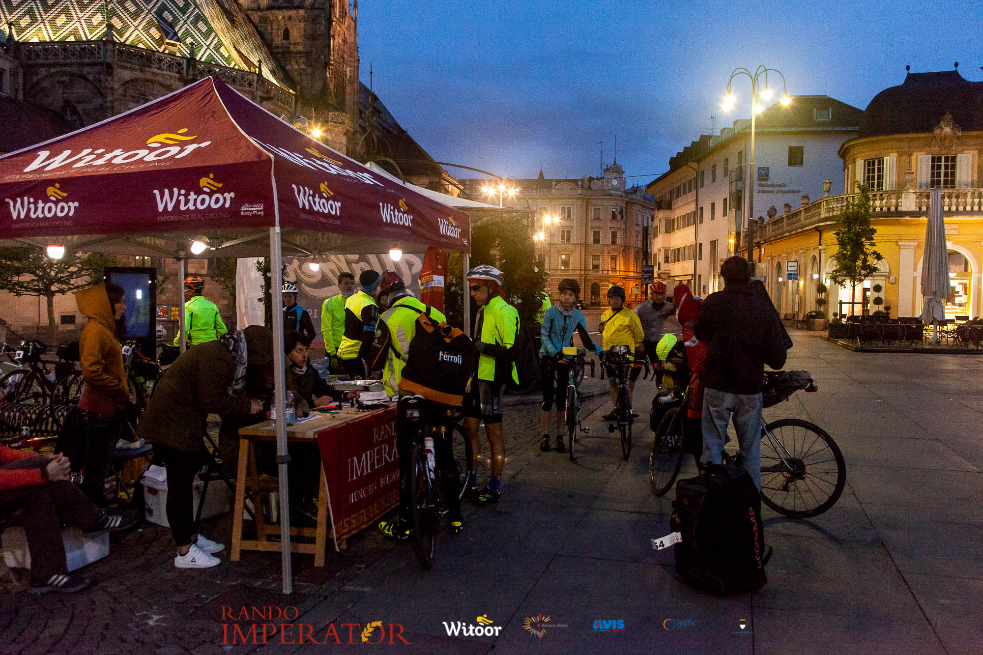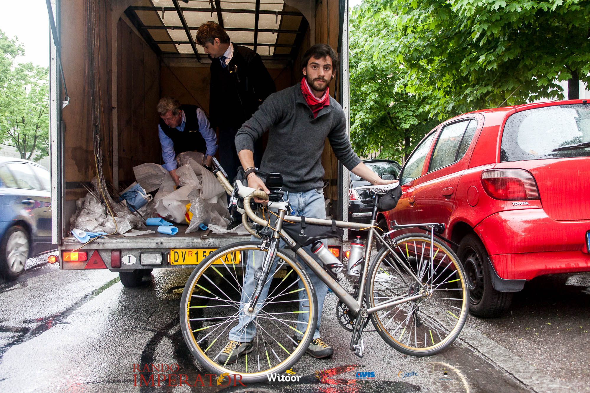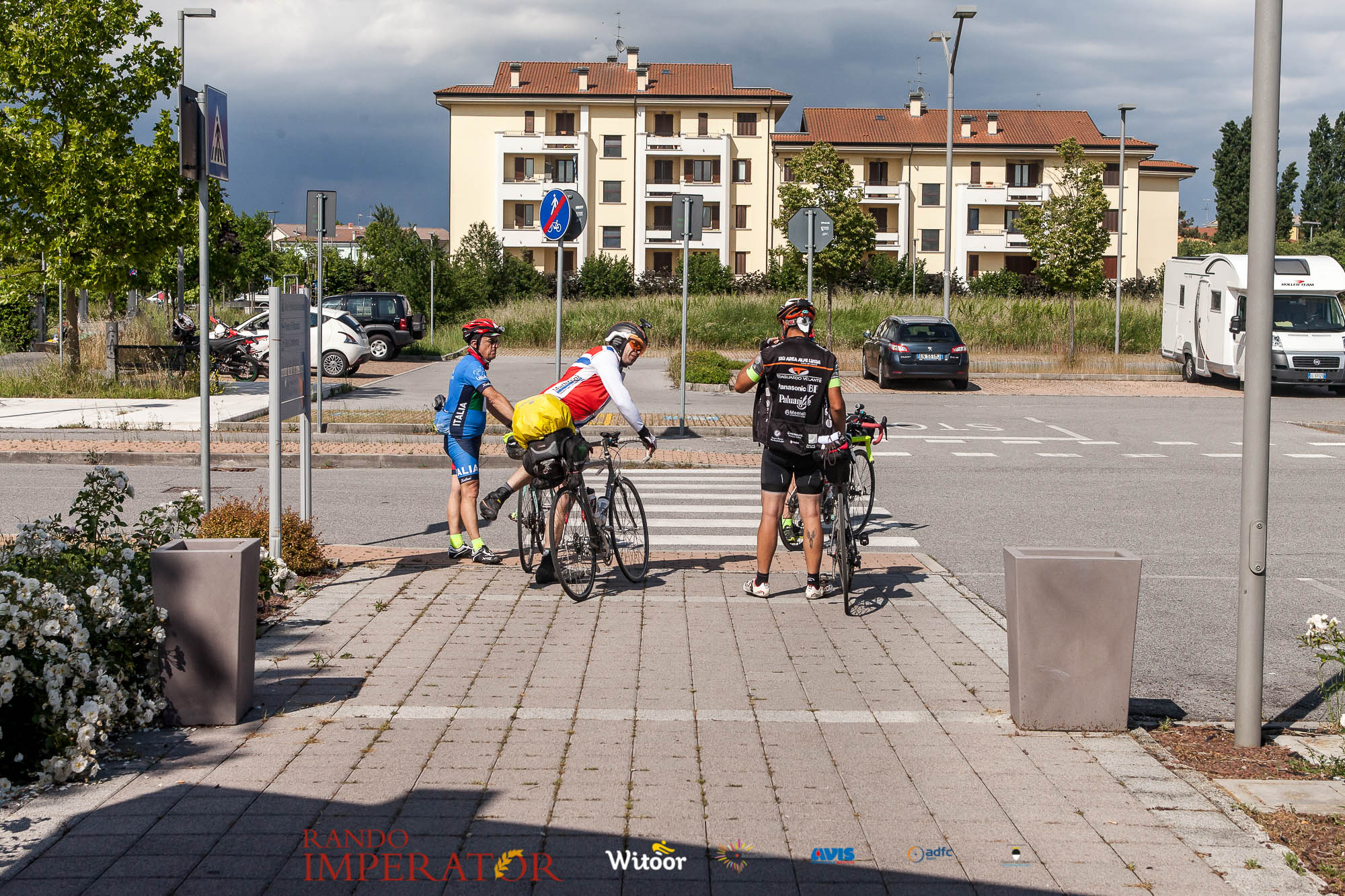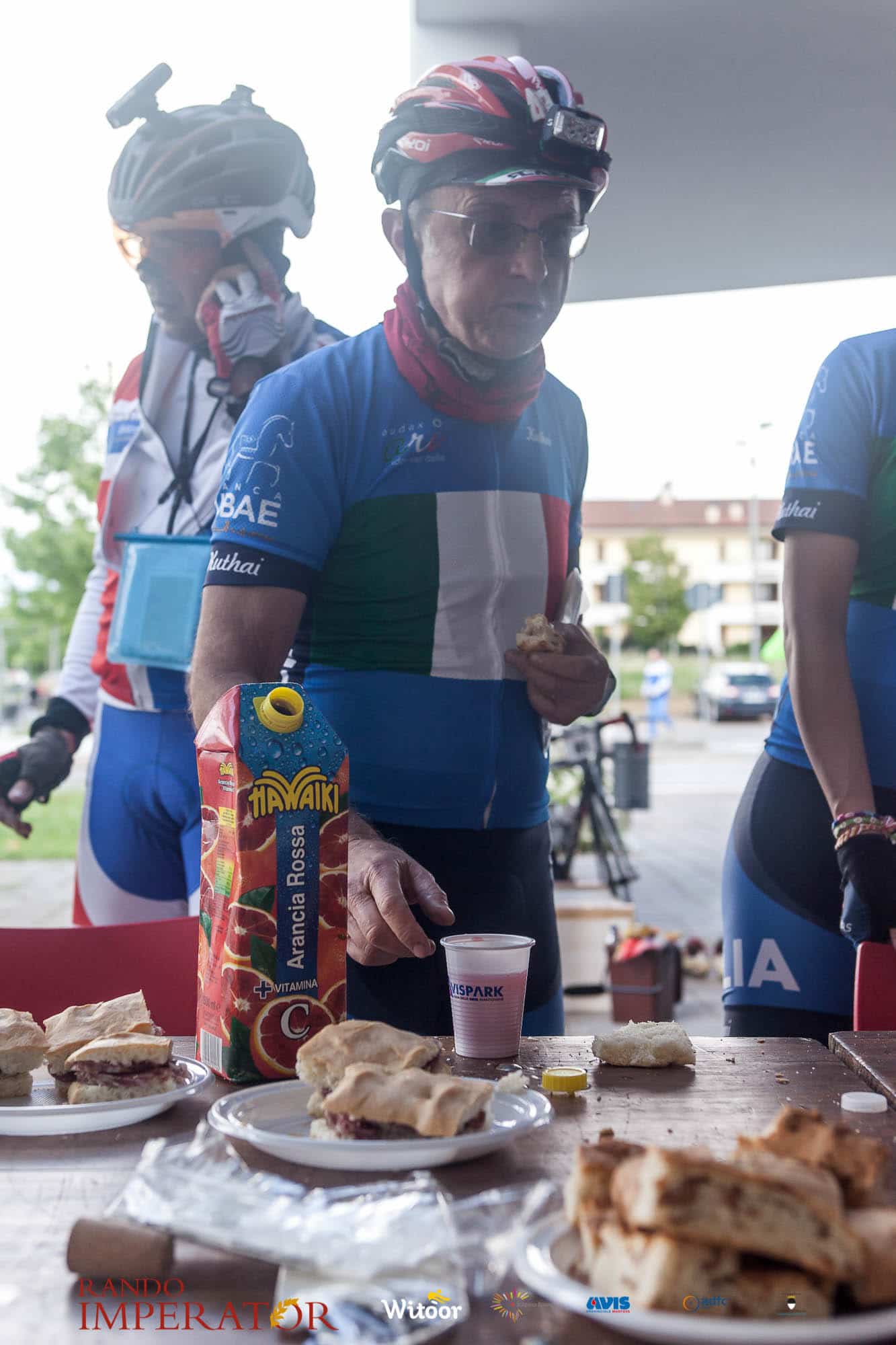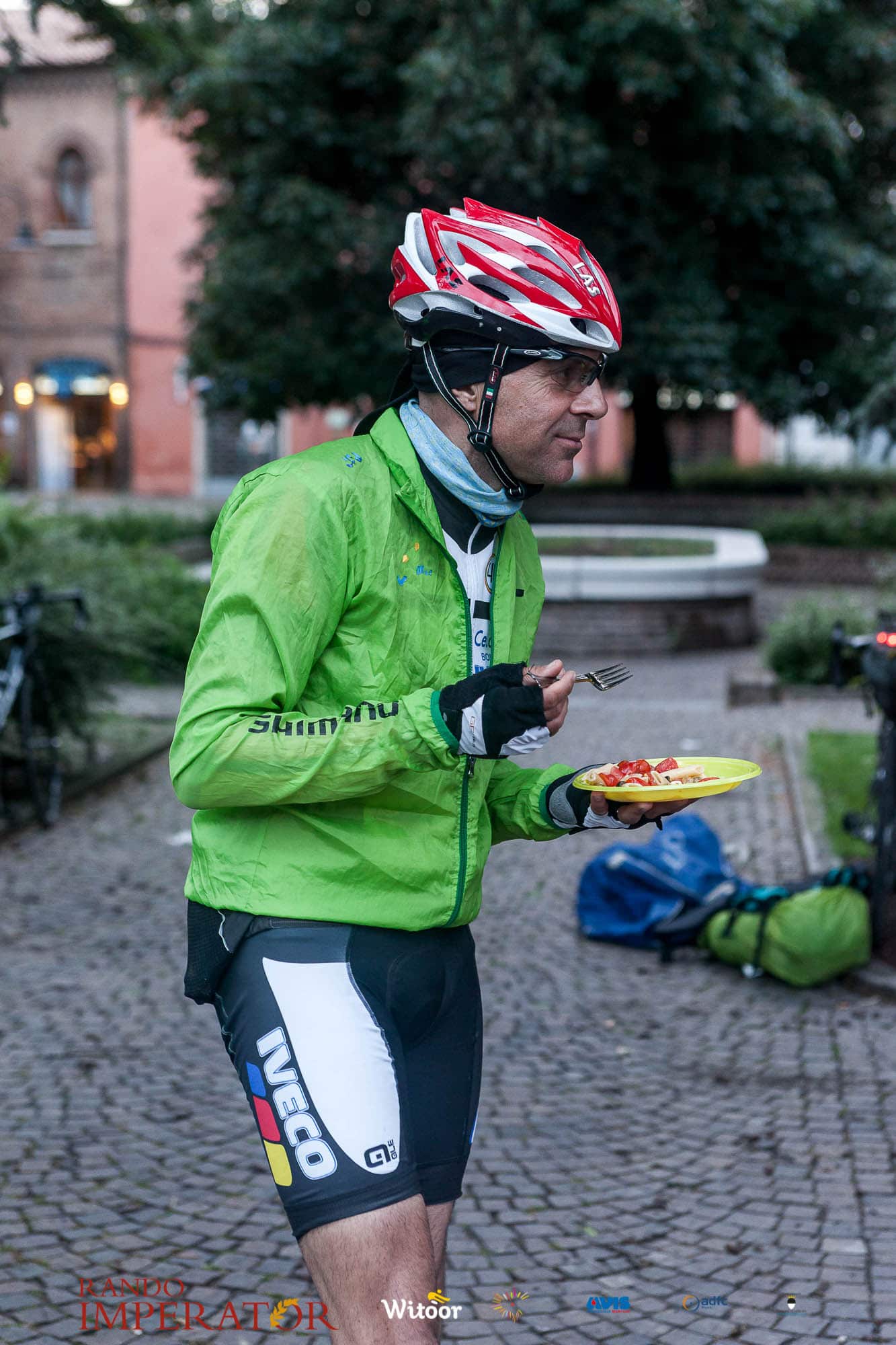 Ci siamo aiutati a infilarci i guanti gonfi di pioggia che proprio non ne volevano sapere di far passare le mani. Ce le siamo strette le mani, all’arrivo a Ferrara in piazza Castello, dopo un’infinità di strada percorsa. Ci siamo guardati negli occhi e ci siamo messi a ridere quando ci si incrociava in salita. Ci siamo abbracciati con chi ci ha aspettato per ore. Ci siamo detti “mai più”, “ci vediamo il prossimo anno”, “se bevo ancora un po’ di vino non riparto mica”. La bici è quella cosa che riesce a unire le persone, la Rando Imperator è quella randonnée che tiene stretti paesi e persone diverse, che ce la fanno o che non ce la fanno, questo poi è relativo. Conta dire grazie a tutti i partecipanti per l’impegno, la pazienza, per il modo che hanno di affrontare difficoltà e per insegnarci il vero spirito di randonneur.