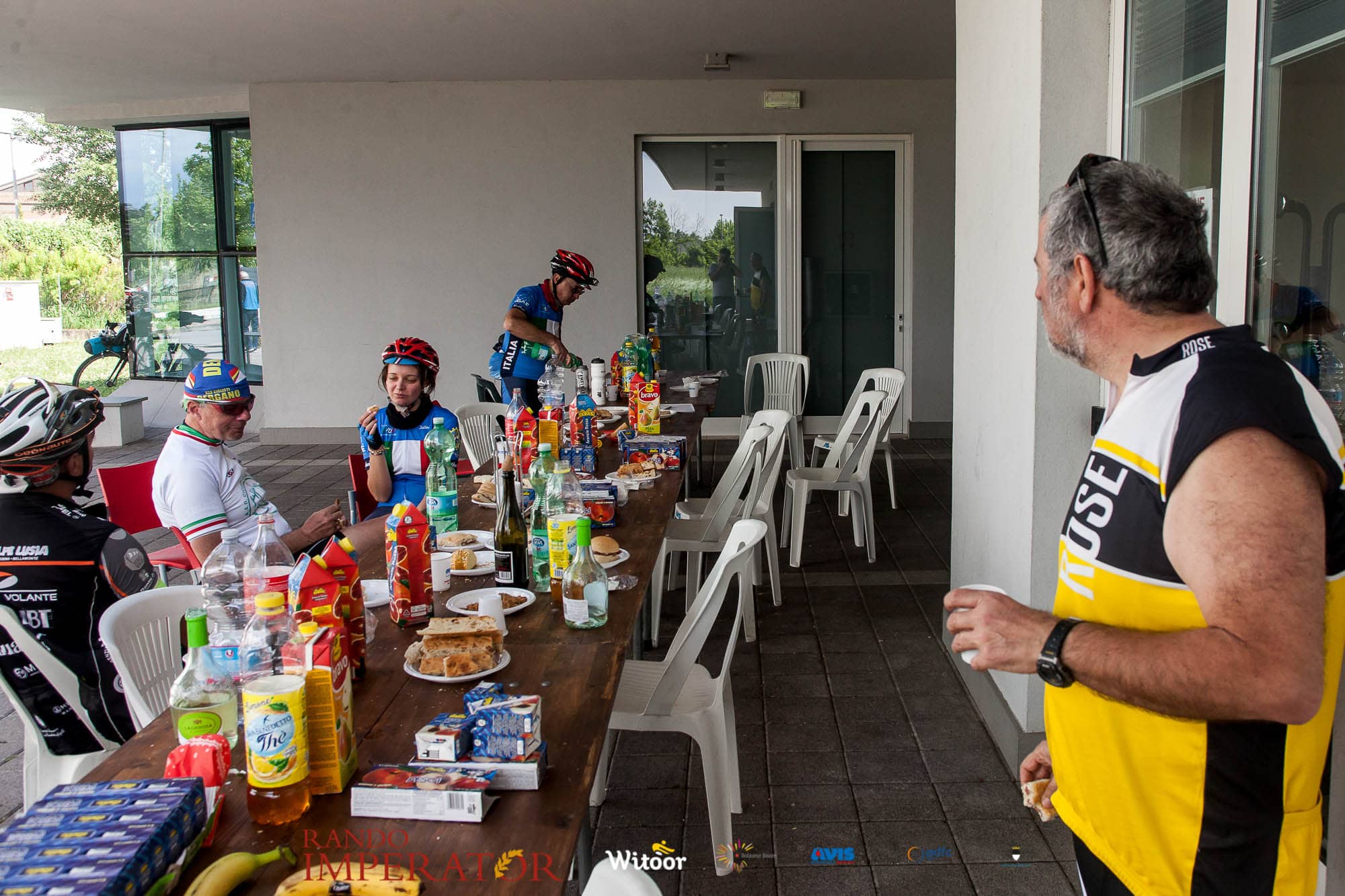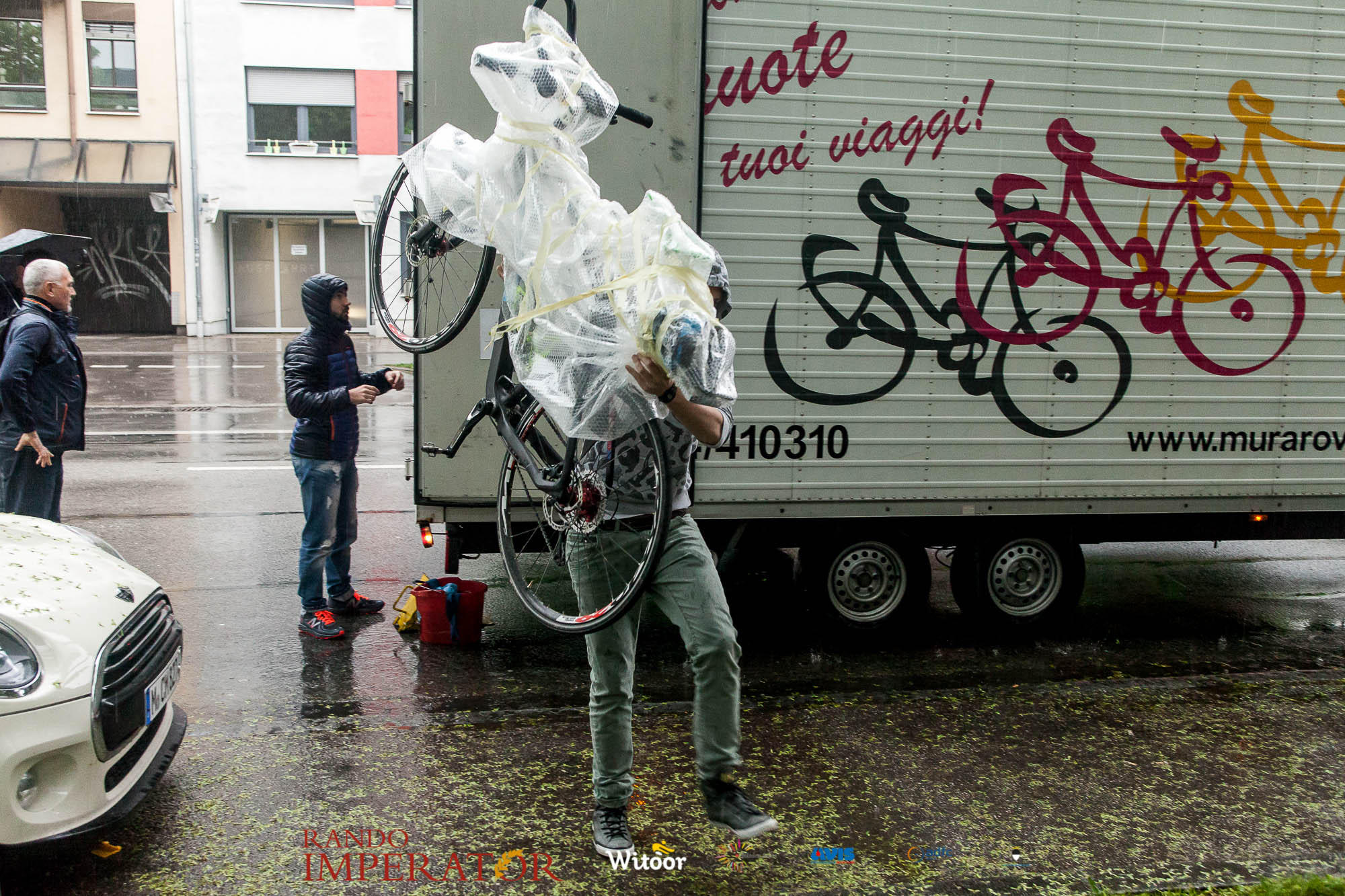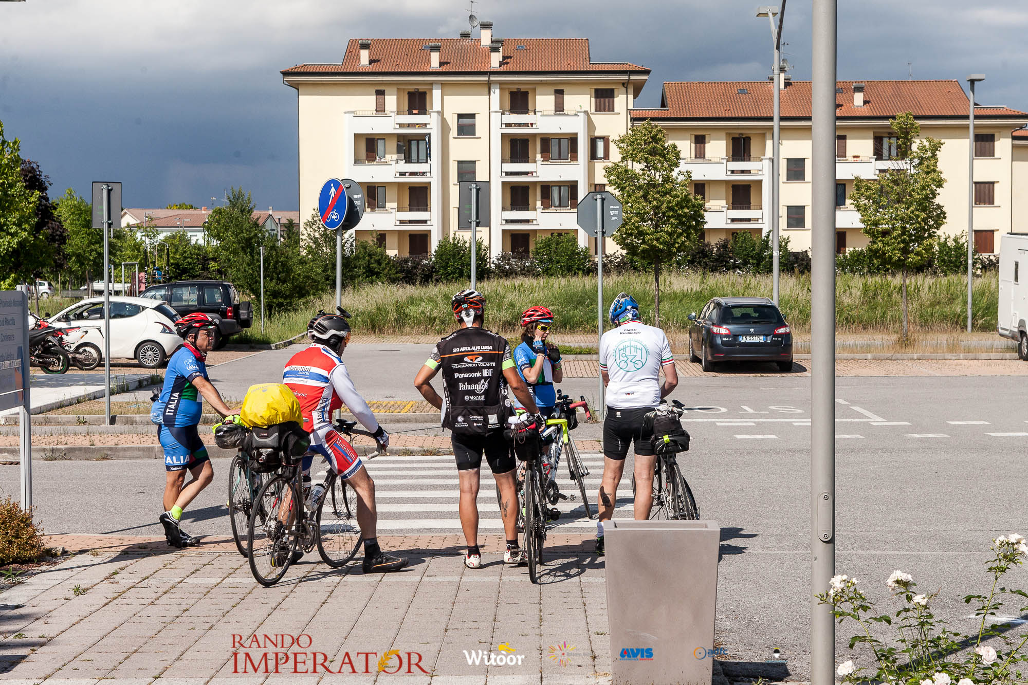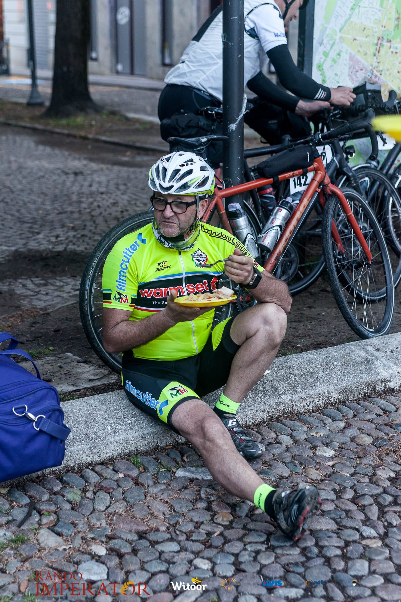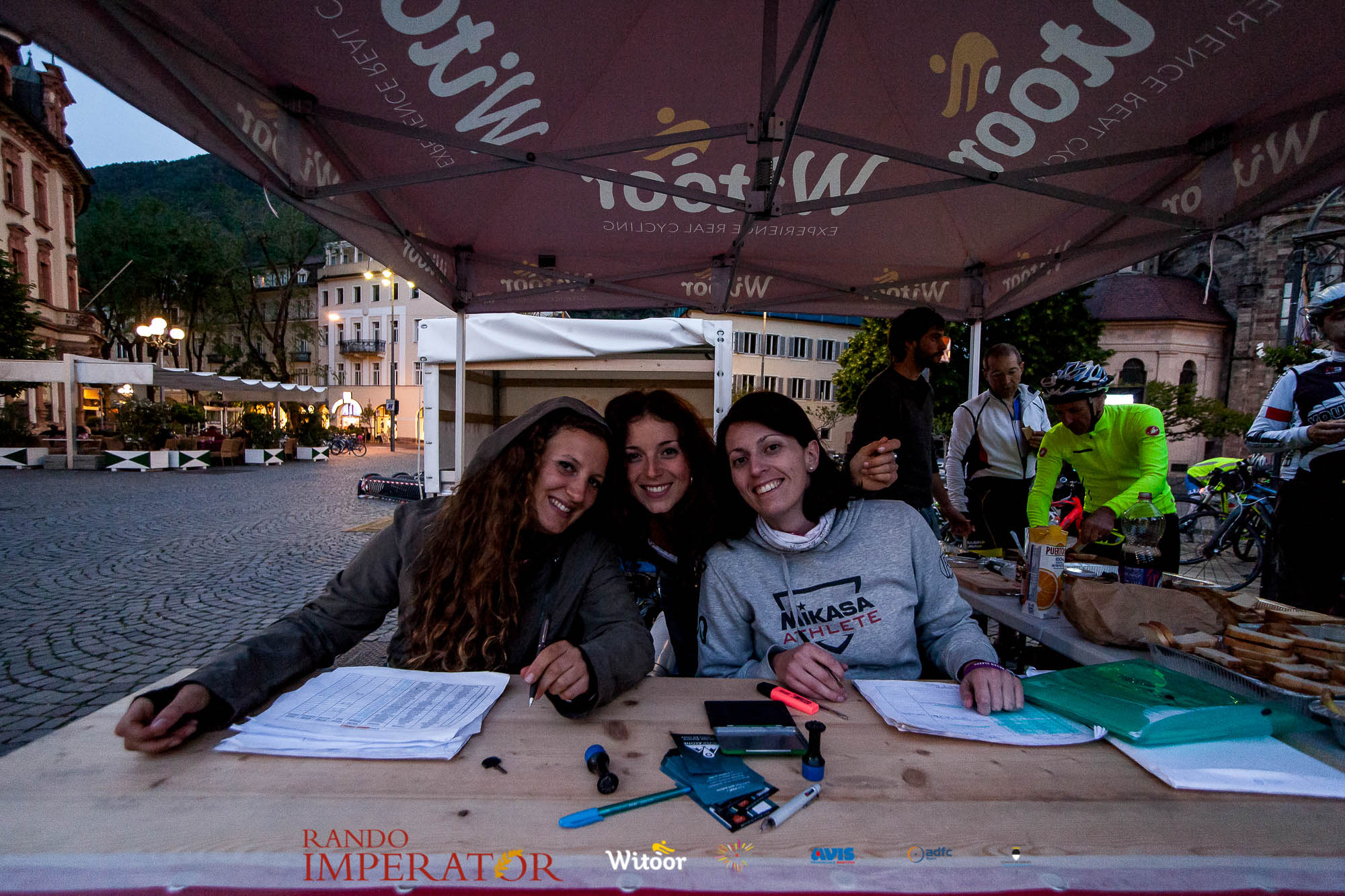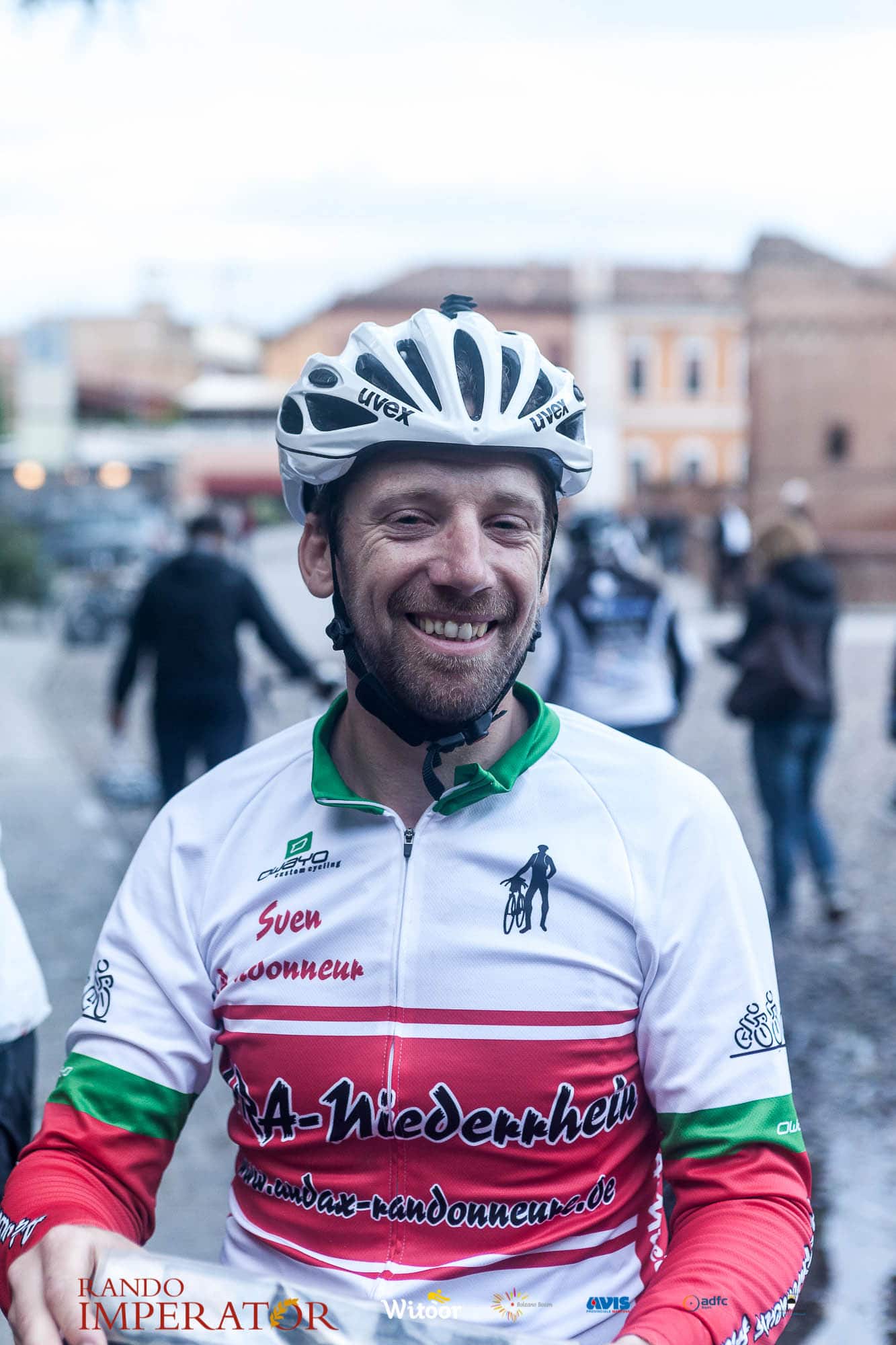 Ci siamo aiutati a infilarci i guanti gonfi di pioggia che proprio non ne volevano sapere di far passare le mani. Ce le siamo strette le mani, all’arrivo a Ferrara in piazza Castello, dopo un’infinità di strada percorsa. Ci siamo guardati negli occhi e ci siamo messi a ridere quando ci si incrociava in salita. Ci siamo abbracciati con chi ci ha aspettato per ore. Ci siamo detti “mai più”, “ci vediamo il prossimo anno”, “se bevo ancora un po’ di vino non riparto mica”. La bici è quella cosa che riesce a unire le persone, la Rando Imperator è quella randonnée che tiene stretti paesi e persone diverse, che ce la fanno o che non ce la fanno, questo poi è relativo. Conta dire grazie a tutti i partecipanti per l’impegno, la pazienza, per il modo che hanno di affrontare difficoltà e per insegnarci il vero spirito di randonneur.