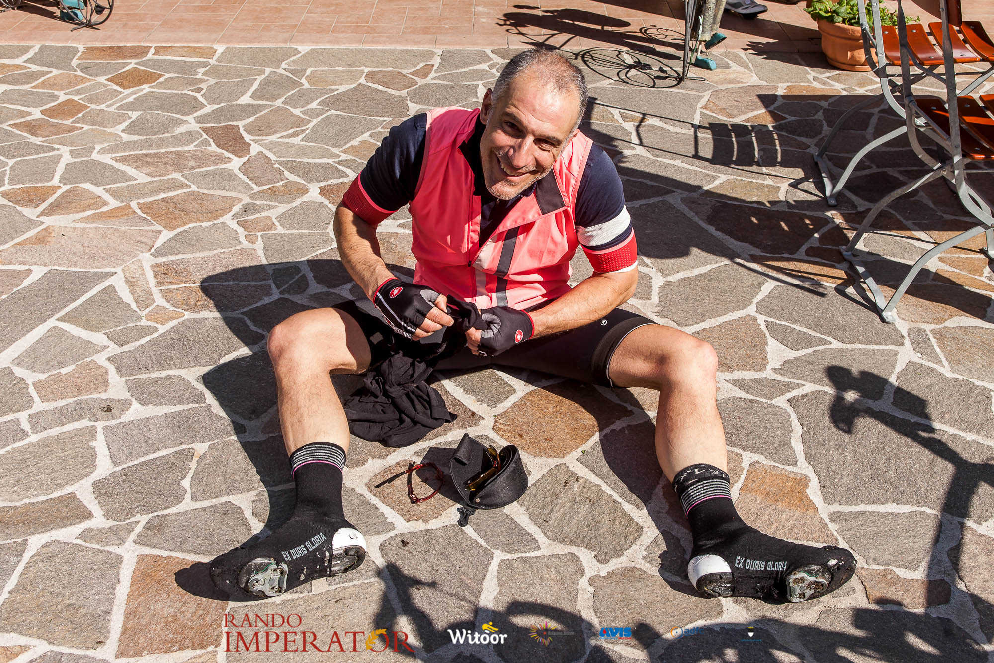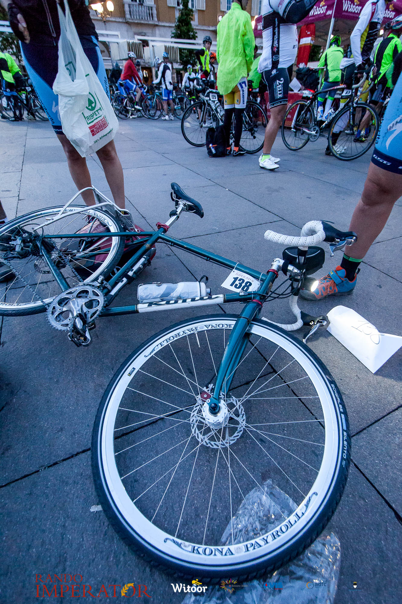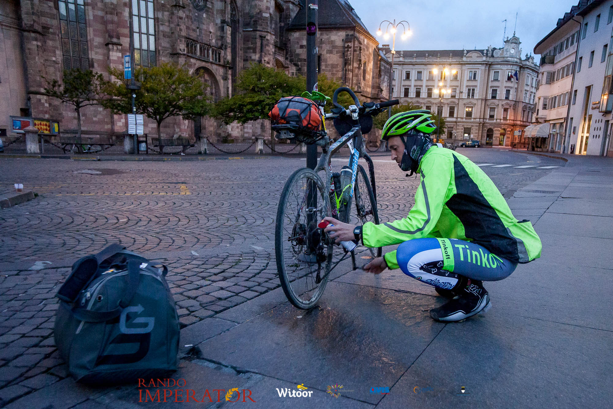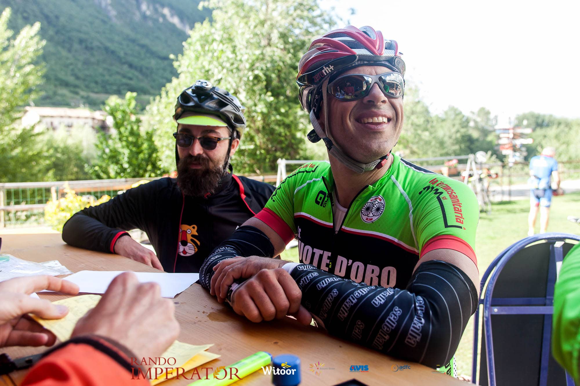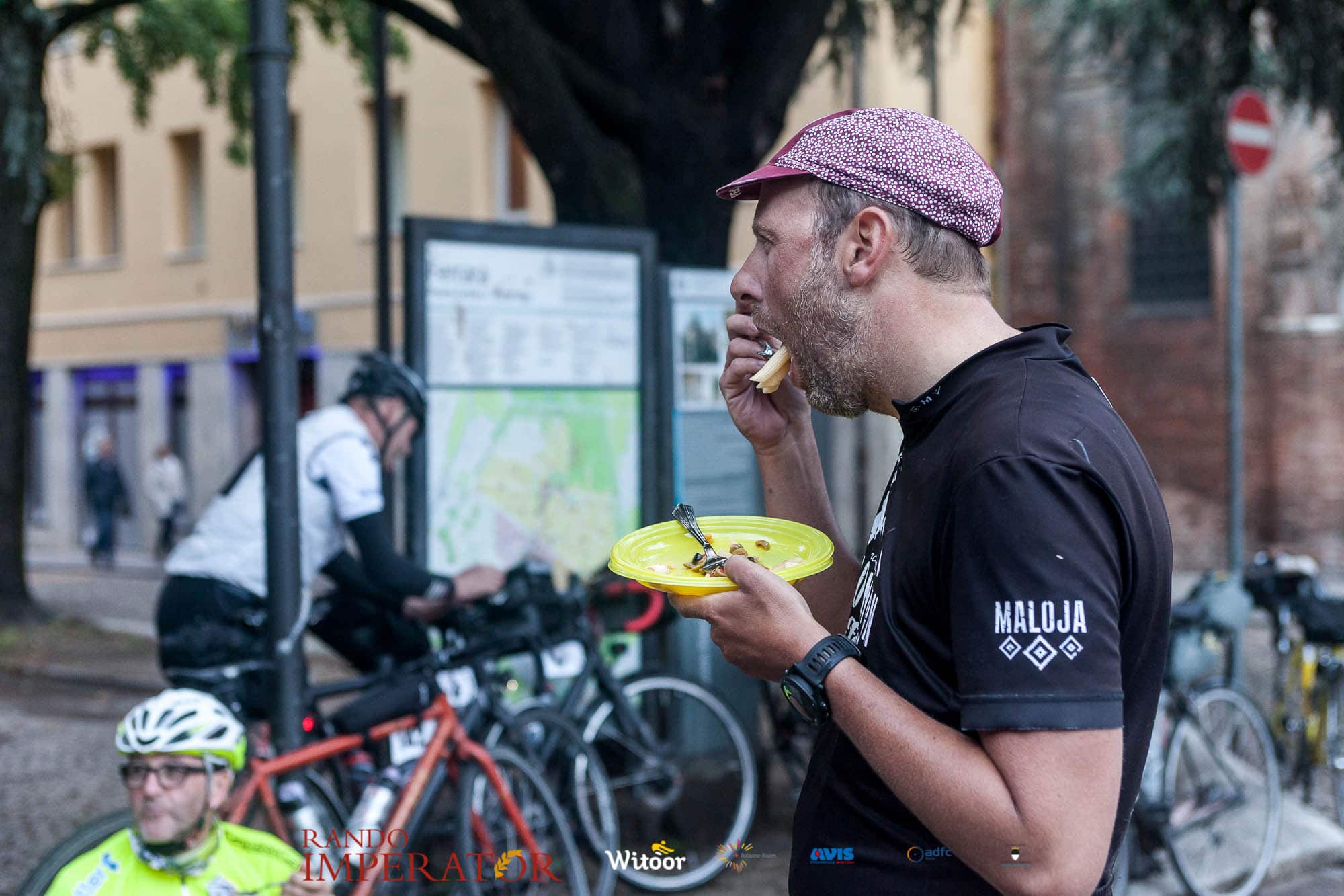 Ci siamo aiutati a infilarci i guanti gonfi di pioggia che proprio non ne volevano sapere di far passare le mani. Ce le siamo strette le mani, all’arrivo a Ferrara in piazza Castello, dopo un’infinità di strada percorsa. Ci siamo guardati negli occhi e ci siamo messi a ridere quando ci si incrociava in salita. Ci siamo abbracciati con chi ci ha aspettato per ore. Ci siamo detti “mai più”, “ci vediamo il prossimo anno”, “se bevo ancora un po’ di vino non riparto mica”. La bici è quella cosa che riesce a unire le persone, la Rando Imperator è quella randonnée che tiene stretti paesi e persone diverse, che ce la fanno o che non ce la fanno, questo poi è relativo. Conta dire grazie a tutti i partecipanti per l’impegno, la pazienza, per il modo che hanno di affrontare difficoltà e per insegnarci il vero spirito di randonneur.