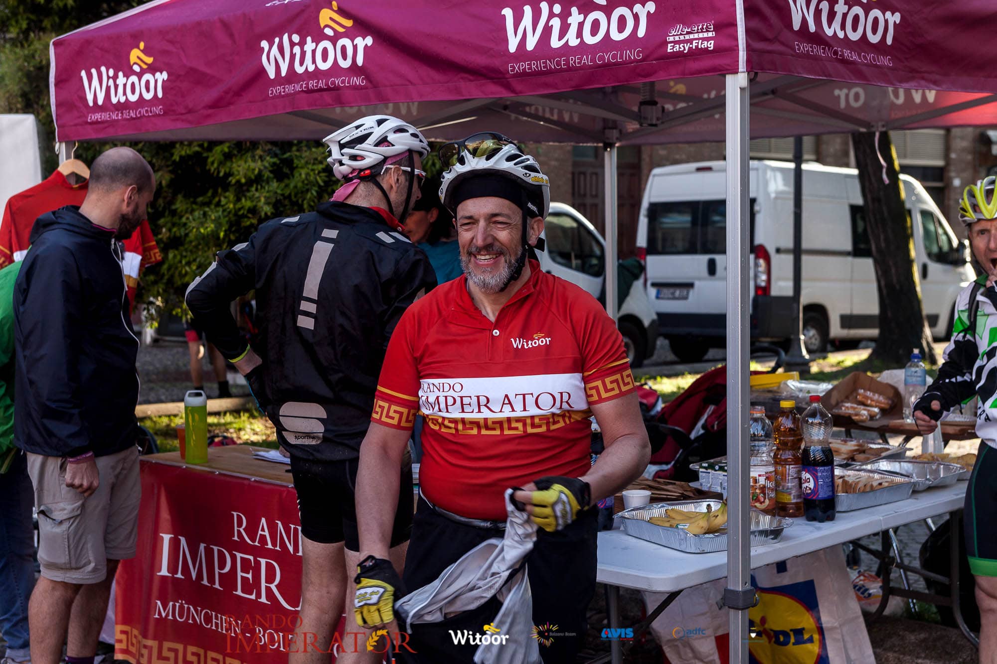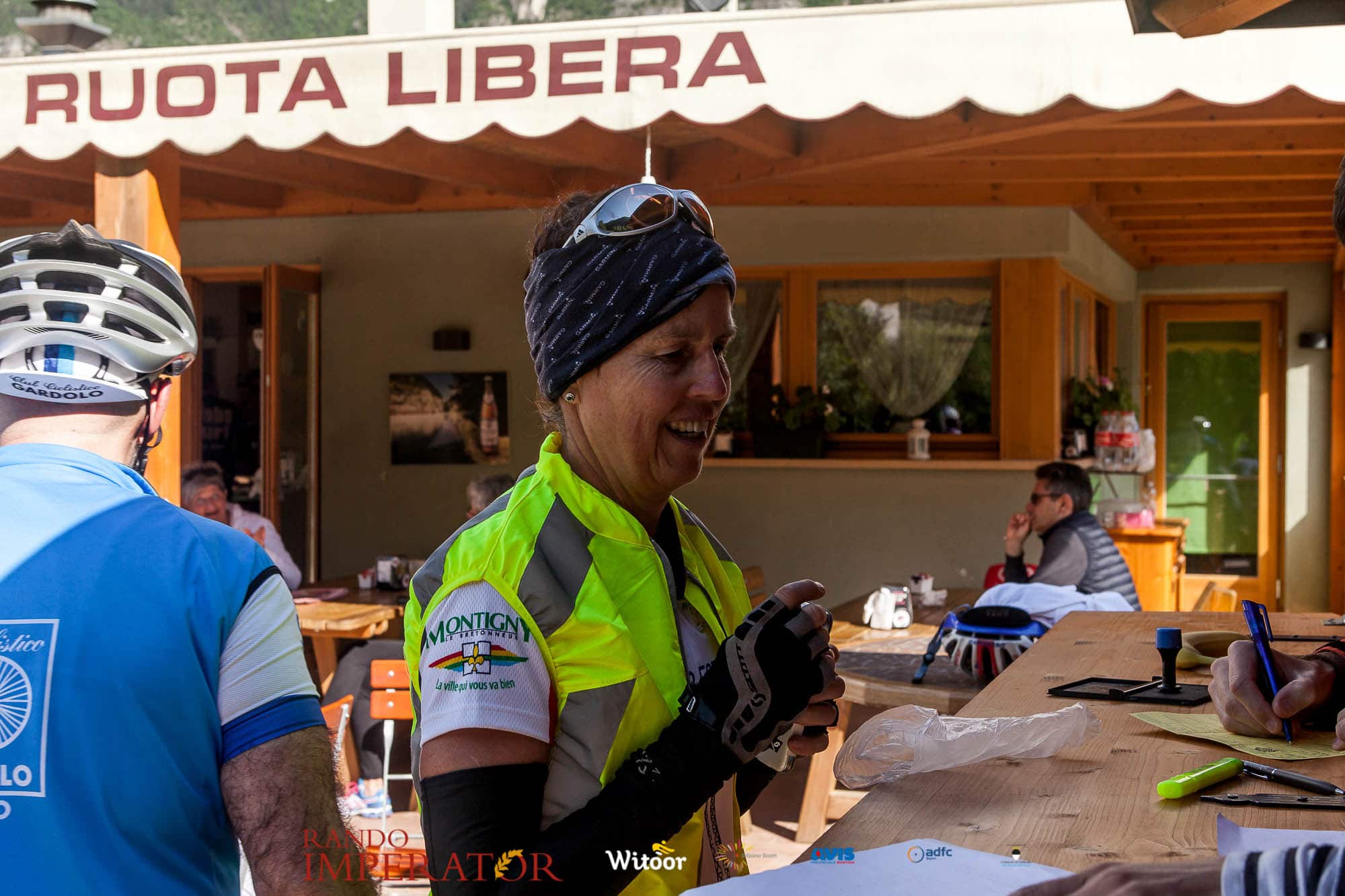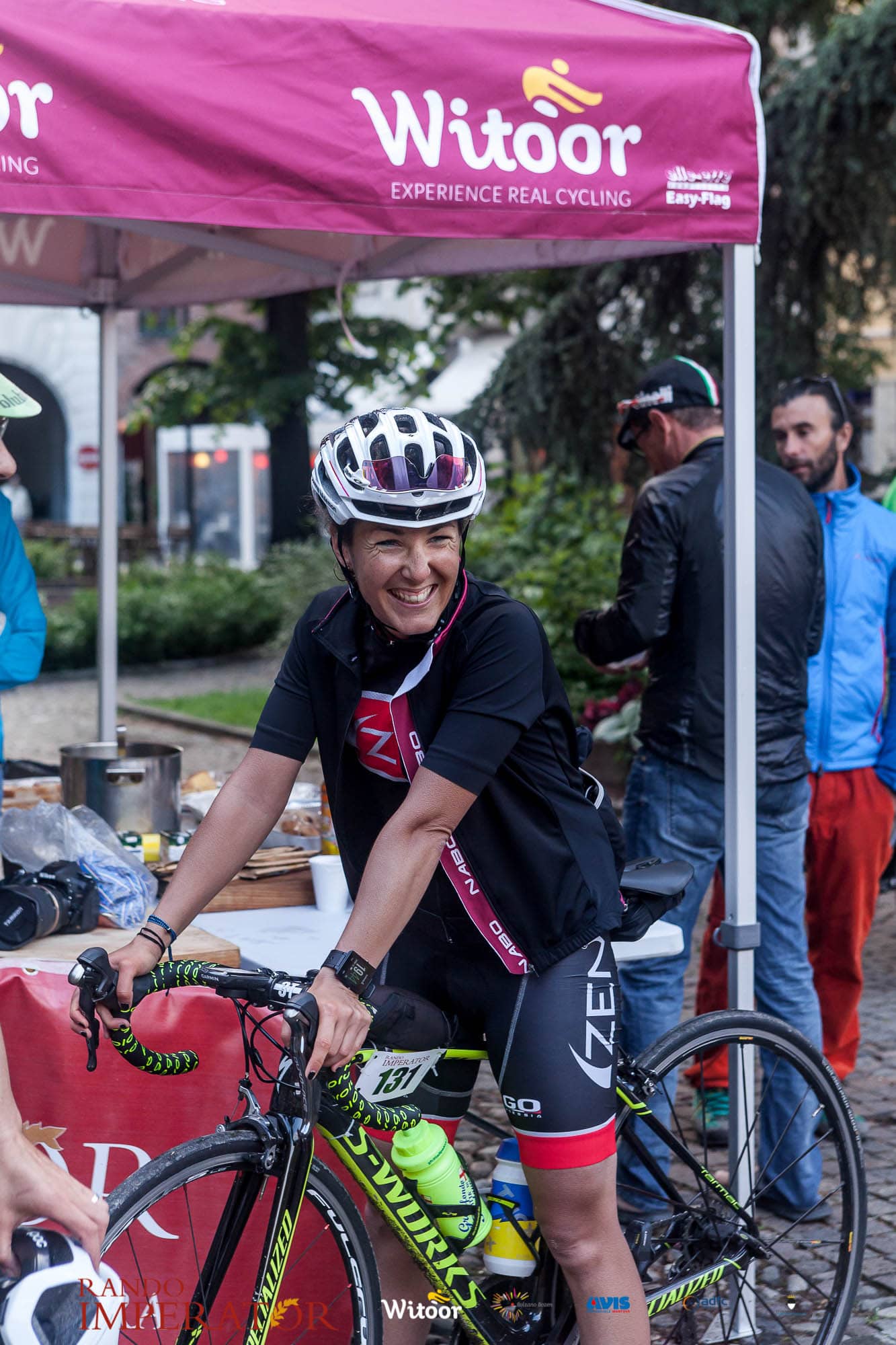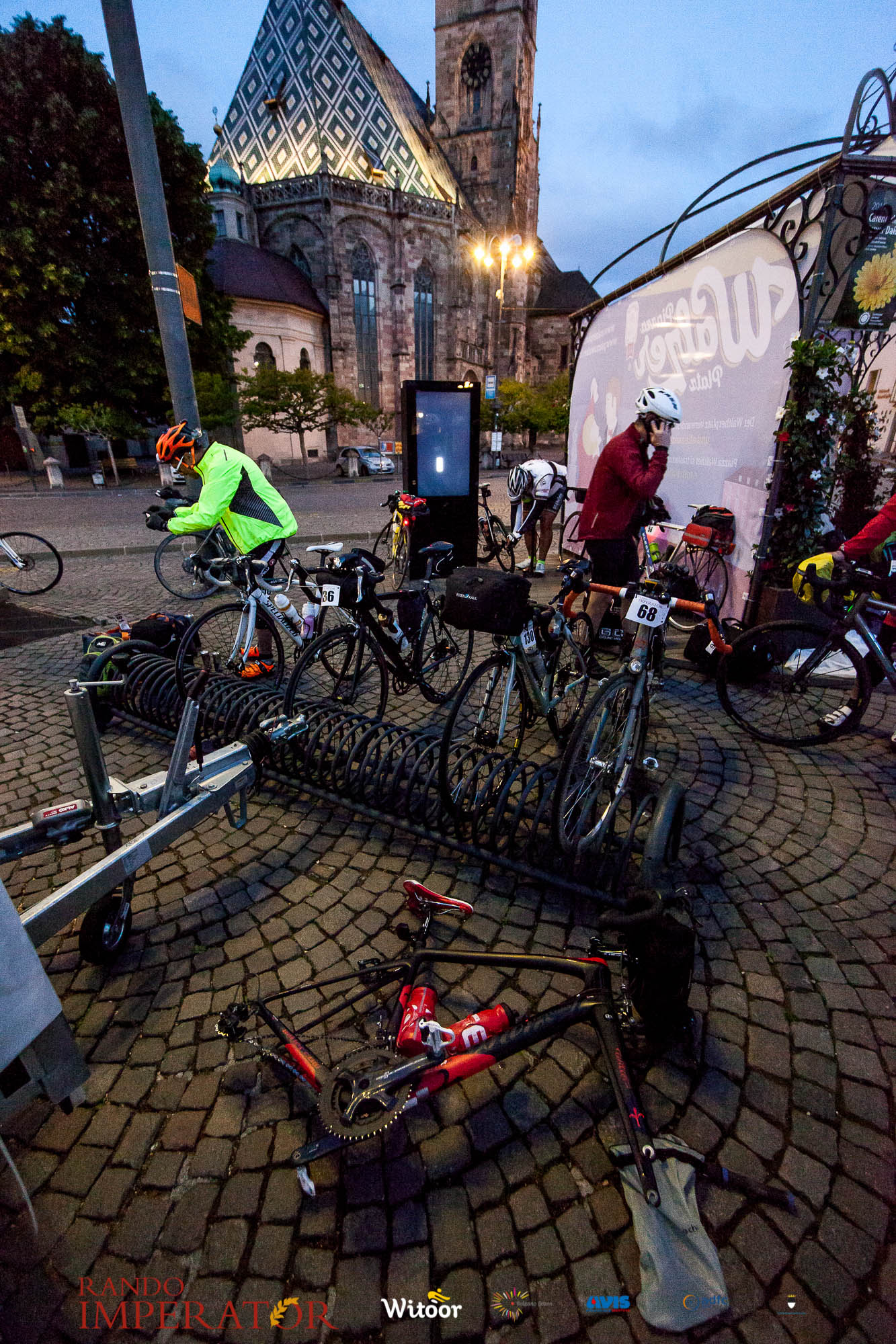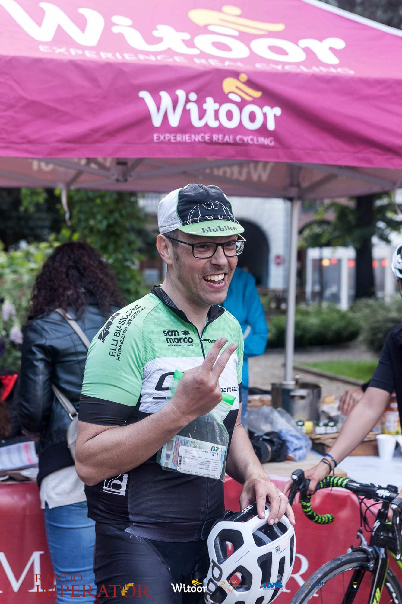 Ci siamo aiutati a infilarci i guanti gonfi di pioggia che proprio non ne volevano sapere di far passare le mani. Ce le siamo strette le mani, all’arrivo a Ferrara in piazza Castello, dopo un’infinità di strada percorsa. Ci siamo guardati negli occhi e ci siamo messi a ridere quando ci si incrociava in salita. Ci siamo abbracciati con chi ci ha aspettato per ore. Ci siamo detti “mai più”, “ci vediamo il prossimo anno”, “se bevo ancora un po’ di vino non riparto mica”. La bici è quella cosa che riesce a unire le persone, la Rando Imperator è quella randonnée che tiene stretti paesi e persone diverse, che ce la fanno o che non ce la fanno, questo poi è relativo. Conta dire grazie a tutti i partecipanti per l’impegno, la pazienza, per il modo che hanno di affrontare difficoltà e per insegnarci il vero spirito di randonneur.
